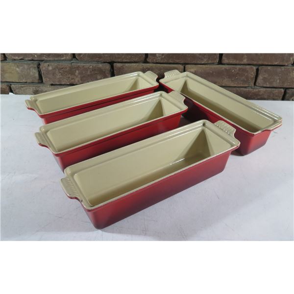 Qty 4 Le Creuset 32 France Enameled Terrines Baking Pans w/ Handles 14"x5"x3"H