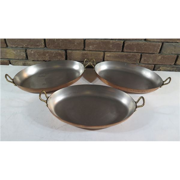 Qty 3 Mauviel 1830 France Metal Oval Pans w/ Handles 16"x9"x2"H