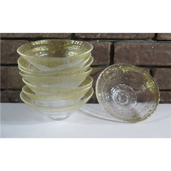 Qty 8 Clear Bowls w/ Speckled, Curved Design 6" dia, 2.5"H