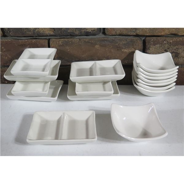 Qty 8 Miyako Curved Bowls & 8 Two-Section Condiment Dishes