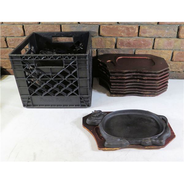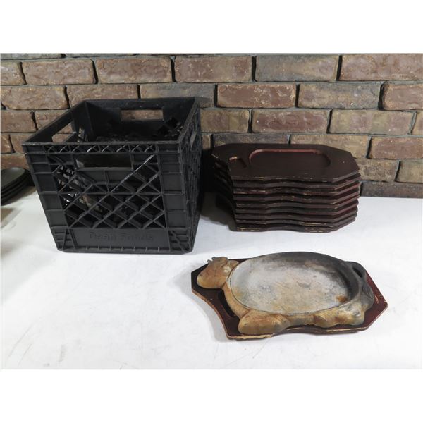 Qty 10 Metal Steak Plates w/ Wooden Bases & Maker's Marks