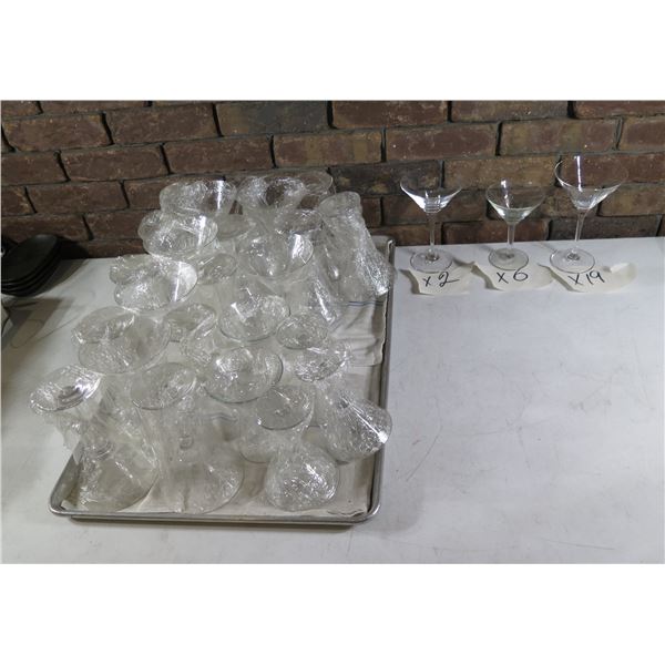 Qty 40+ Footed Martini Glasses 3" dia, 3.25"H in Tray