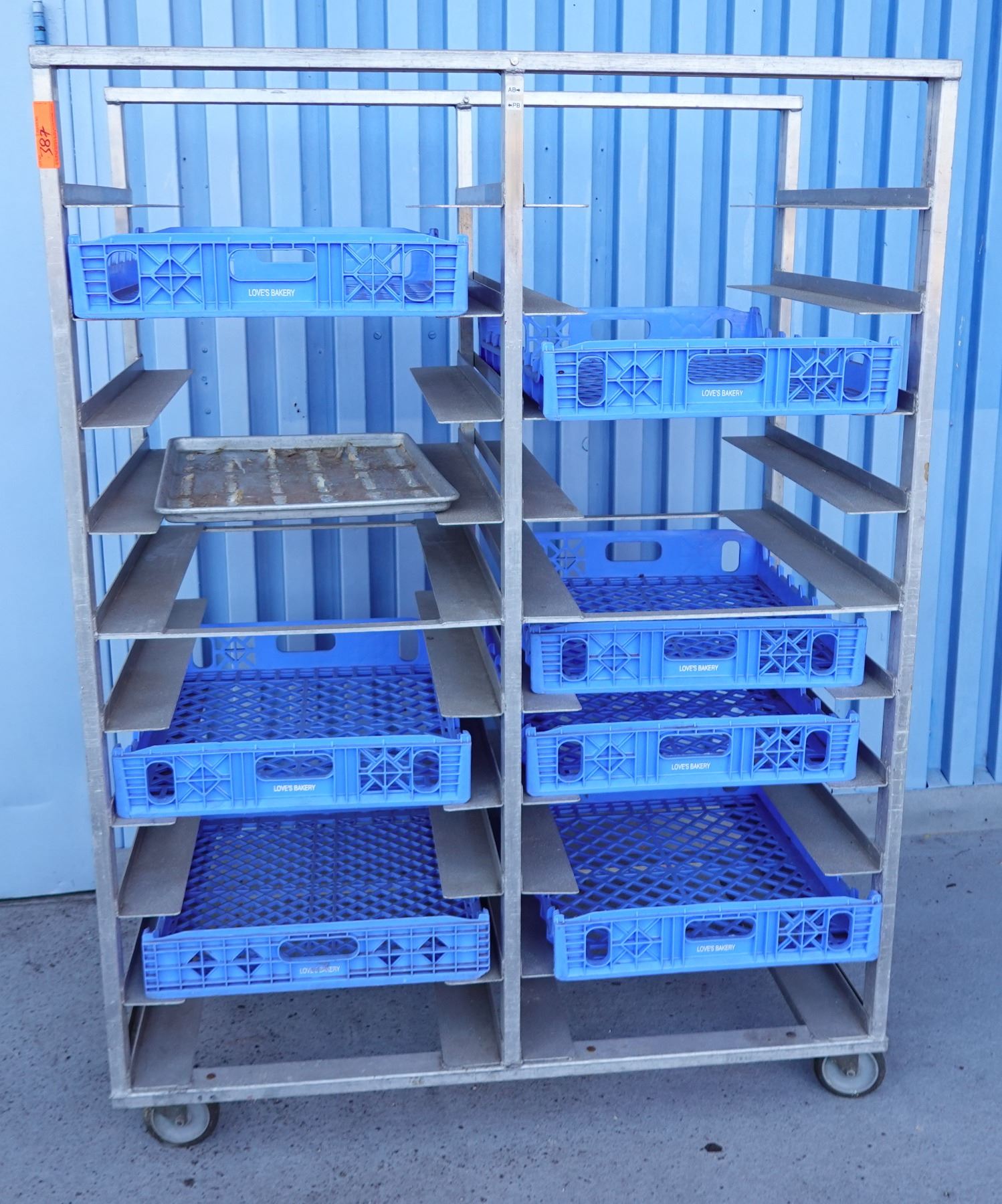 Sammons Metal 2-Section Pan Rack w/ Pan & Bread Trays 51" x 30" x 69"H.