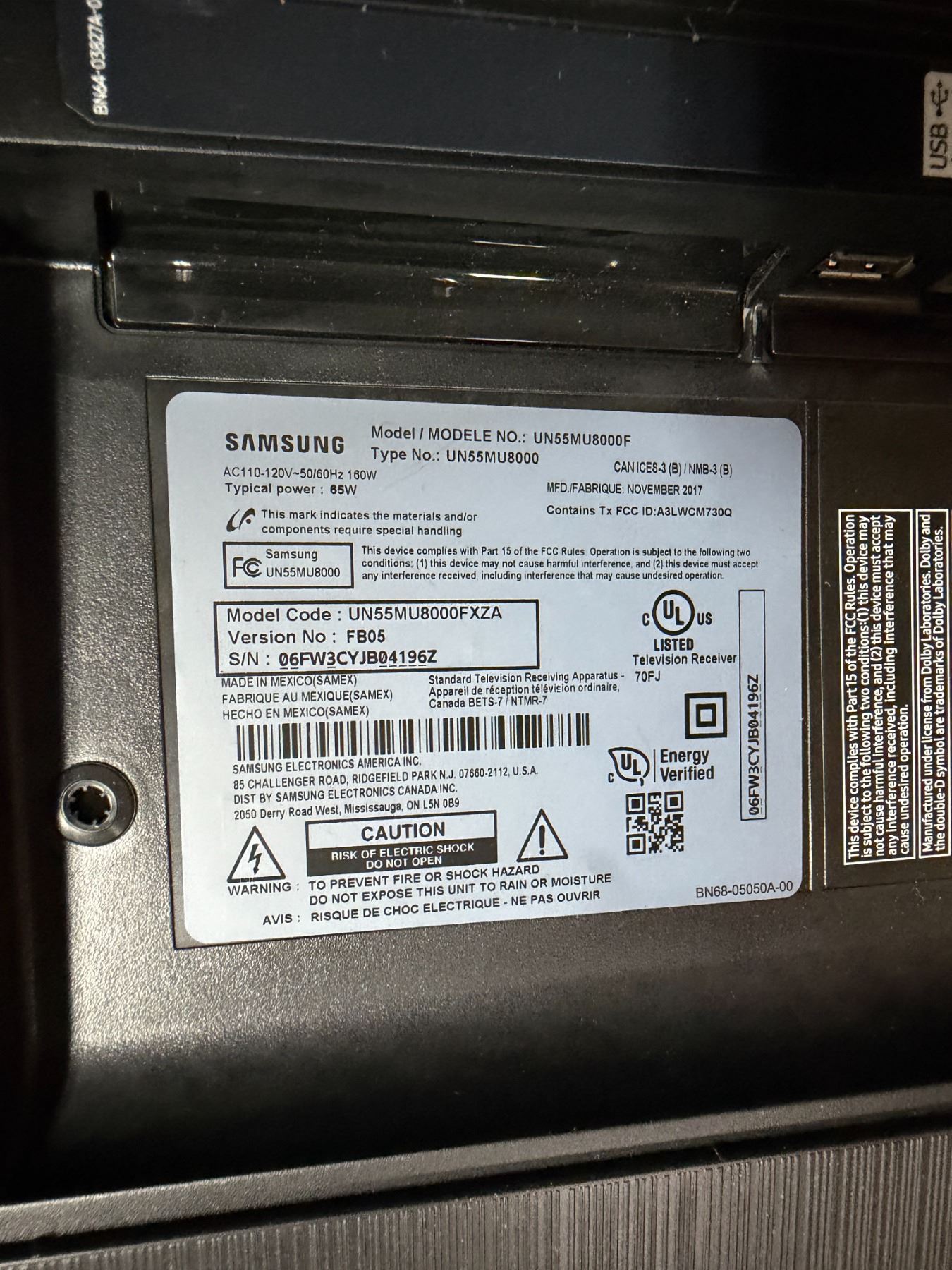 Samsung UN55MU8000F Smart 55" TV w/ Wall Mount 48" x 27"