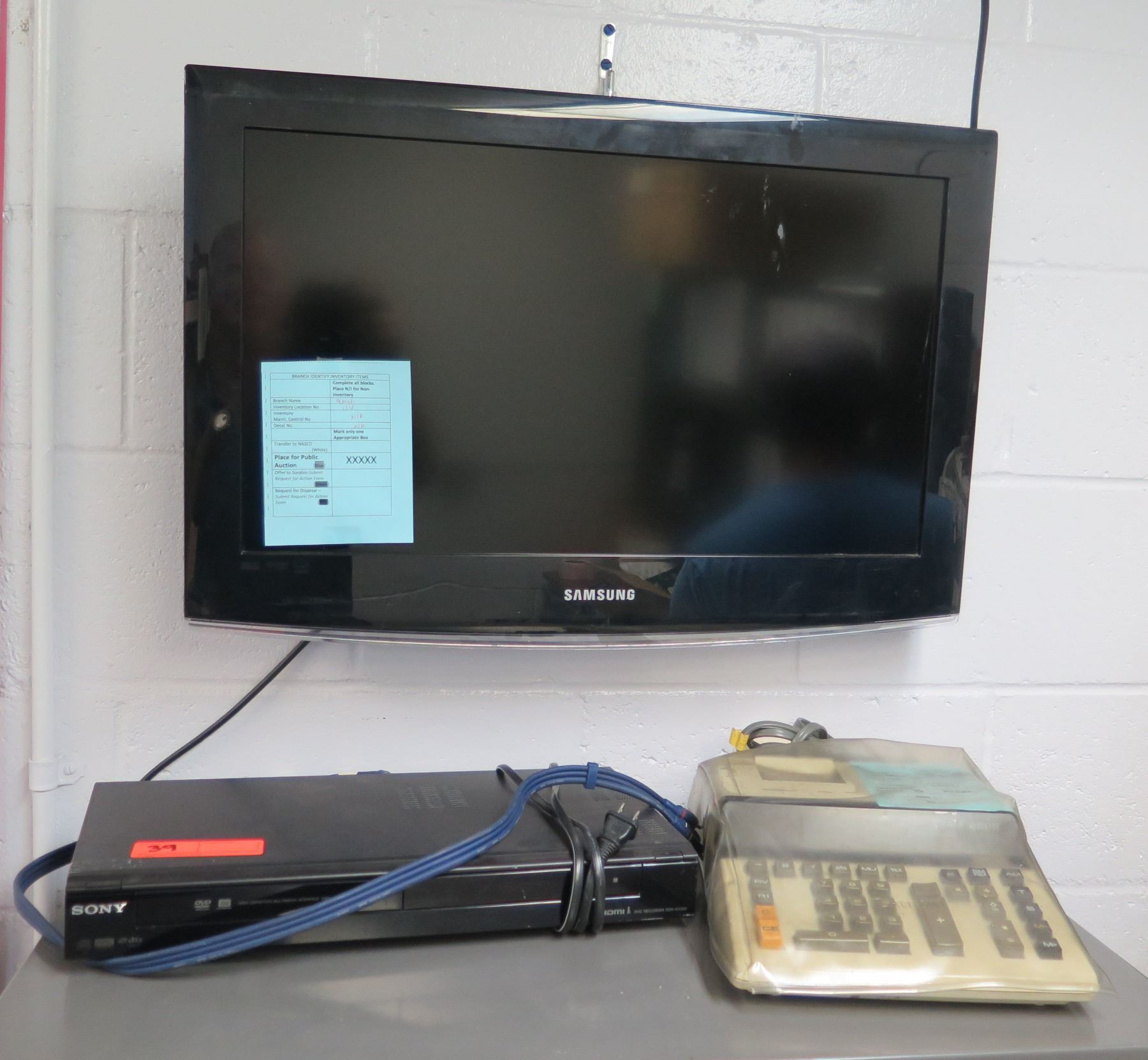 Samsung Wall-Mount TV, Sony DVD Player & Calculator