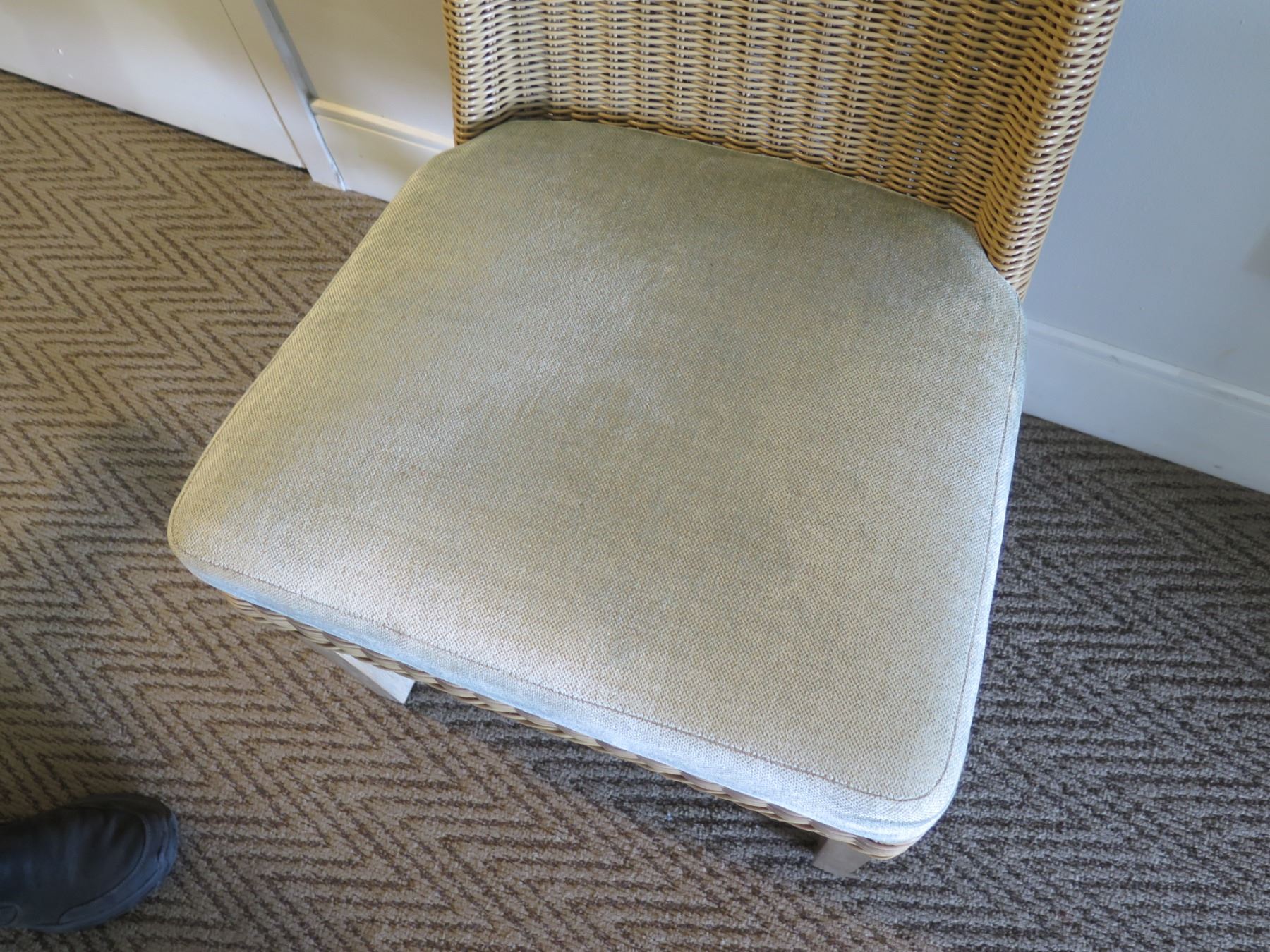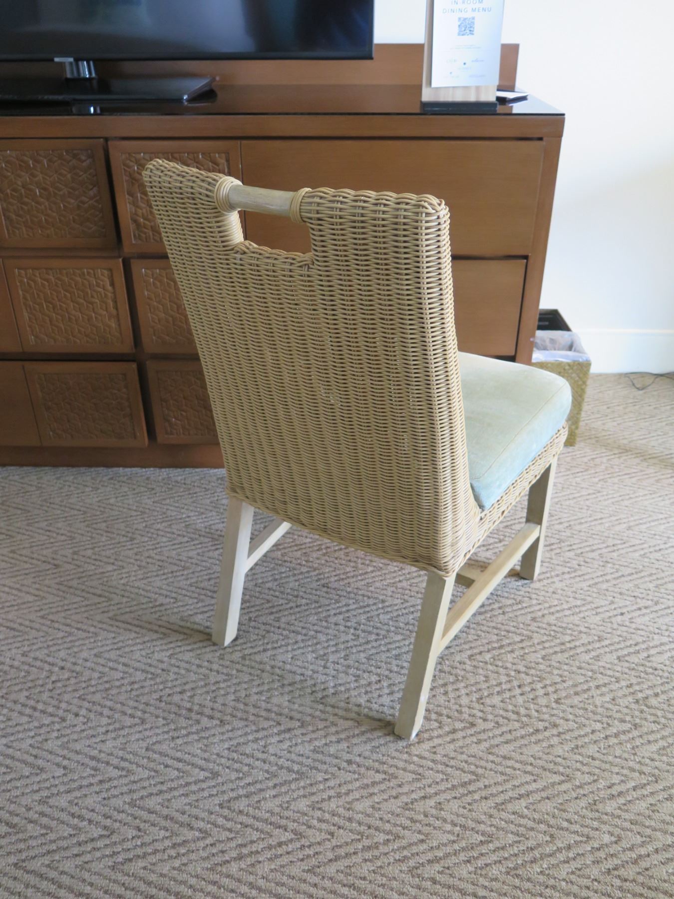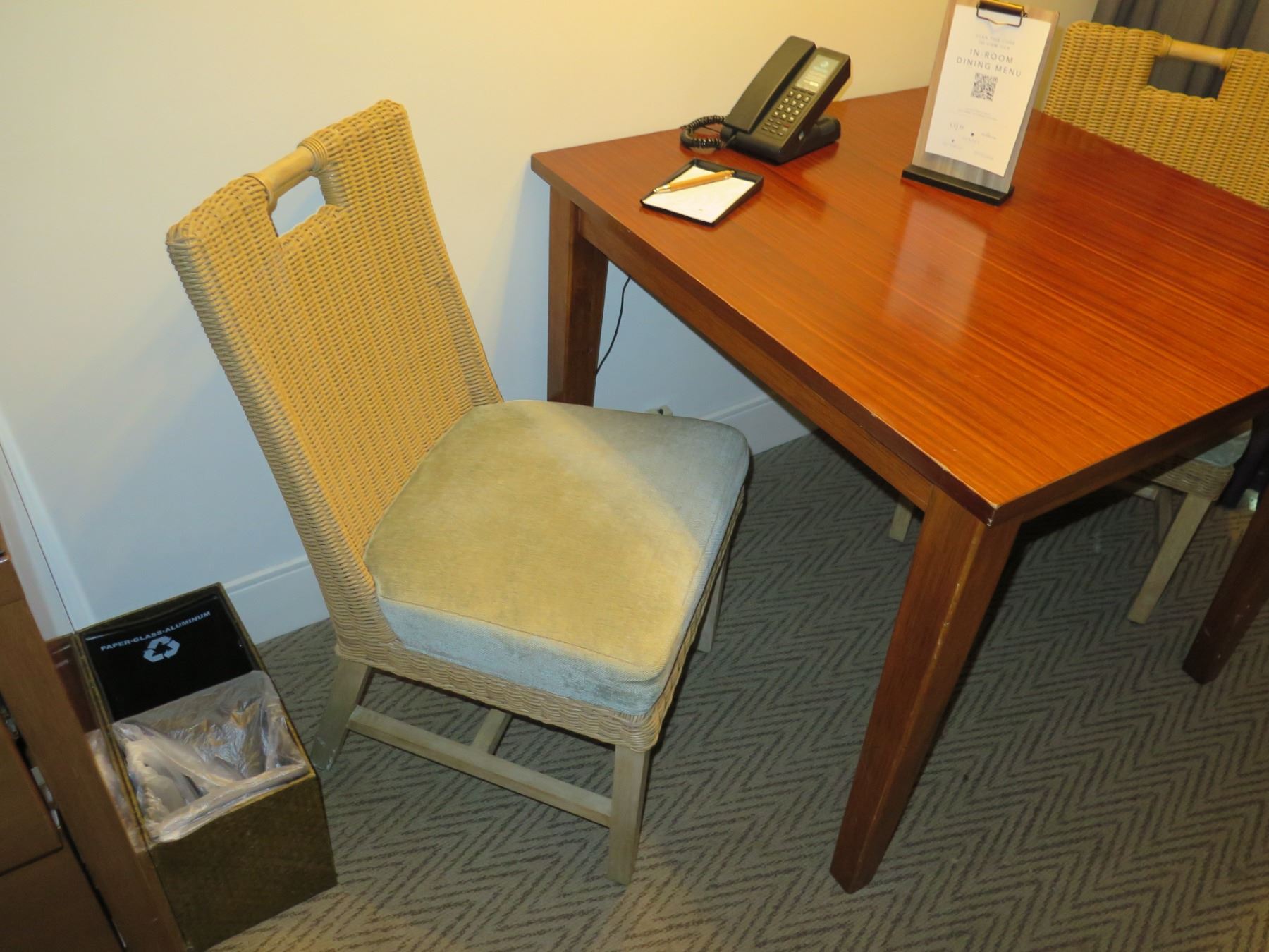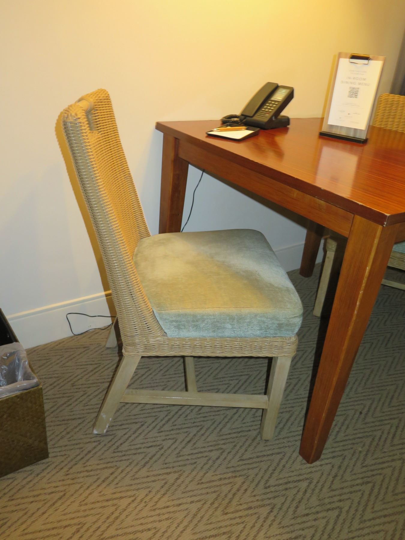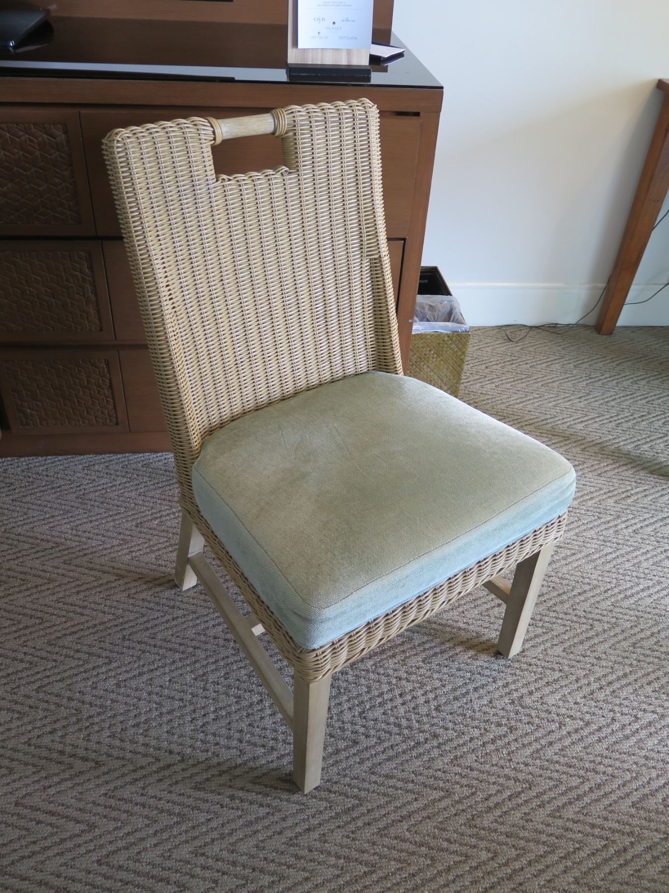 Samuelson Wooden Table w/ 2 Woven Rattan & Wood Upholstered Chairs