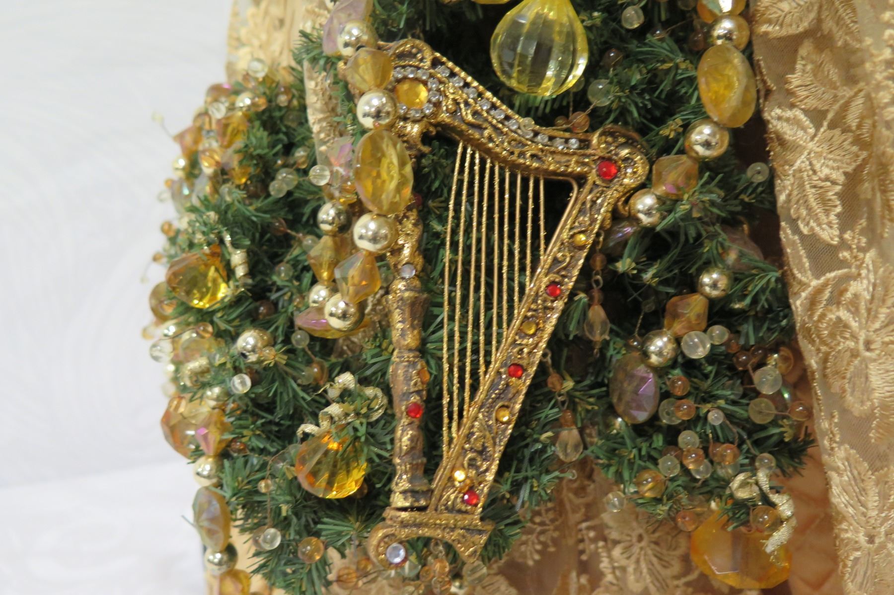 Santa in Gold Robe 'Over the Koolaus' Signed Ione Adams, 27" Tall