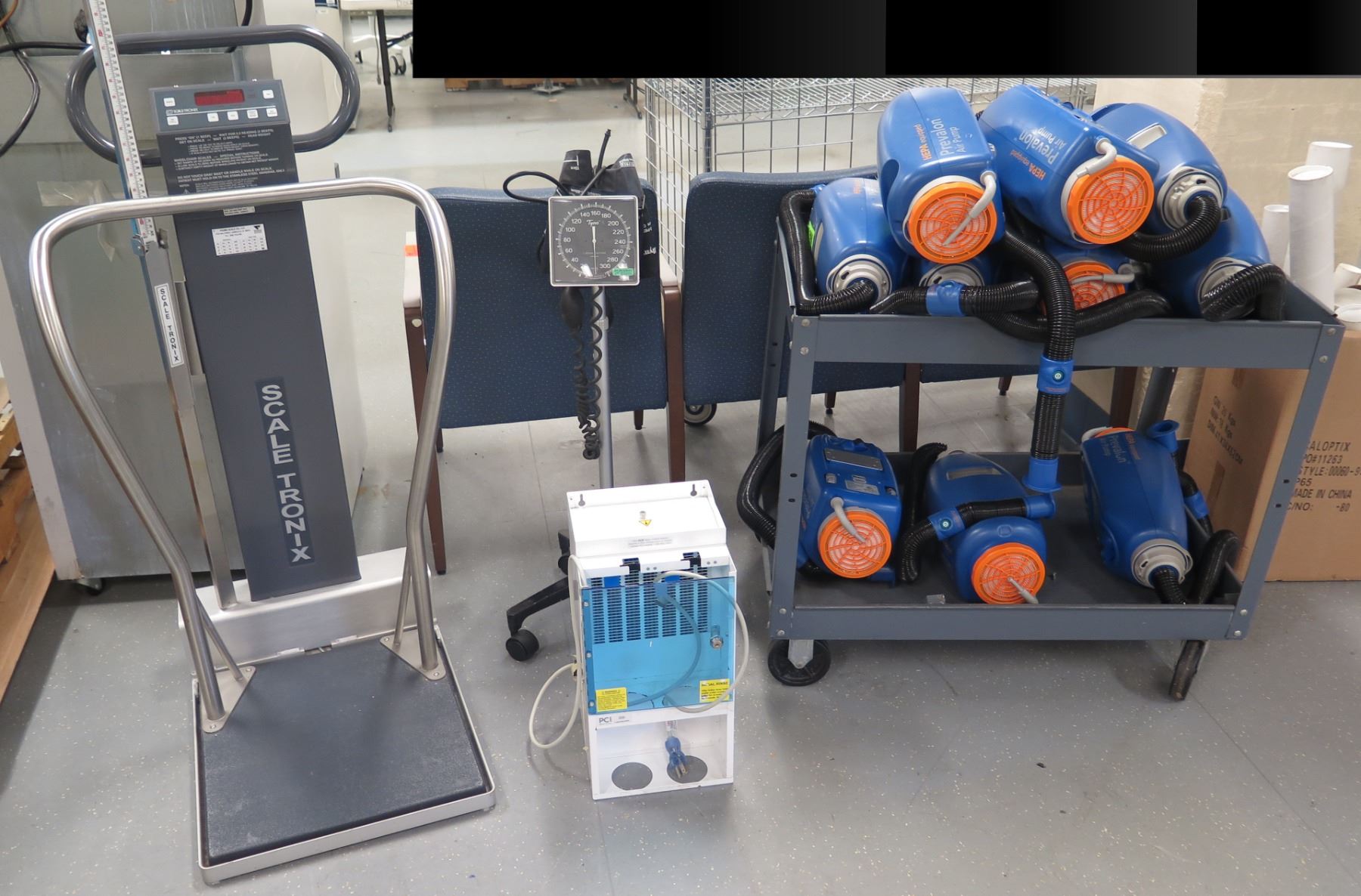 Scale-Tronix Mobile Scale, PCi Medical G10VP Disinfection Station, Air Pumps, Blood Pressure Monitor, etc
