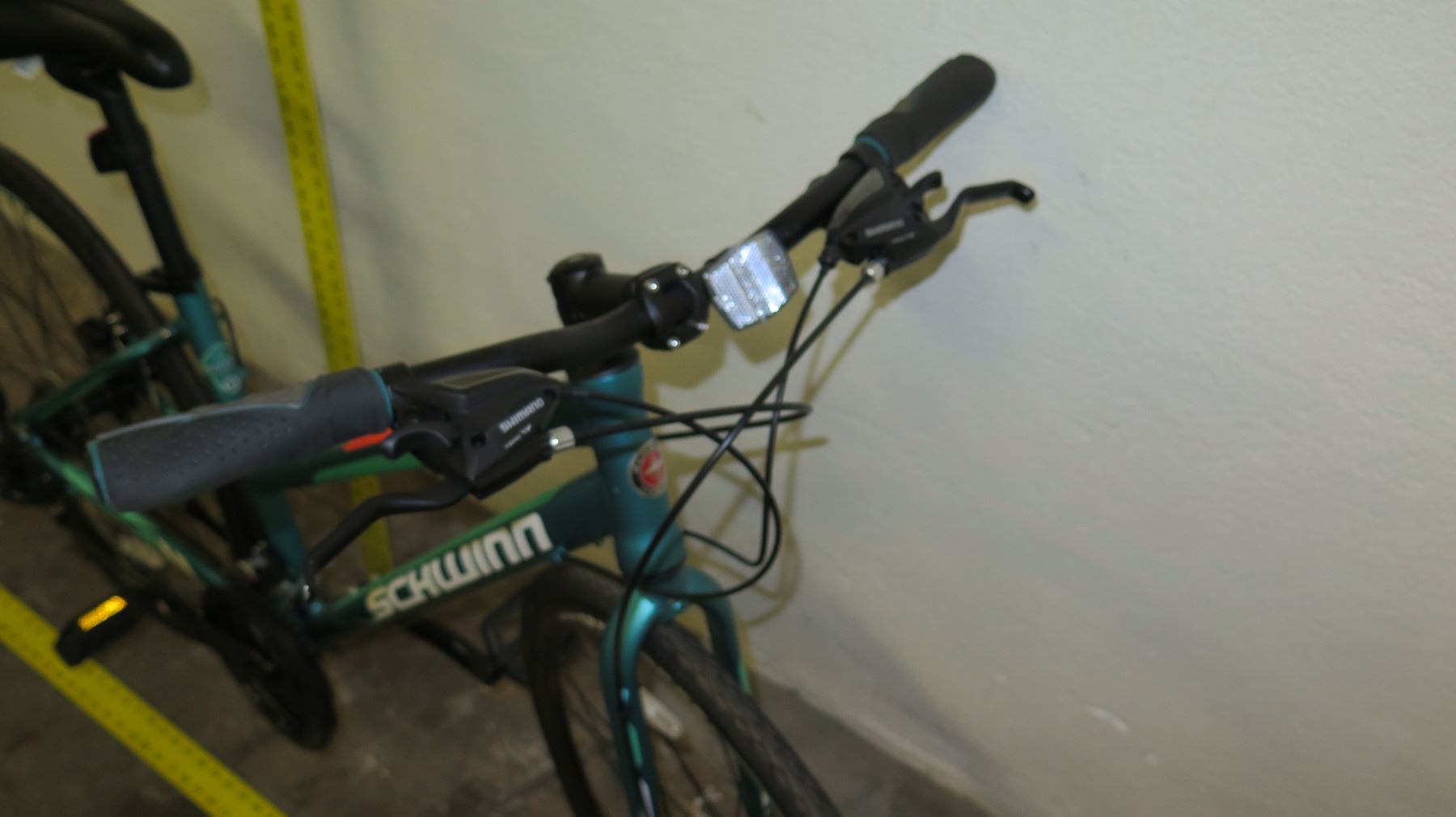 Schwinn 21-Speed Circuit Bike, Shimano Hybrid Women's 700 CL, Teal. Bikes have been in storage at the HPD warehouse for some time and will need to have tires inflated and basic maintenance done. May be missing parts.