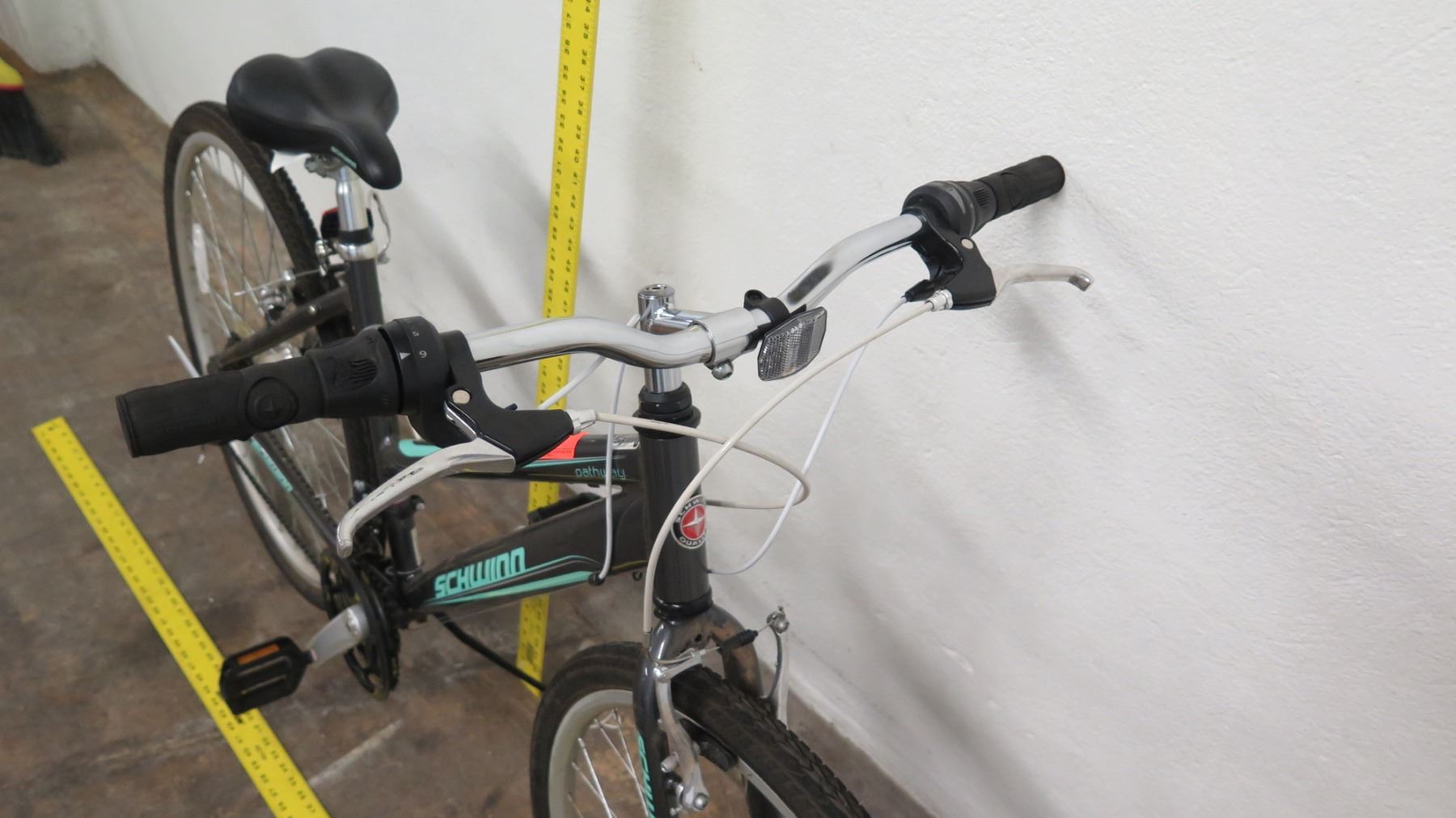 Schwinn Pathway 700 C Women's 18-Speed Bike, Gray/Aqua. Bikes have been in storage at the HPD warehouse for some time and will need to have tires inflated and basic maintenance done. May be missing parts.