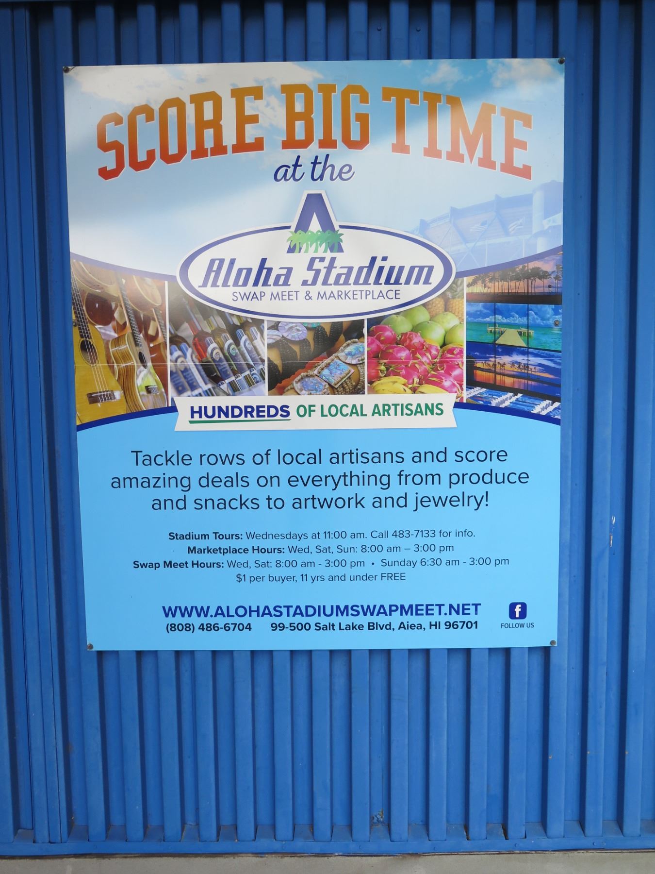 Score Big Time at the Aloha Stadium Swap Meet Sign 60"x72". Note: Signs will be removed if hanging prior to pick up