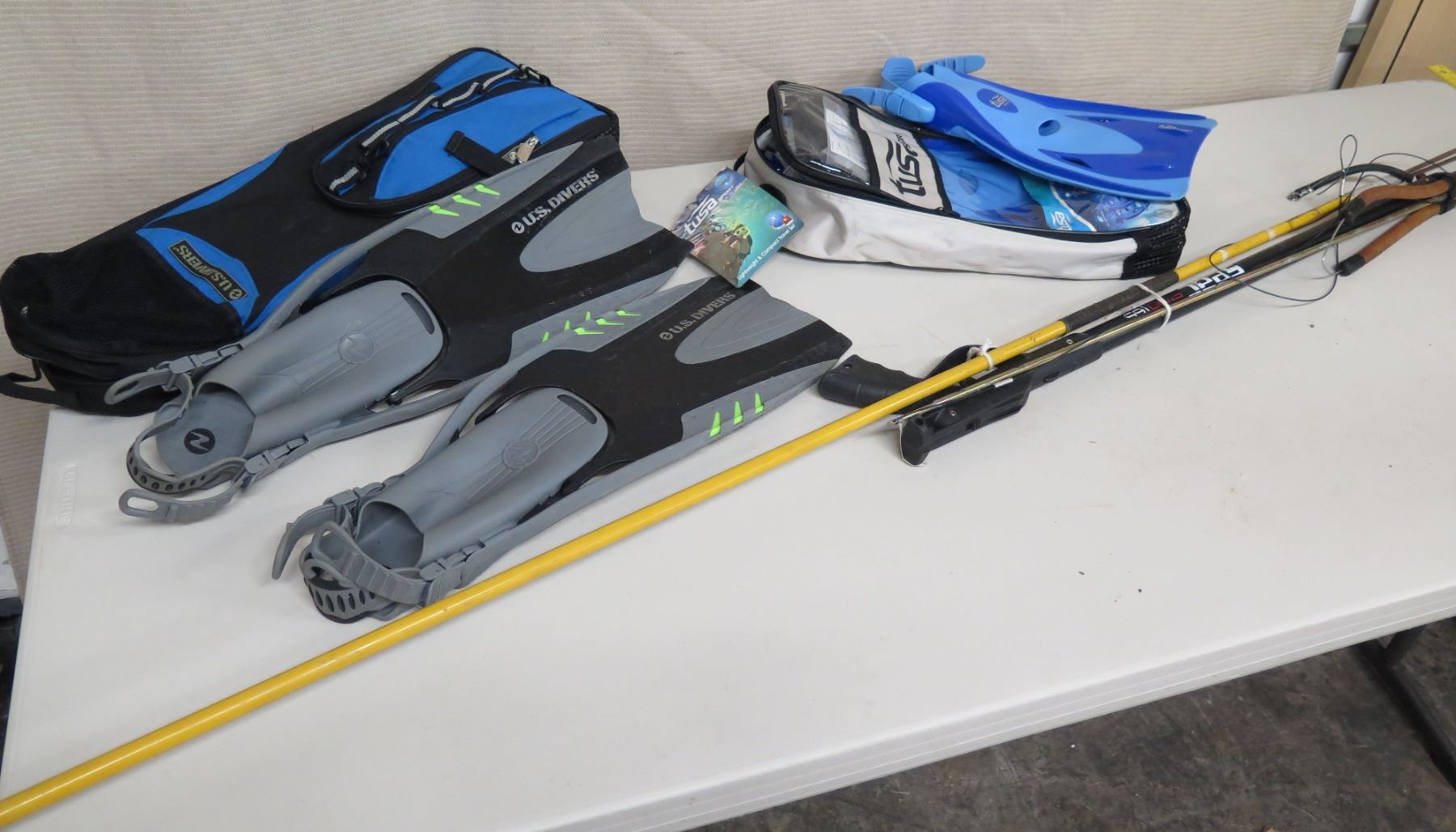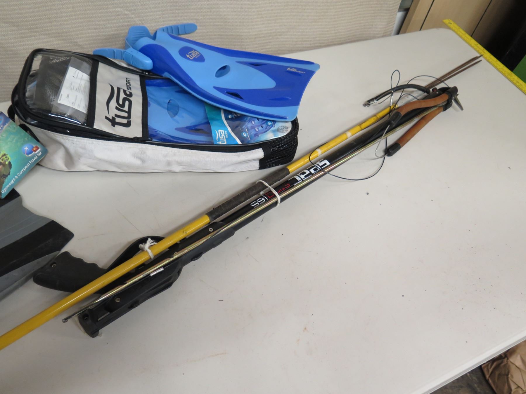 Seac 65 Spear Gun, Pair Tusa Short Fins & US Divers Fins, etc