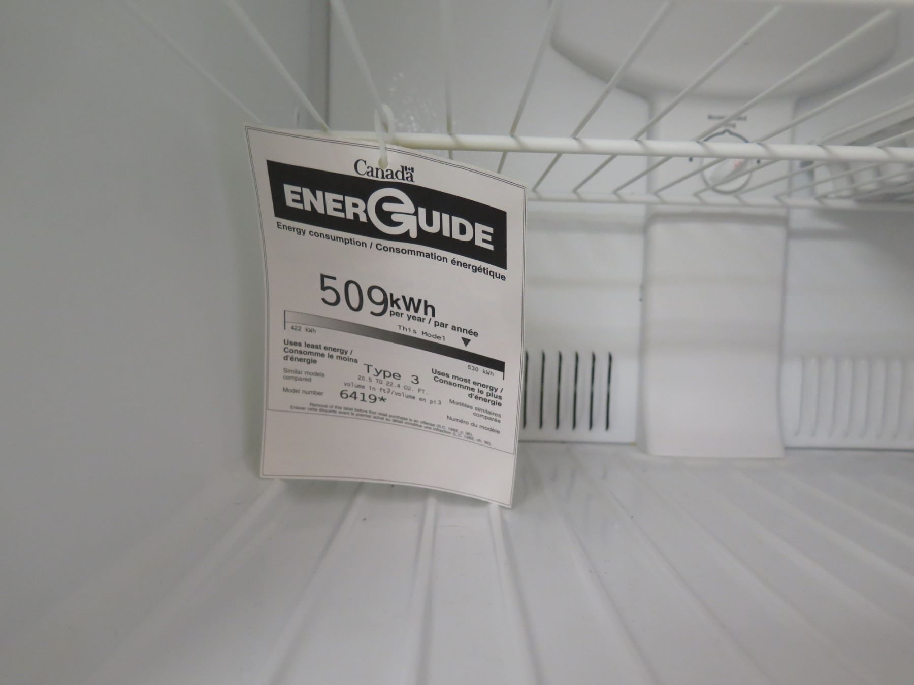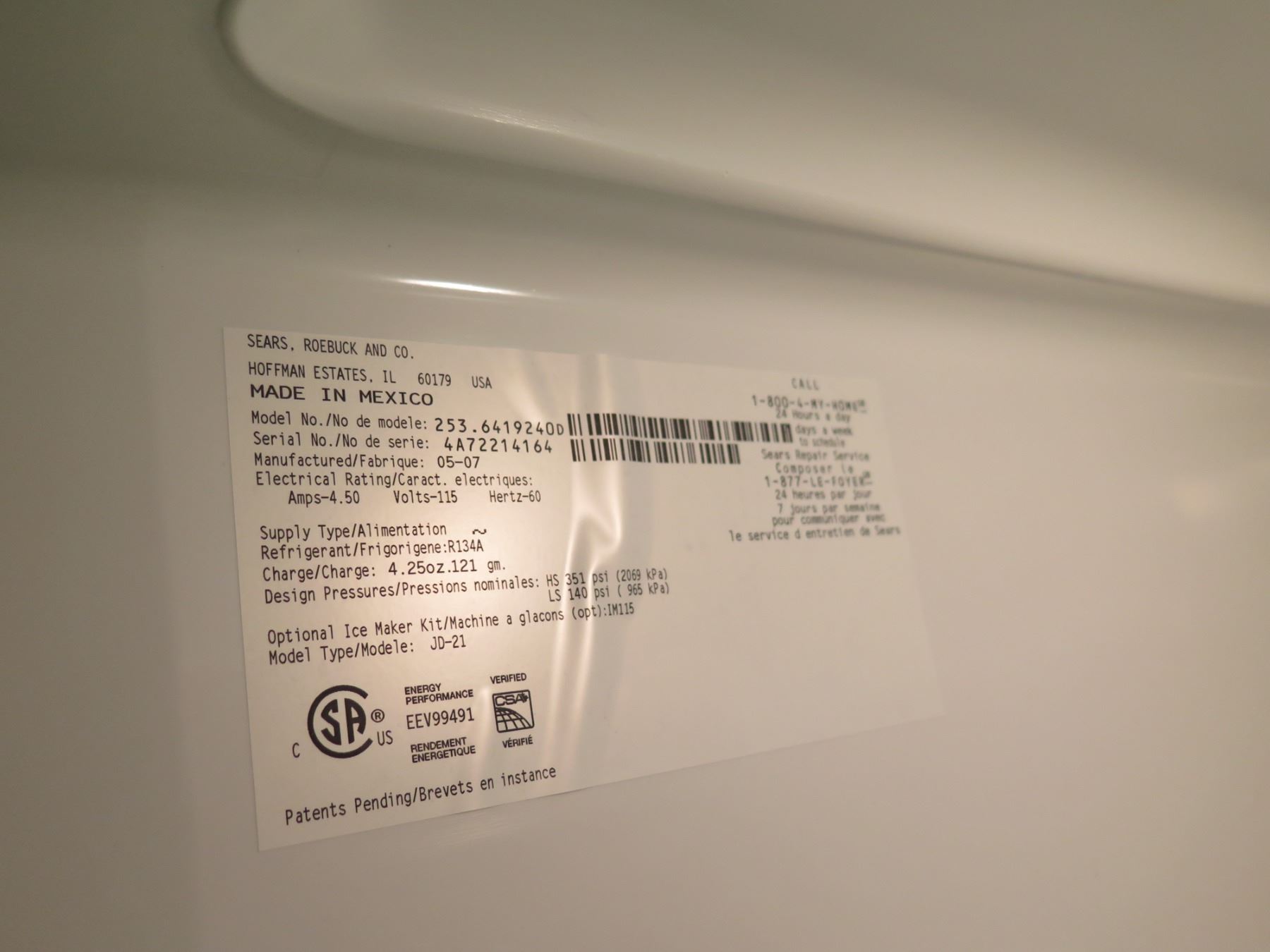 Sears Top Freezer Refrigerator Model 523.6419240D
