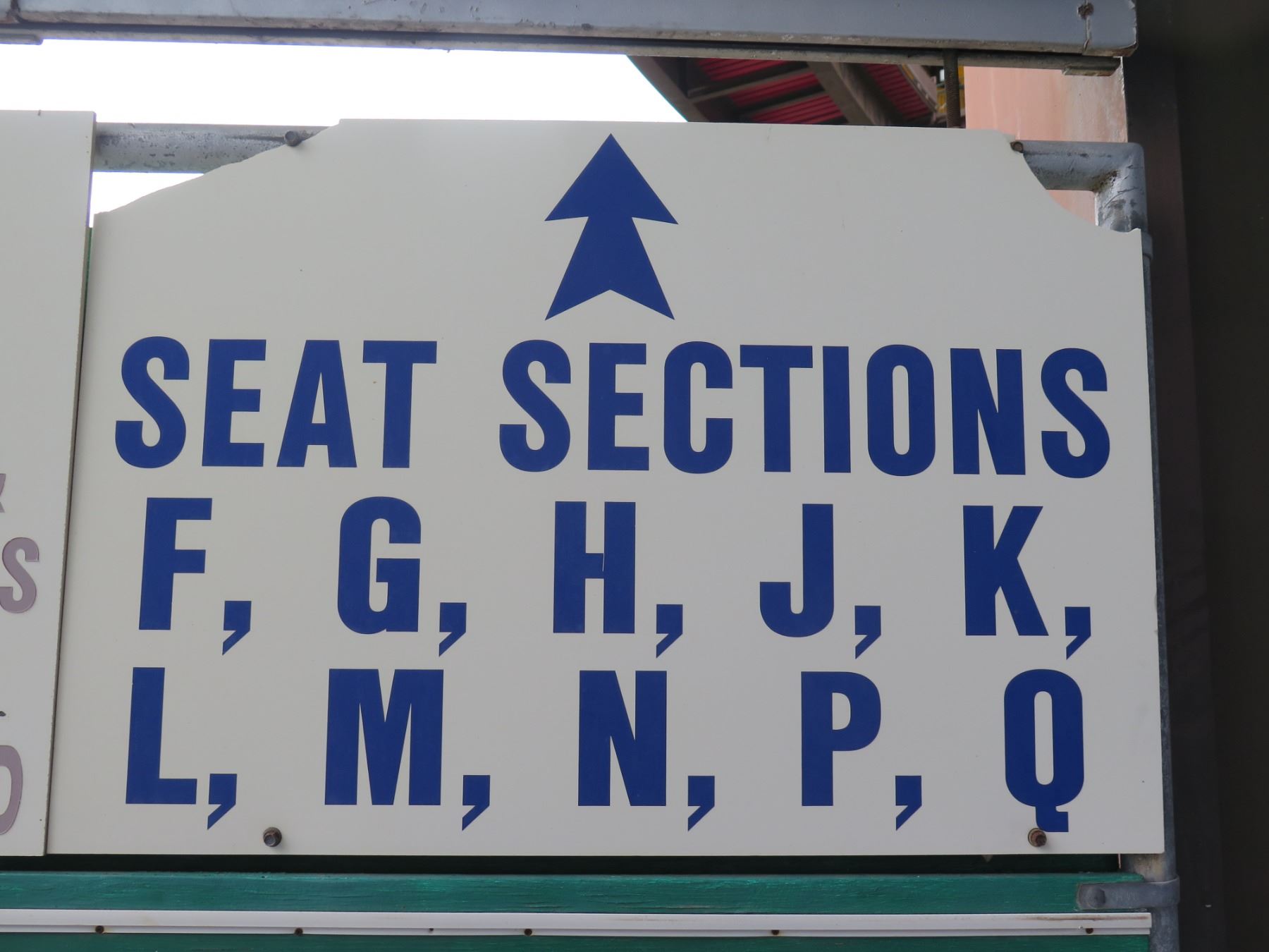 Seat Sections F, G, H, J, K, L, M, N, P, Q w/ Arrow Sign 35"x24" (Corner damage)