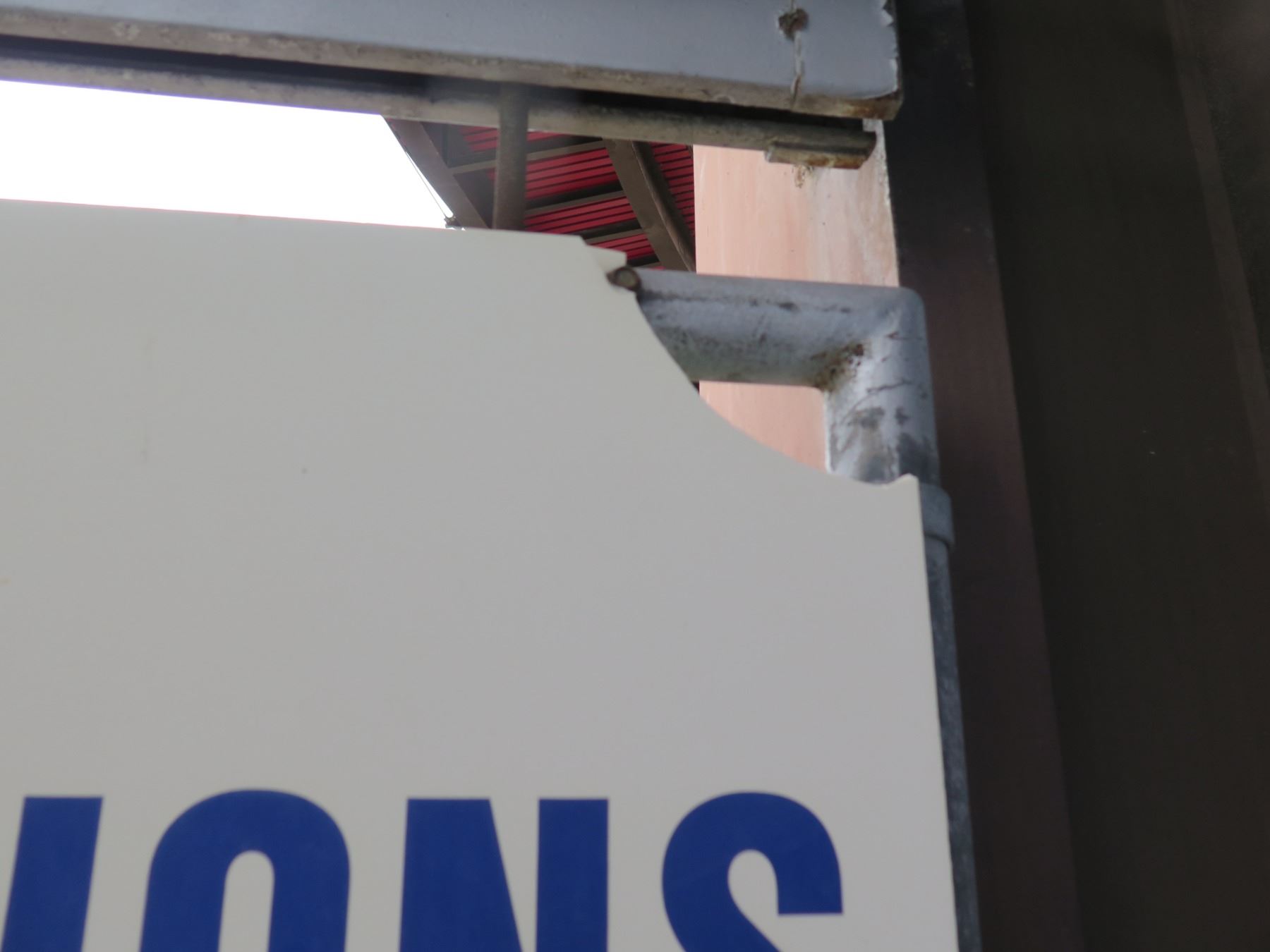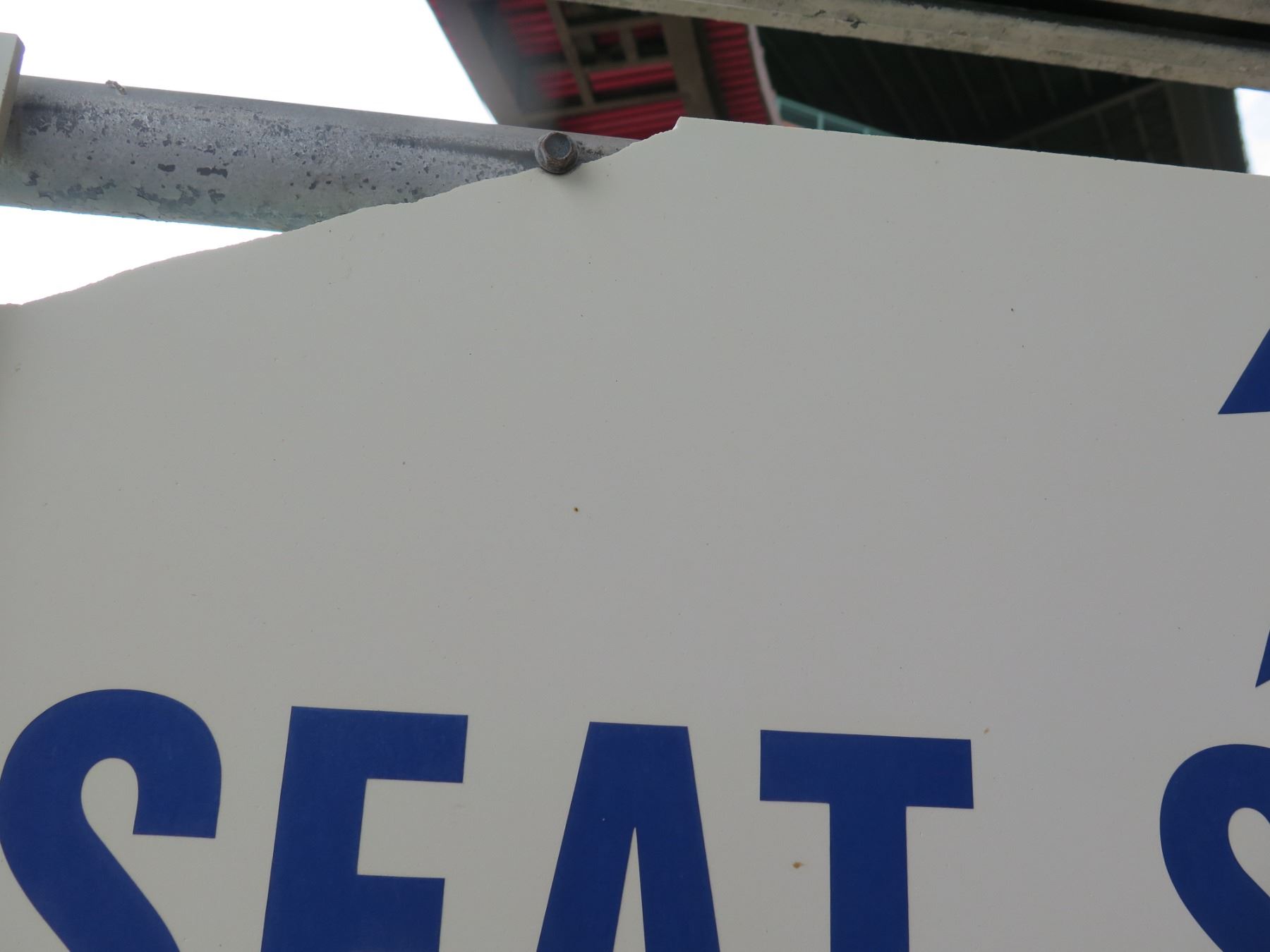 Seat Sections F, G, H, J, K, L, M, N, P, Q w/ Arrow Sign 35"x24" (Corner damage). Note: Signs will be removed if hanging prior to pick up