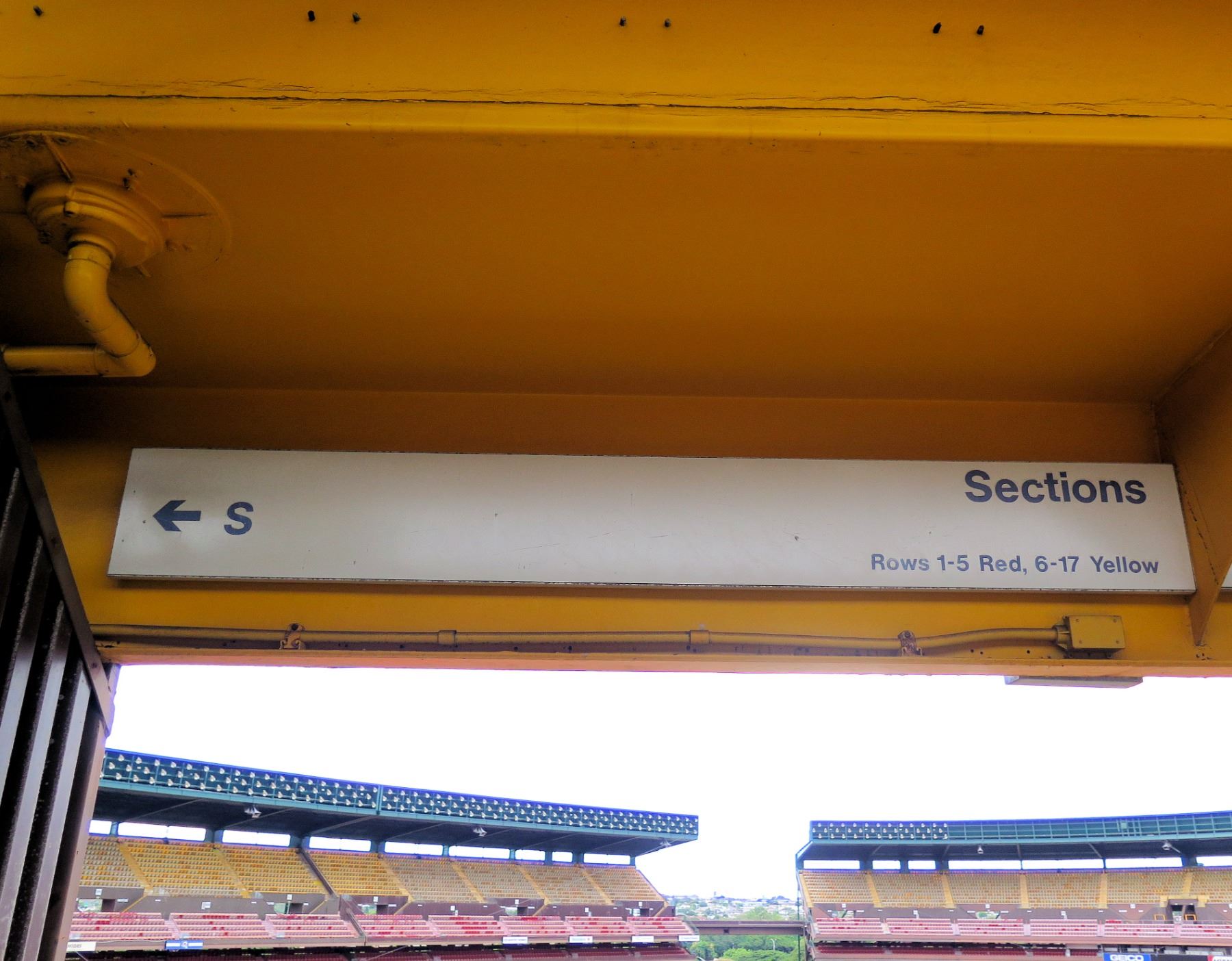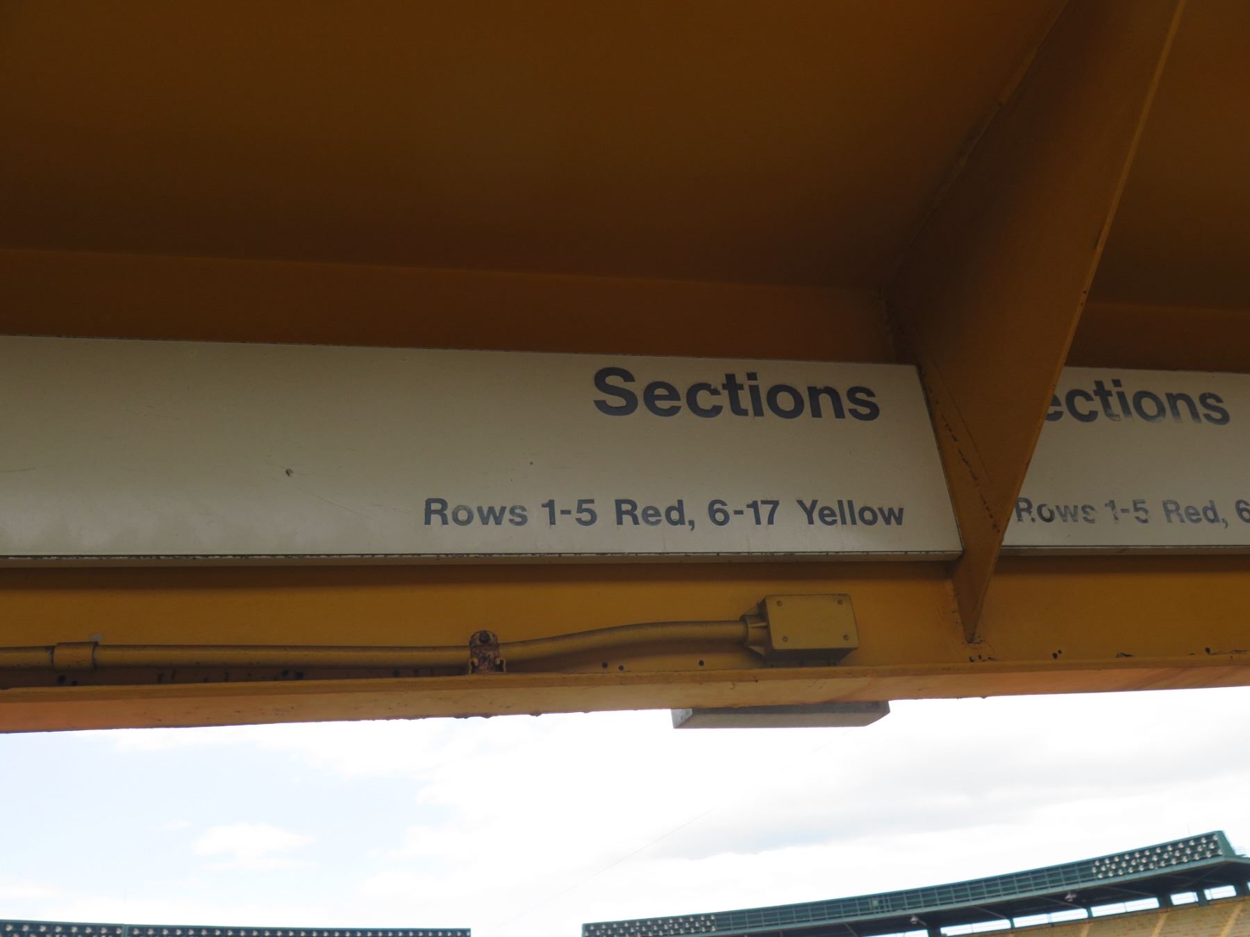 Section Sign S w/ Arrows, Rows 1-5 Red, 6-17 Yellow, 94"x12". Note: Signs will be removed if hanging prior to pick up