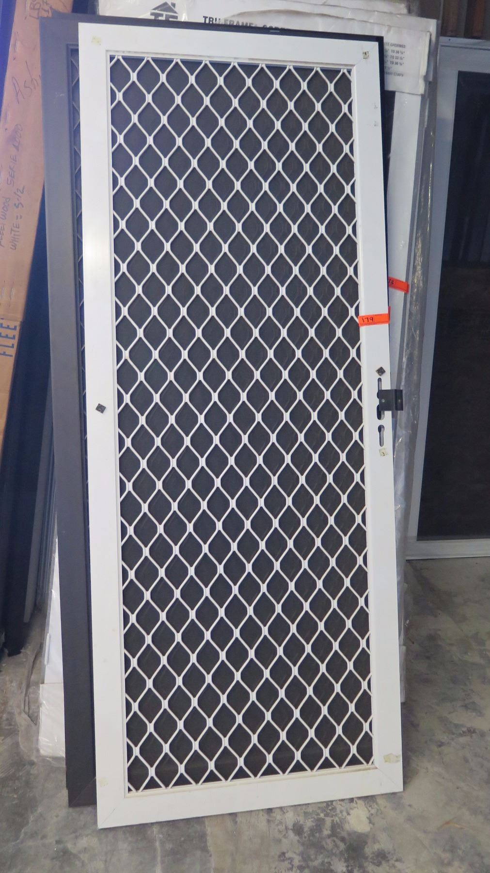 Security Screen Door 31-3/8" x 79-3/16" - Diamond Pattern Grill, White Painted Finish, Hinged, Retai
