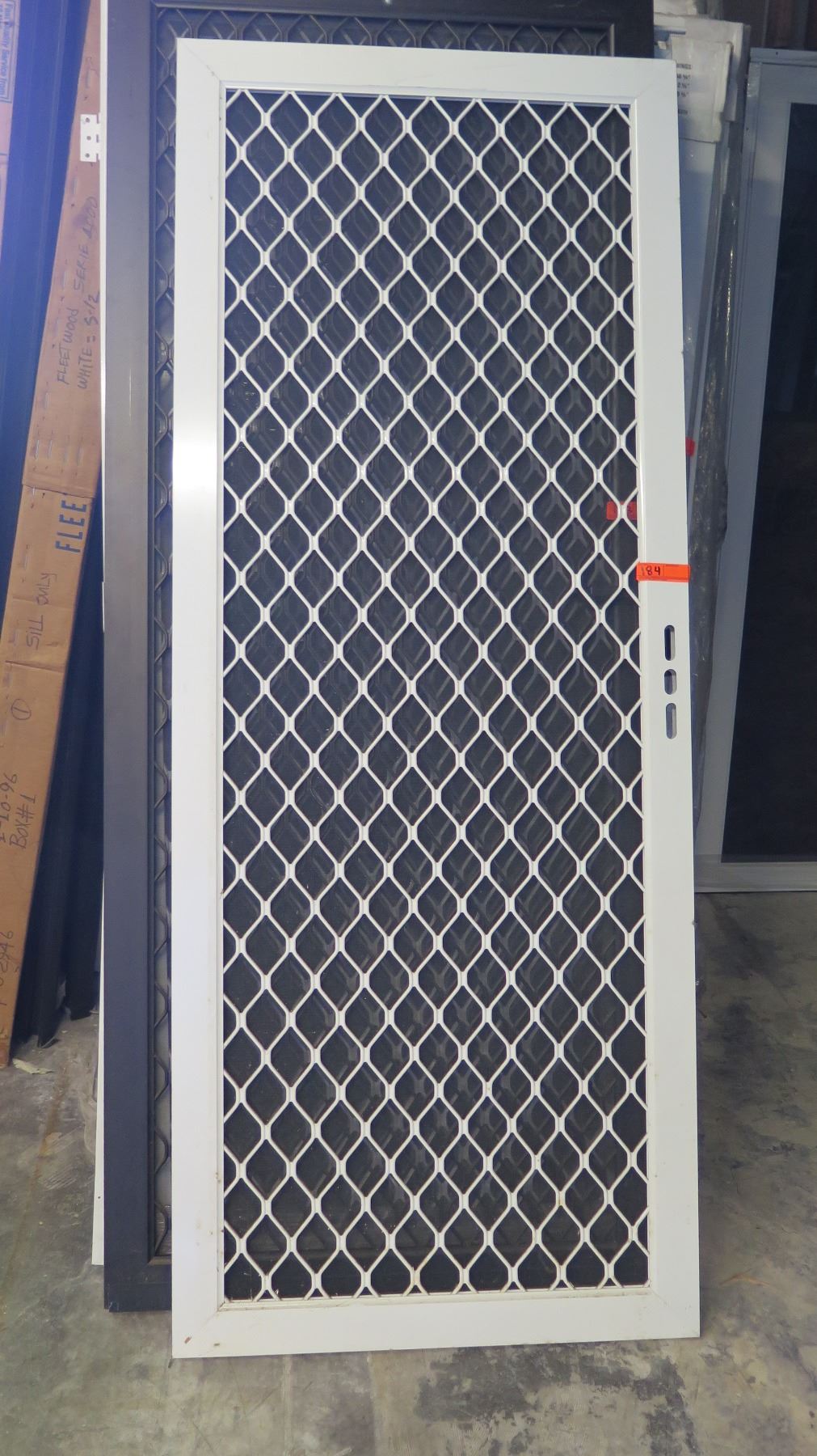 Security Screen Door 31-9/16" x 79-5/16" - Diamond Pattern Grill, White Finish, Hinged, Retail $370