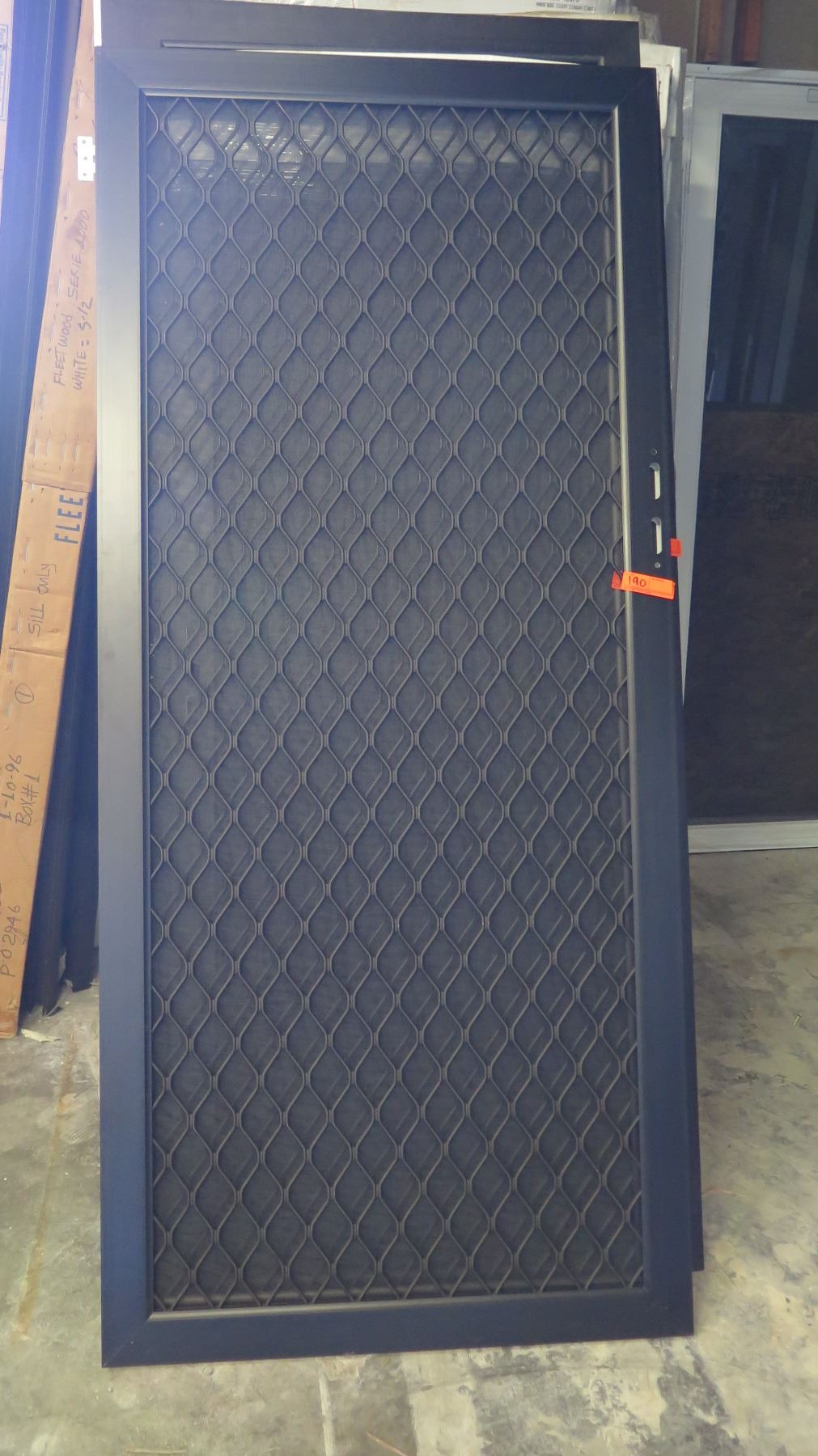 Security Screen Door 35-3/16" x 79-1/8" - Diamond Pattern Grill, Bronze Anodized Finish, Hinged, $62