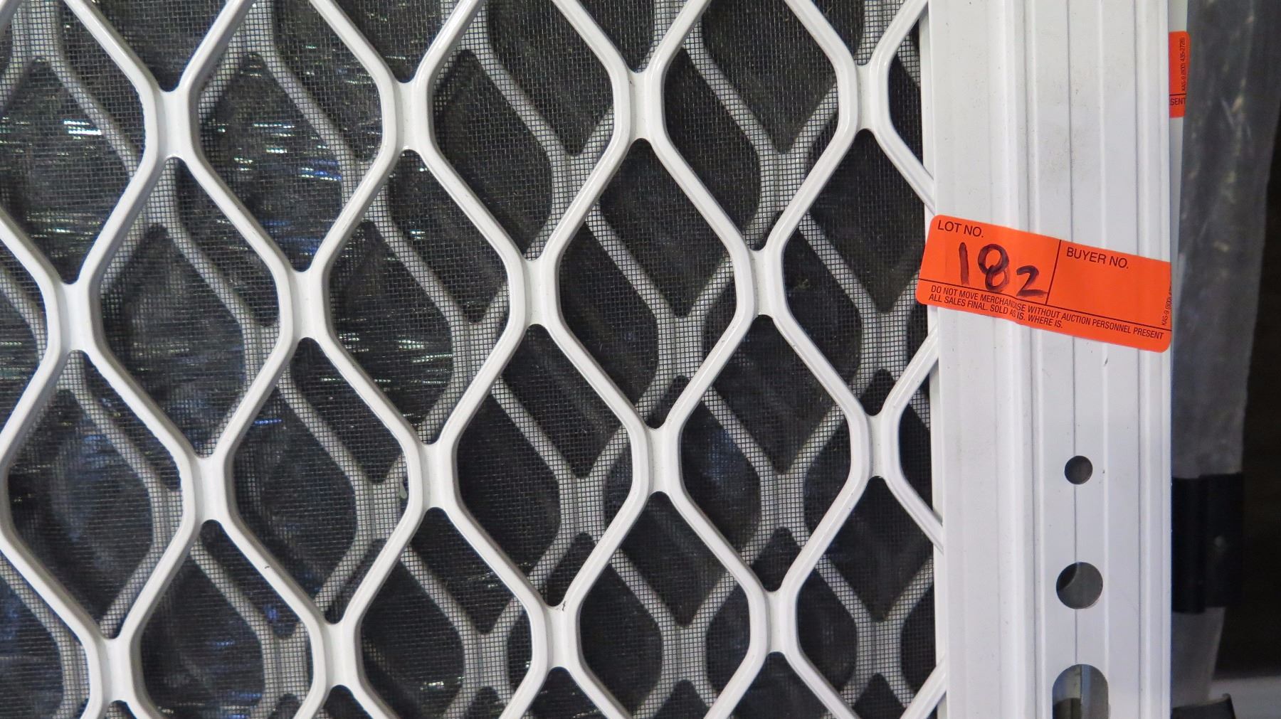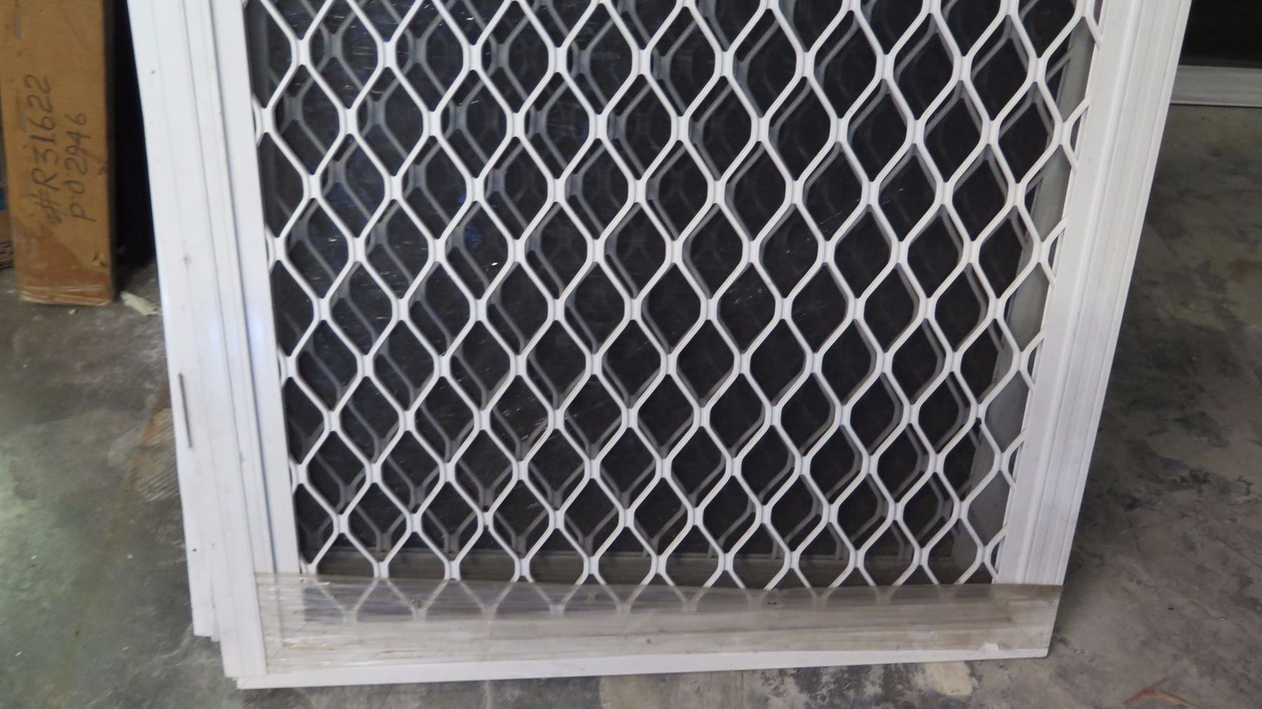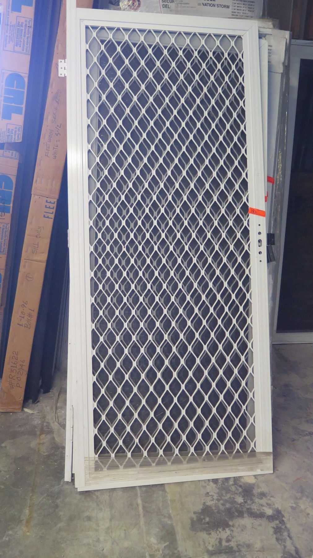 Security Screen Door 35-3/8" x 83" - Diamond Pattern Grill, White Finish, Hinged, Retail $492
