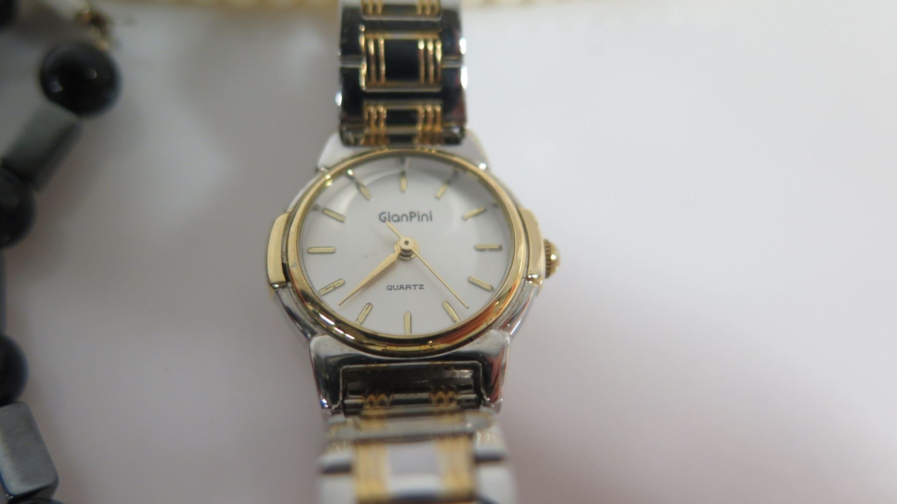 Seiko & Gian Pini Quartz Watch, Pearl Necklace, Hoop Earrings, etc