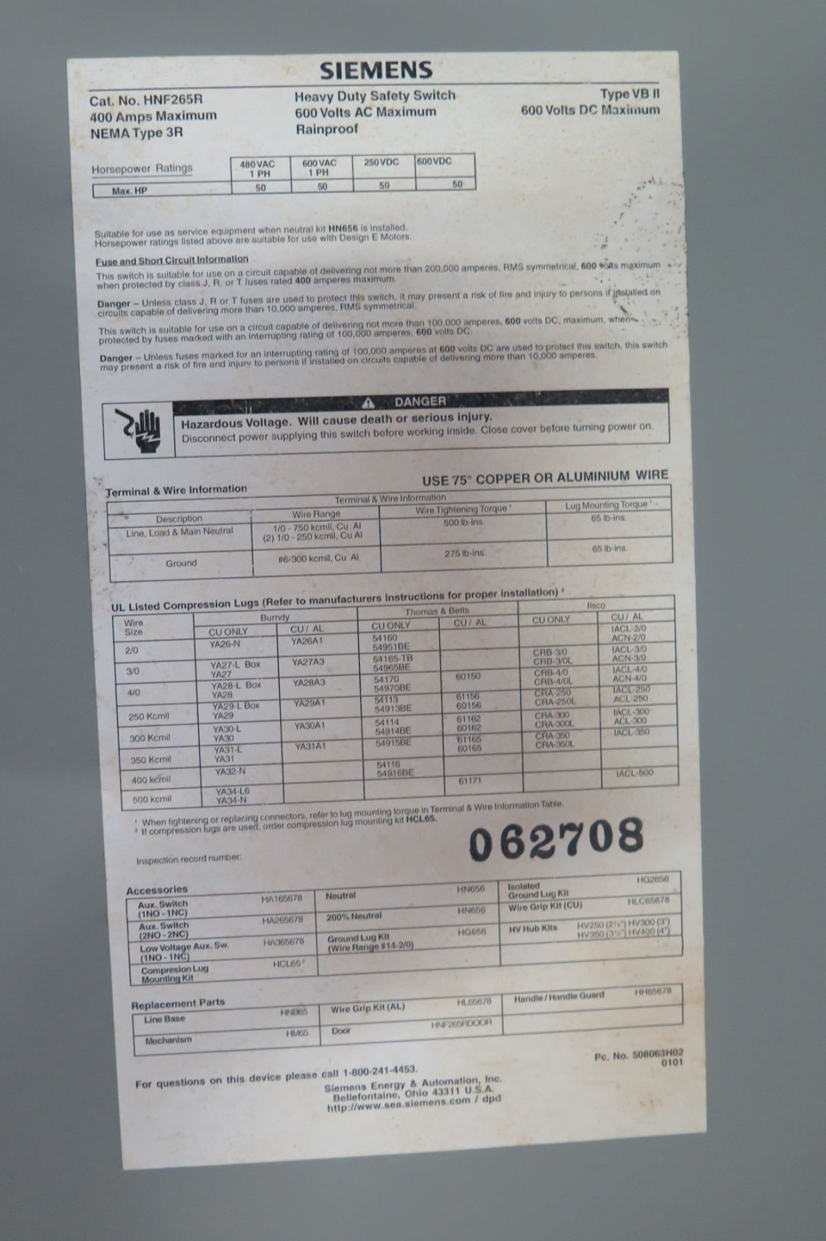 Semens Heavy Duty Safety Switch, 600V, Cat. HNF265R