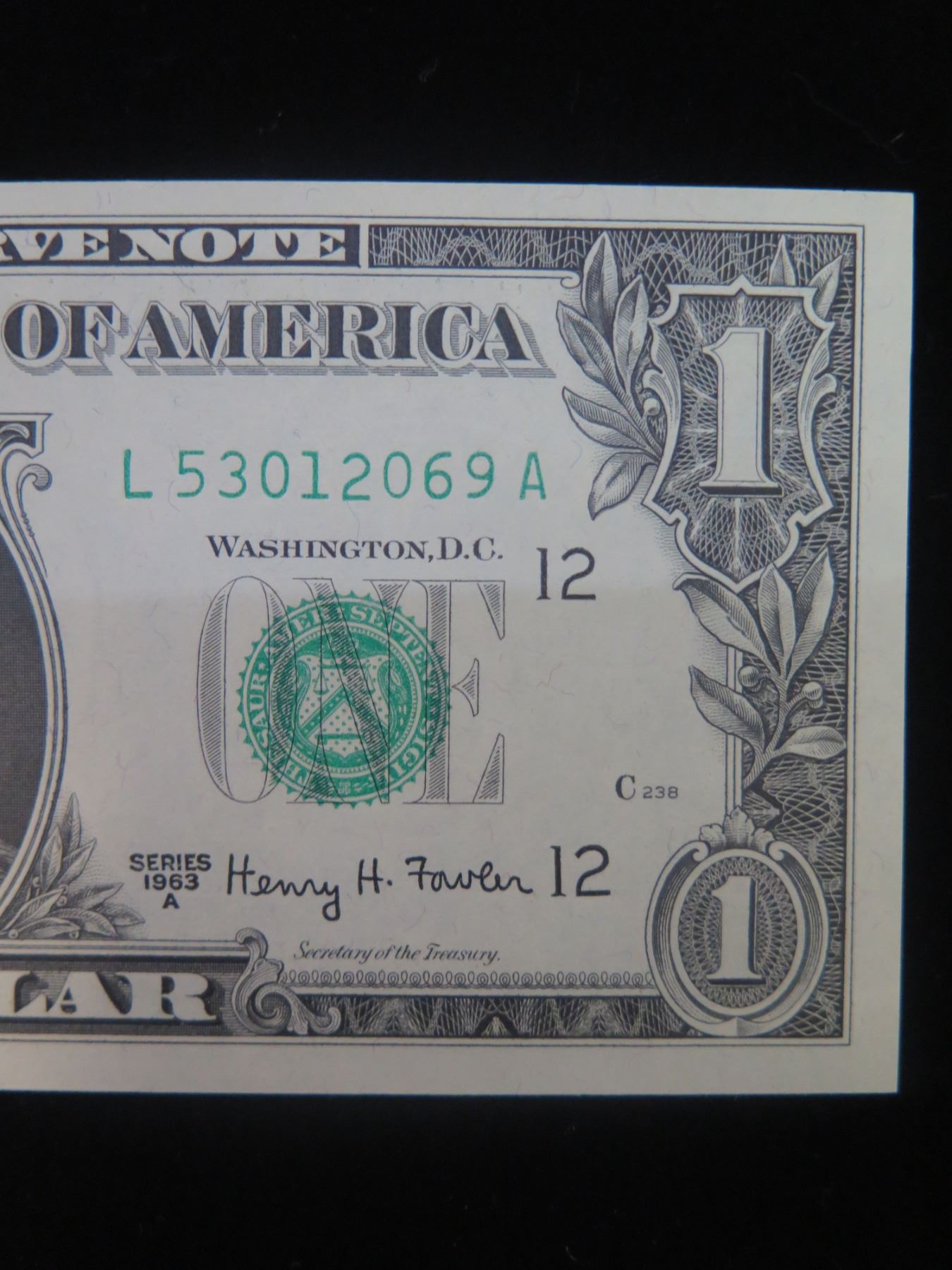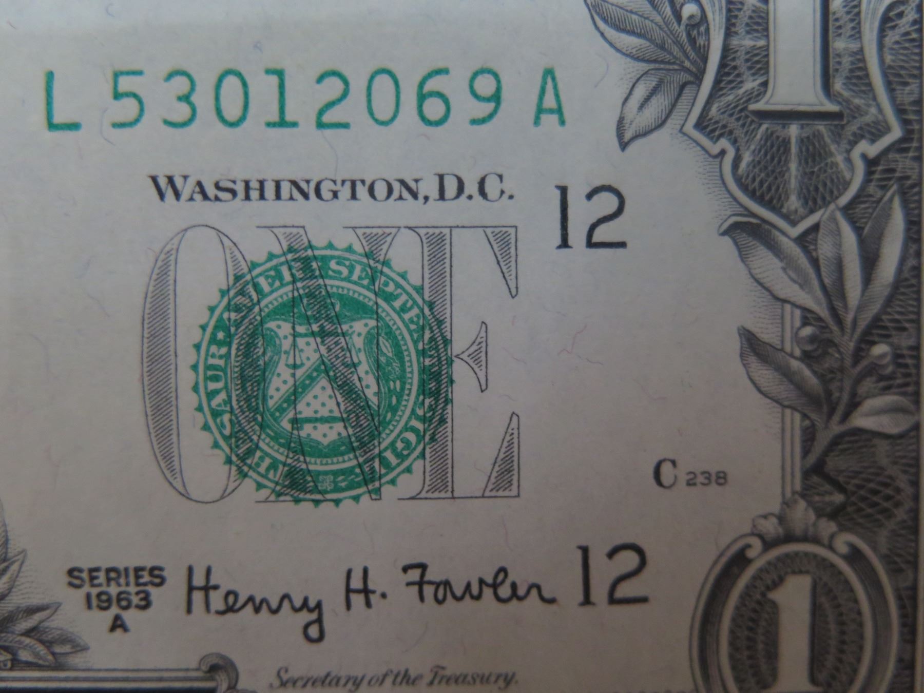 Series 1963 A One Dollar Federal Reserve Note w/ Misaligned Dies