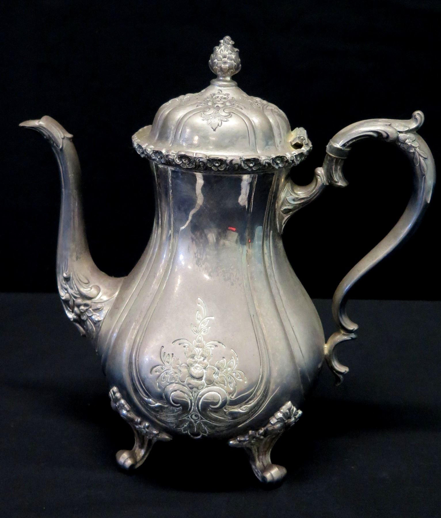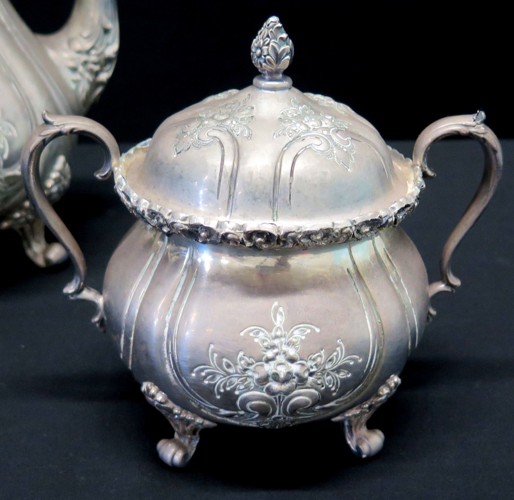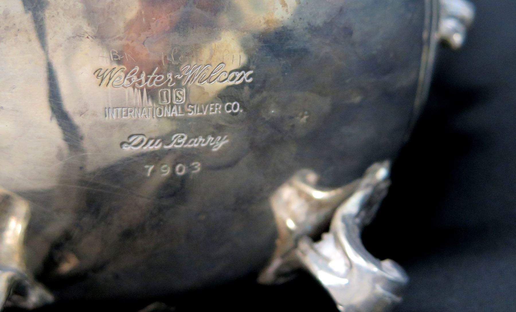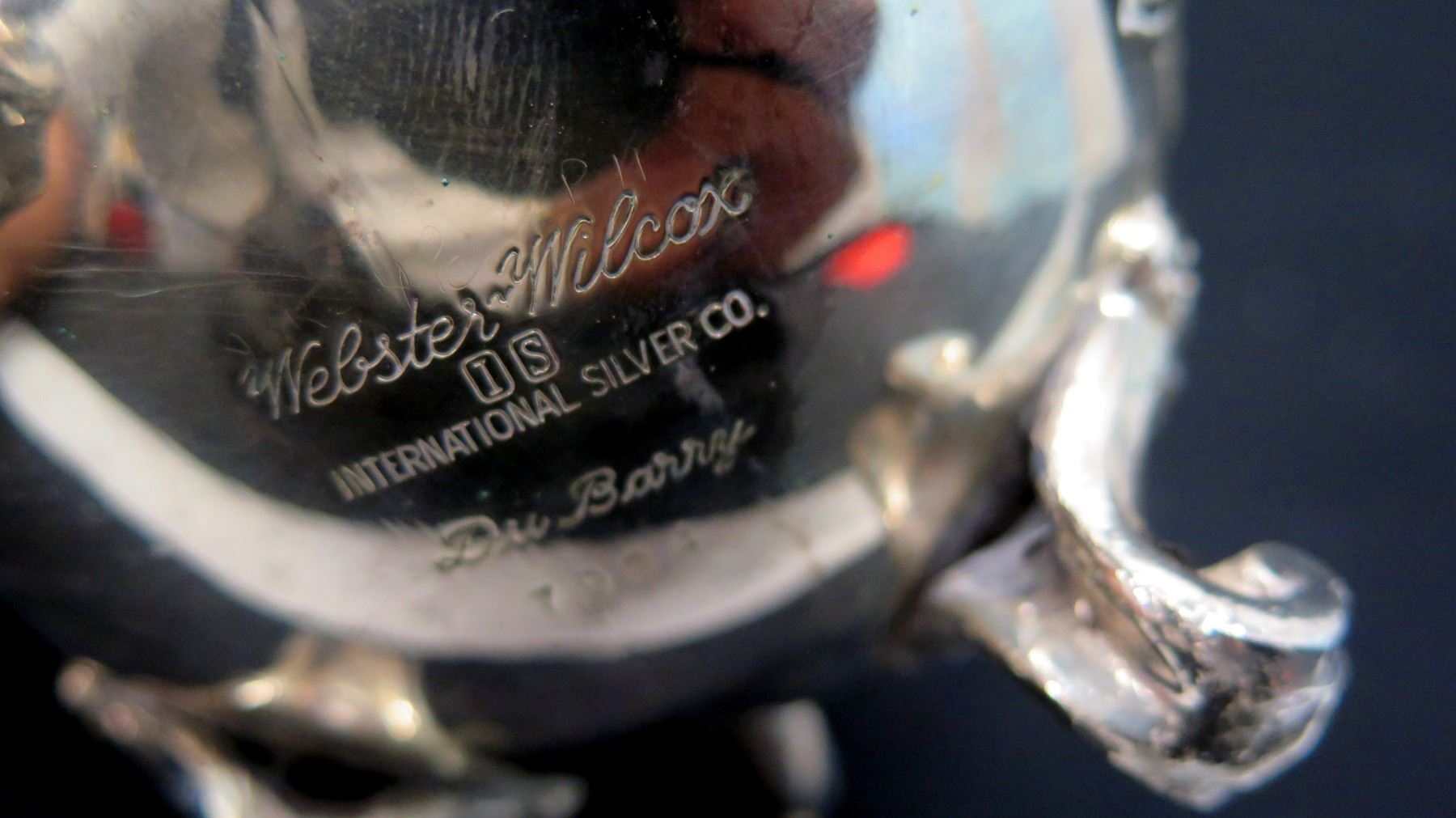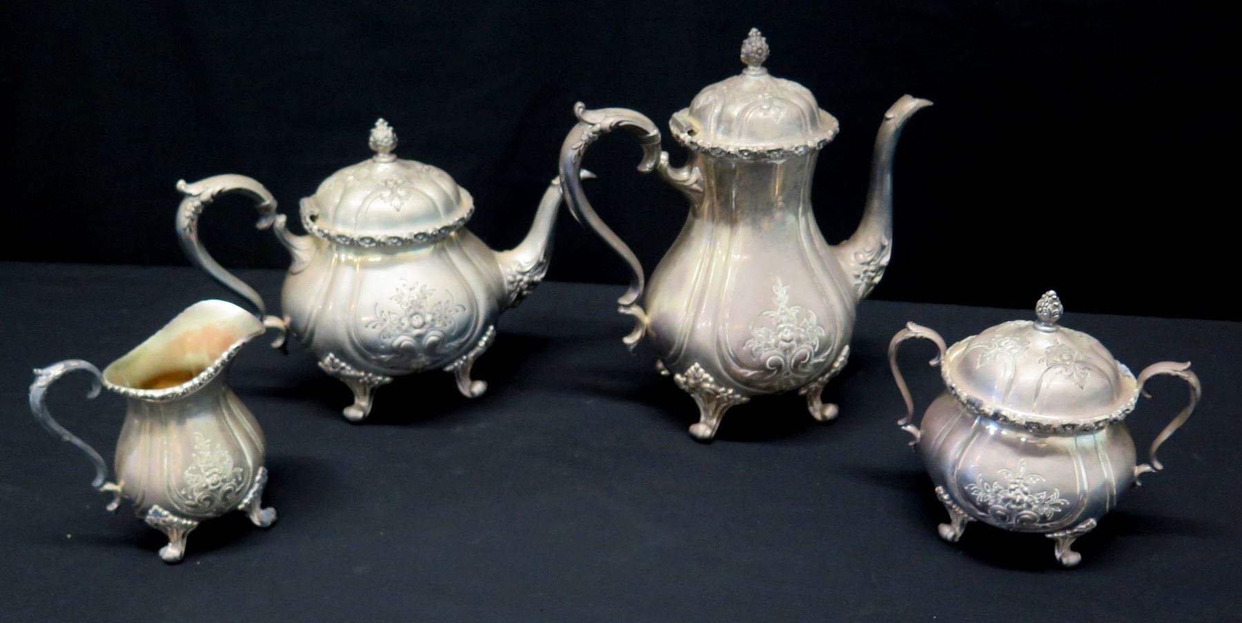 Serving Set: Creamer, Sugar Bowls,Teapot, Coffee Pot (Marked 'Webster Wilcox International Silver Co. Du Barry 7902, 7903')