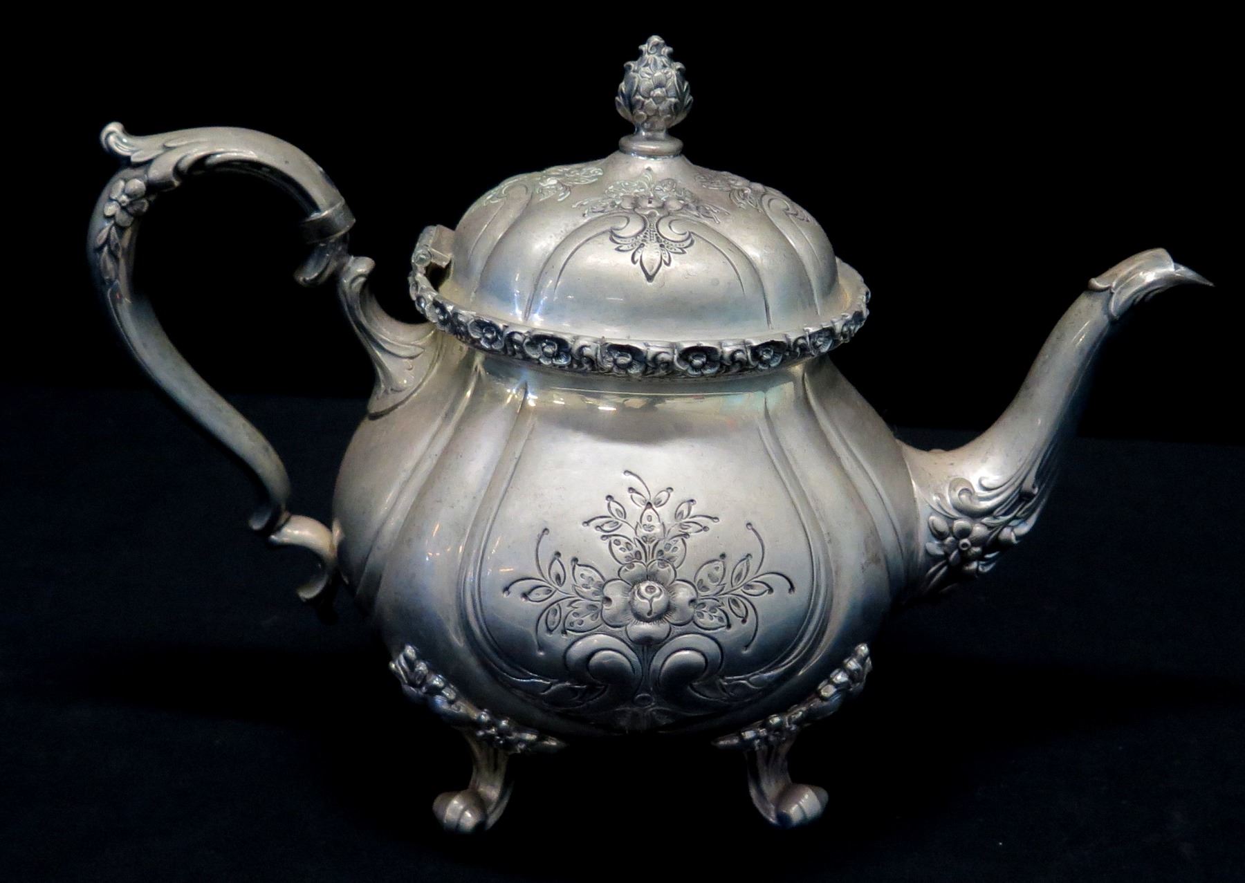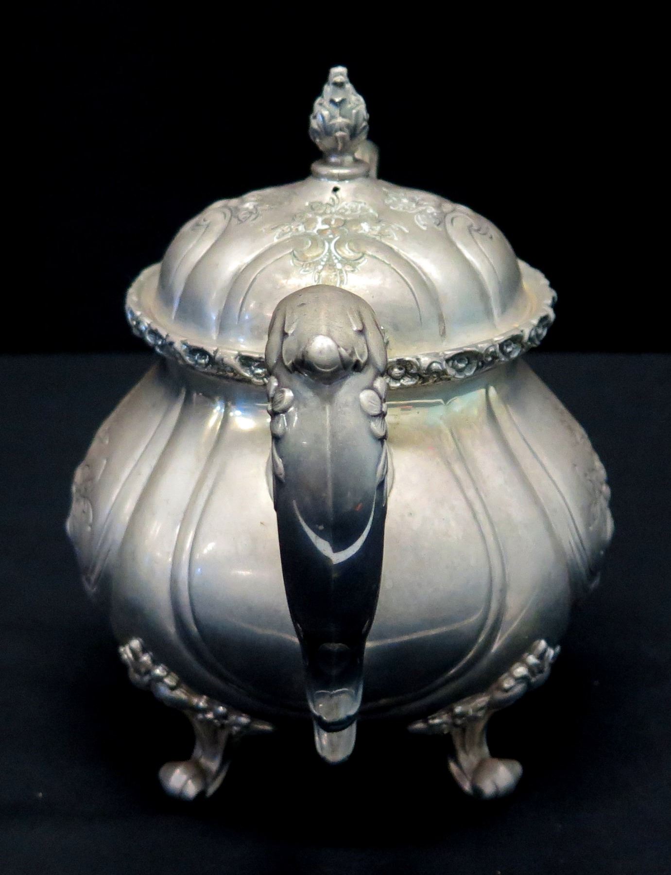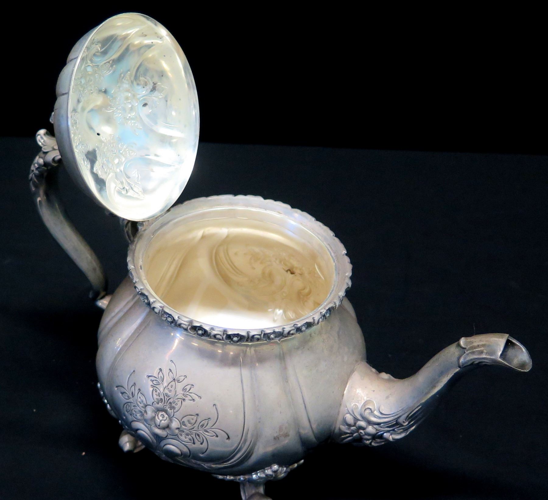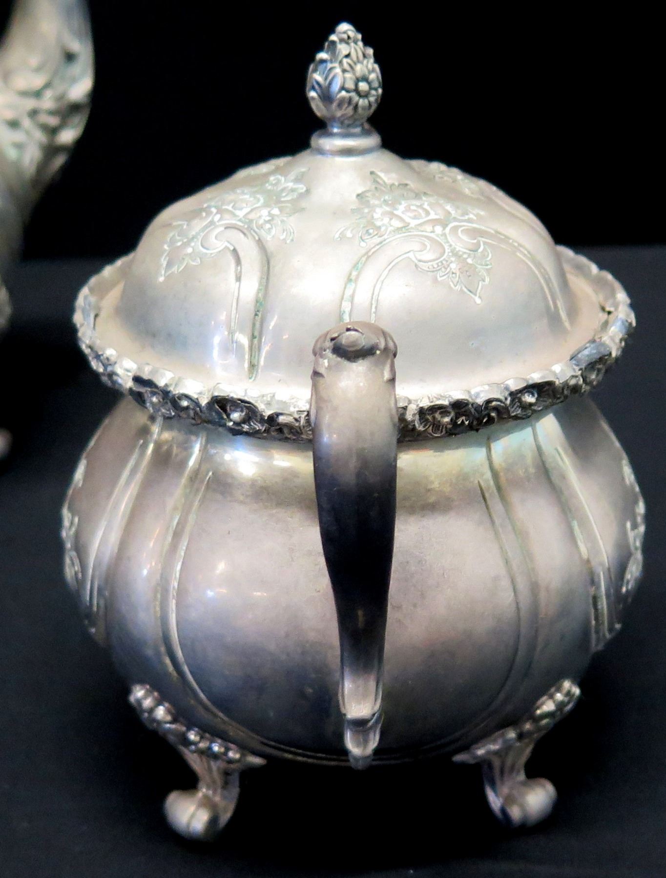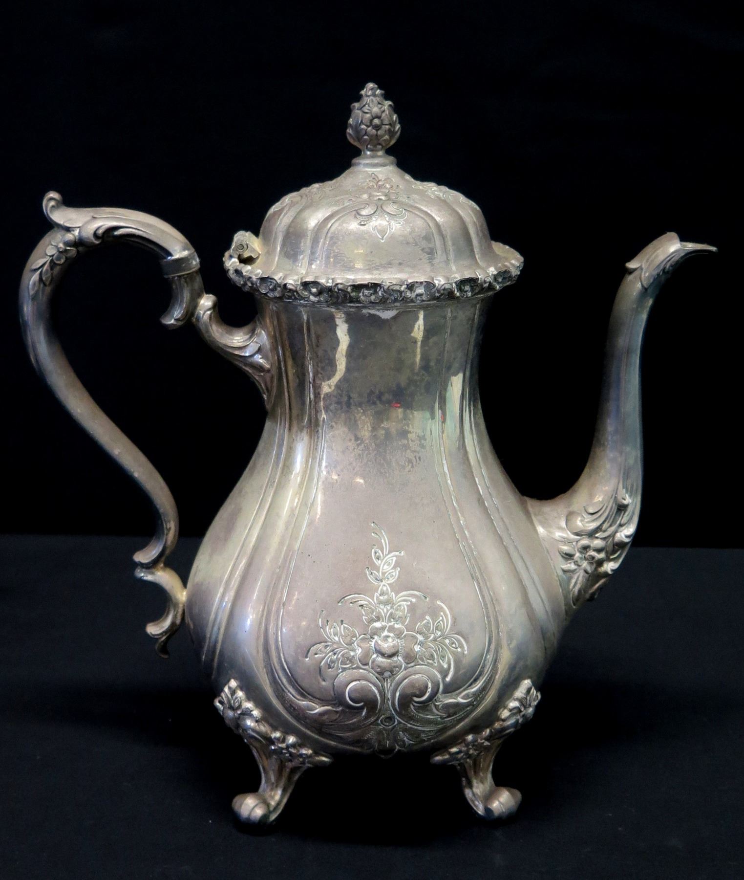 Serving Set: Creamer, Sugar Bowls,Teapot, Coffee Pot (Marked 'Webster Wilcox International Silver Co. Du Barry 7902, 7903')
