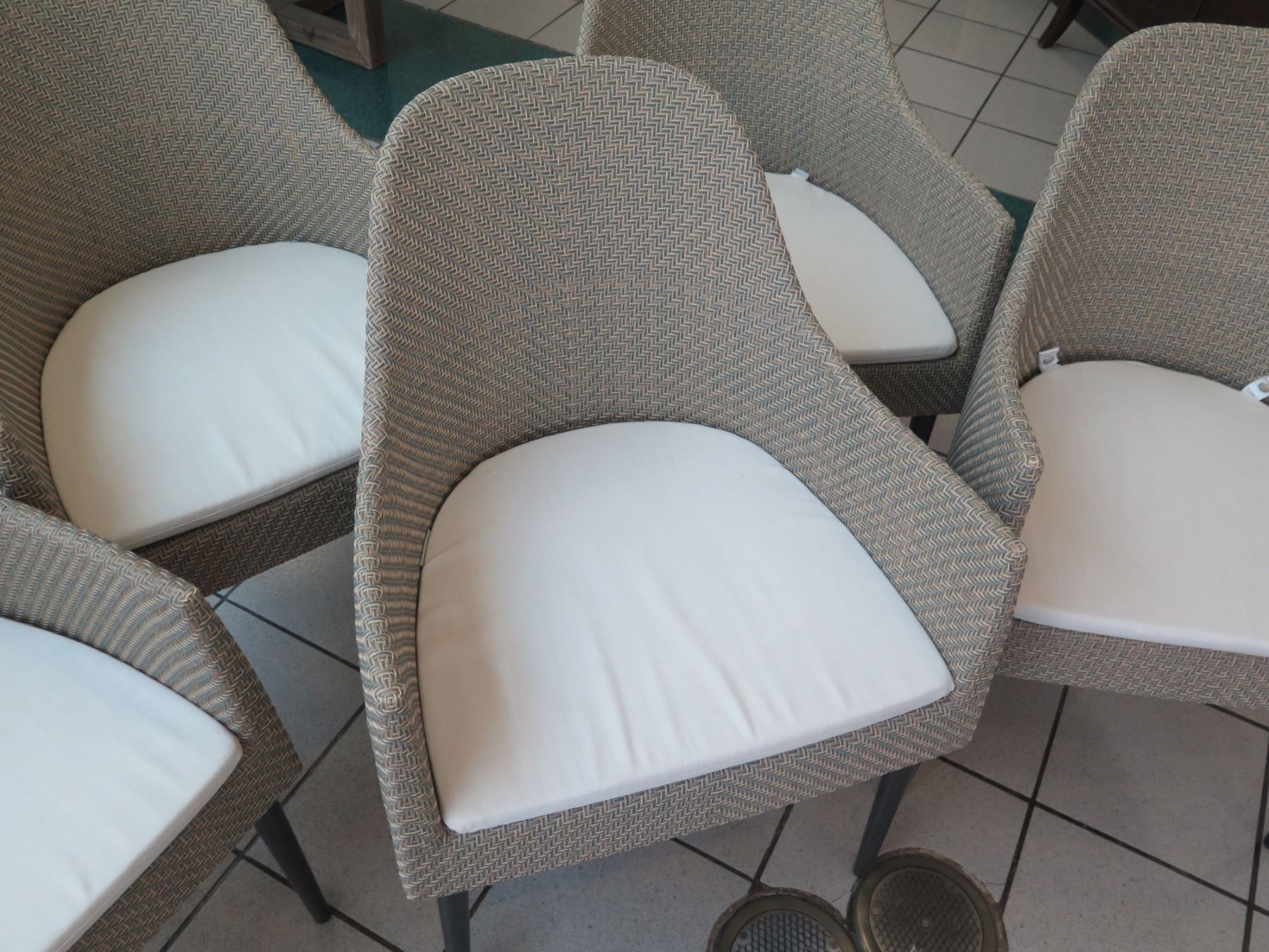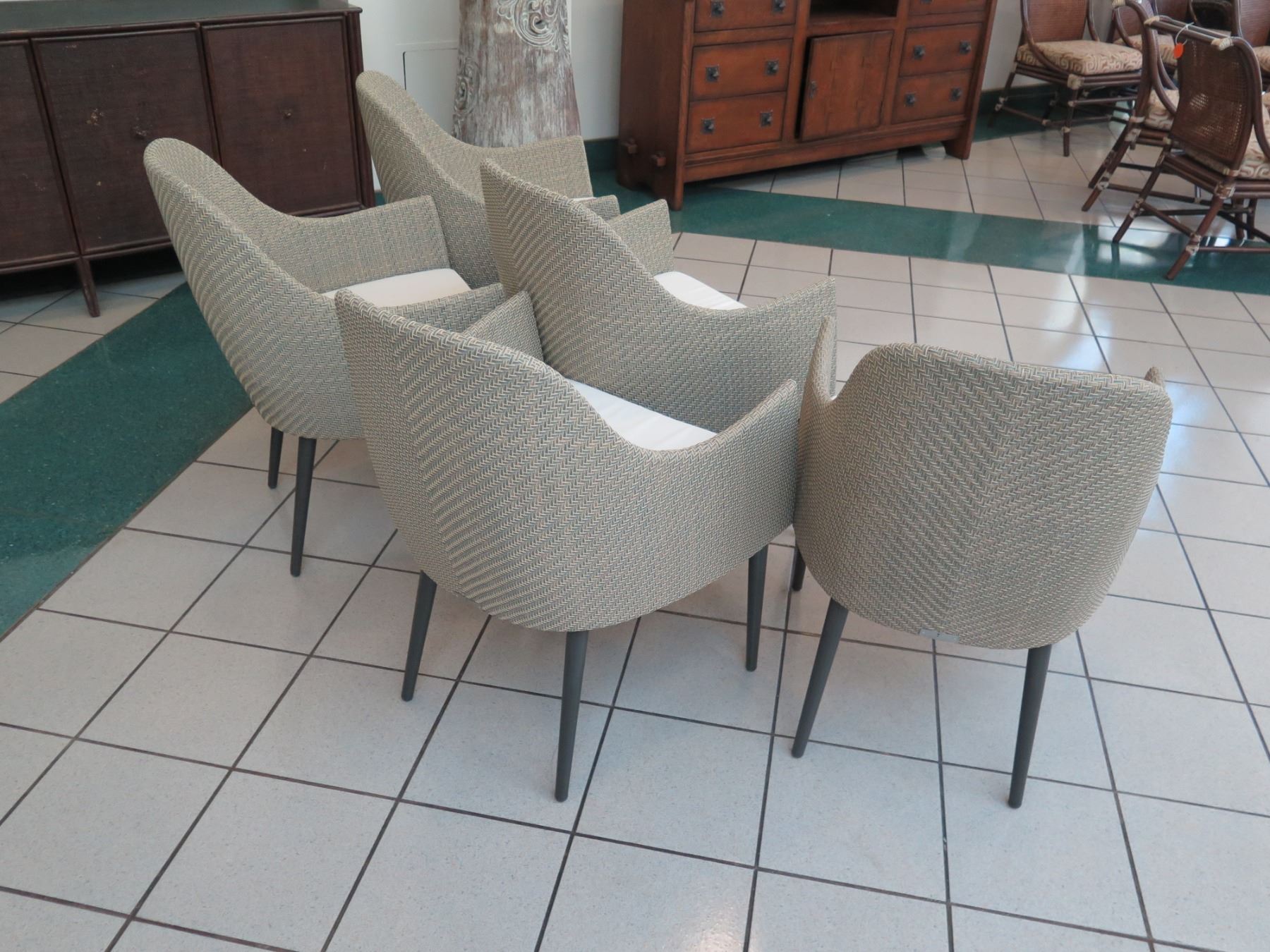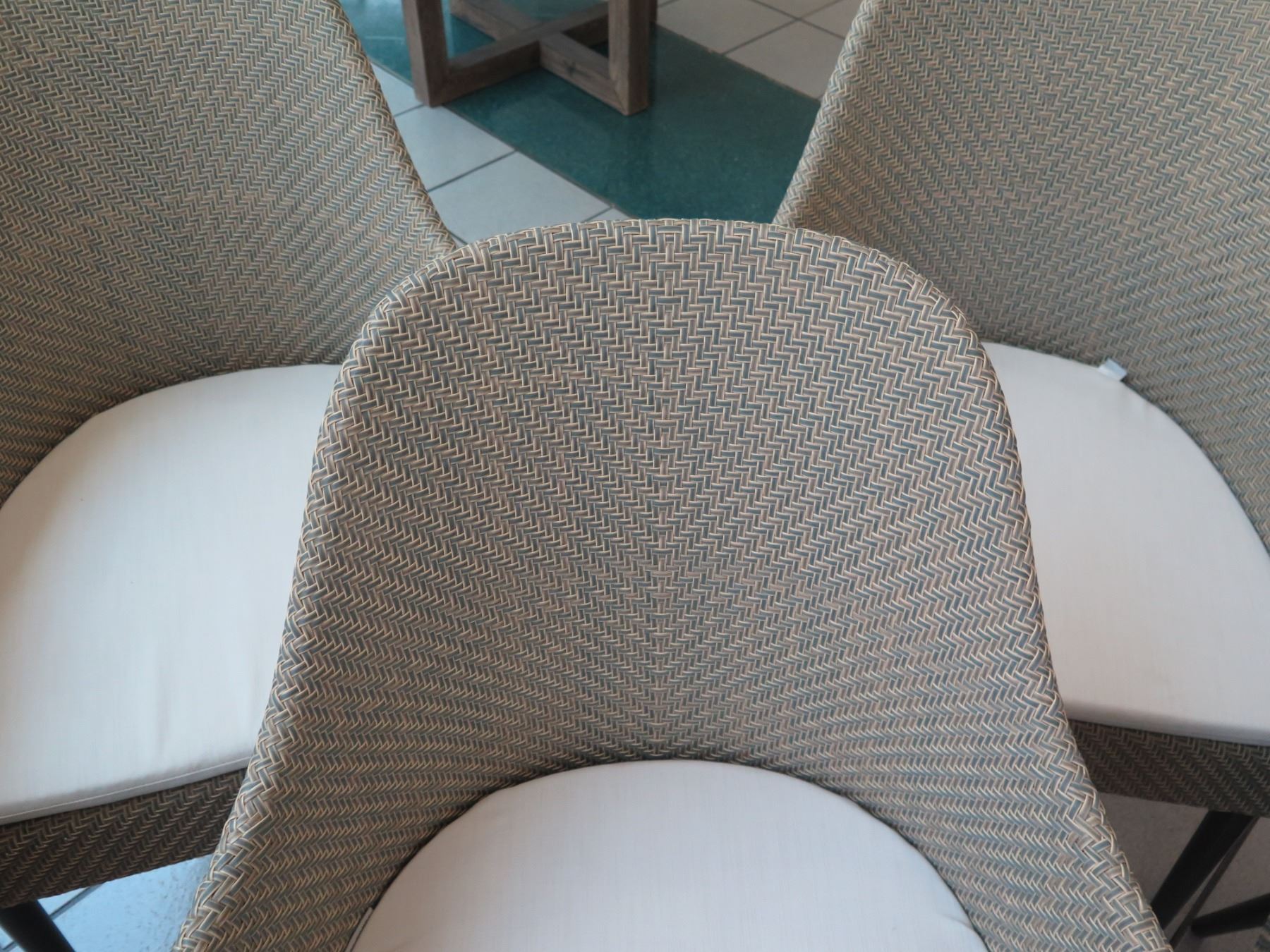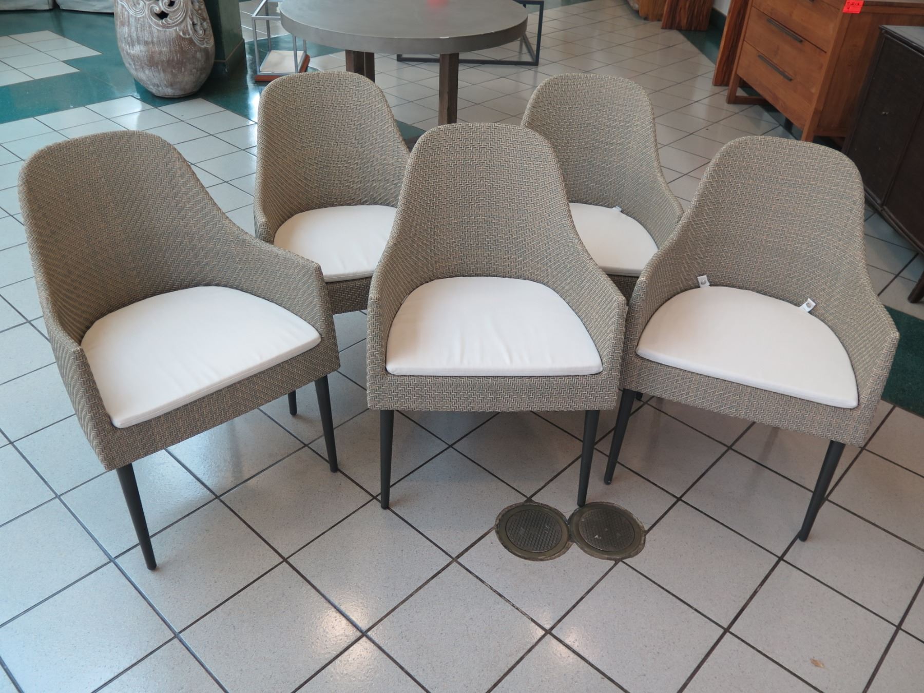 Set of 5 Modern Janus et Cie Woven Dining Chairs w/ Snap-In Cushions, 24" x 20" (34" Back Height)