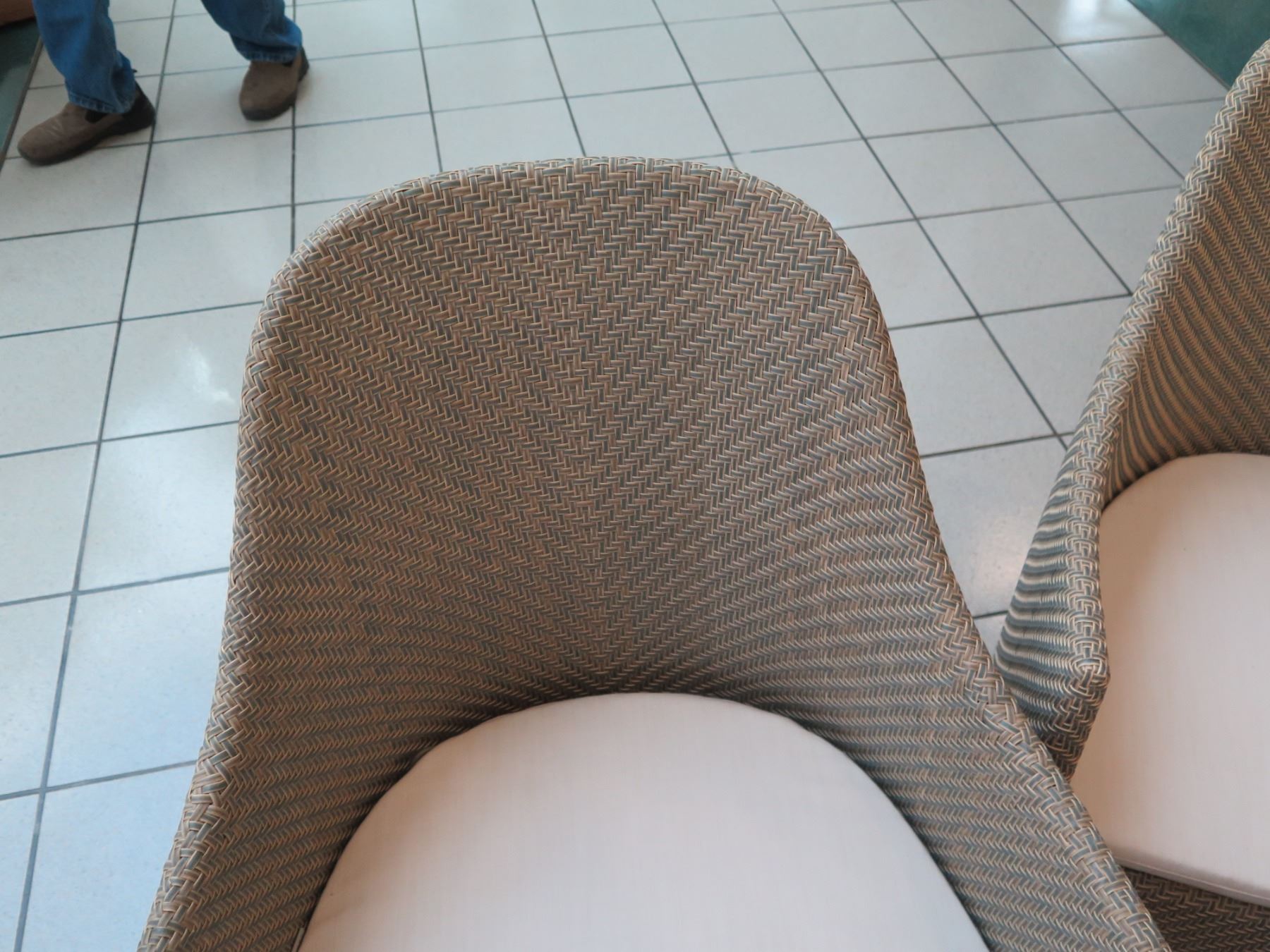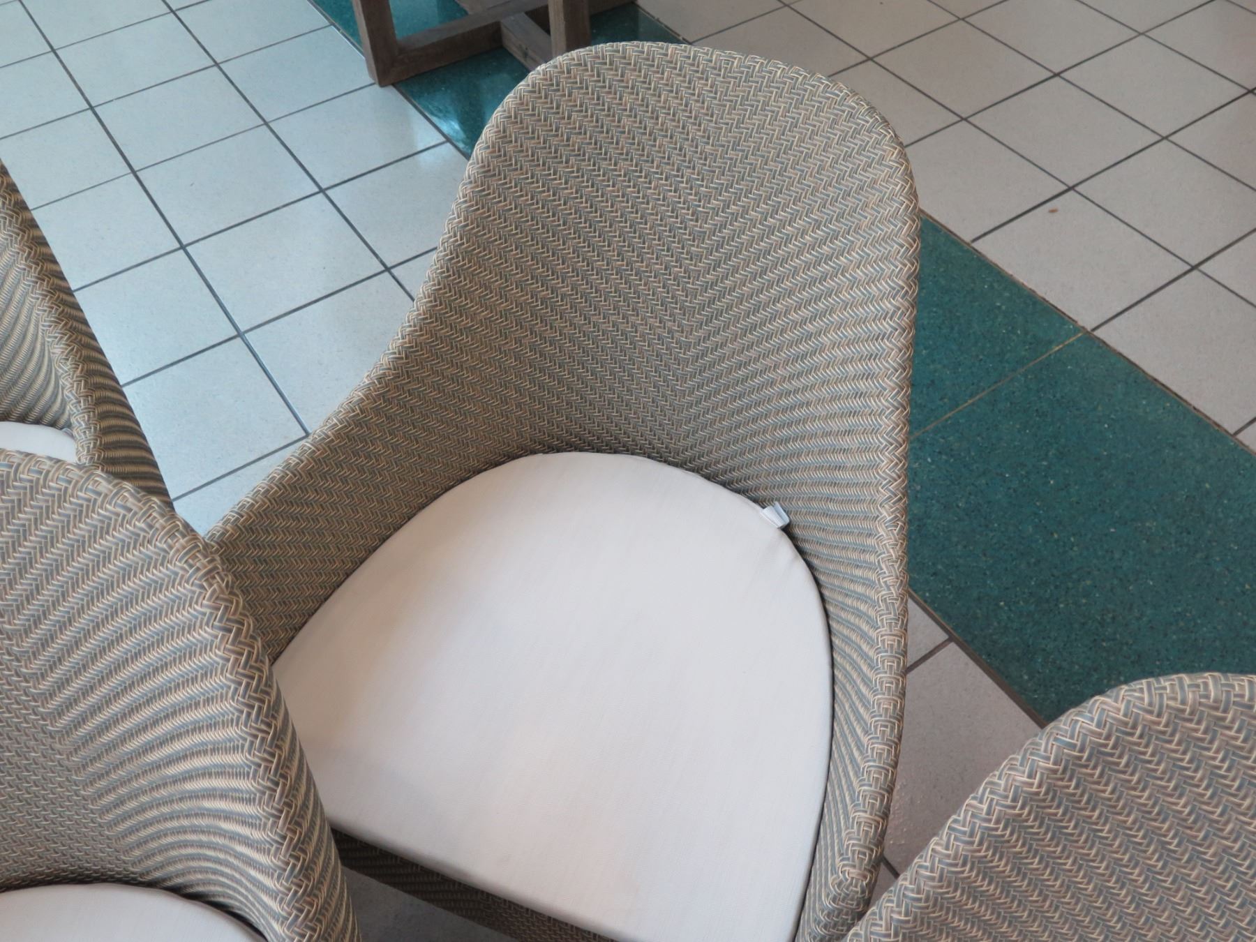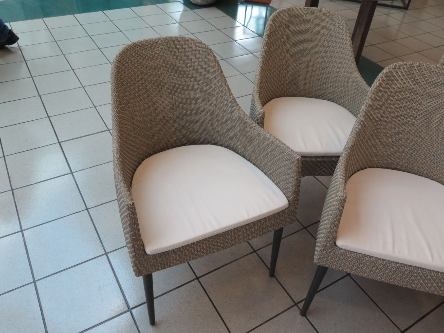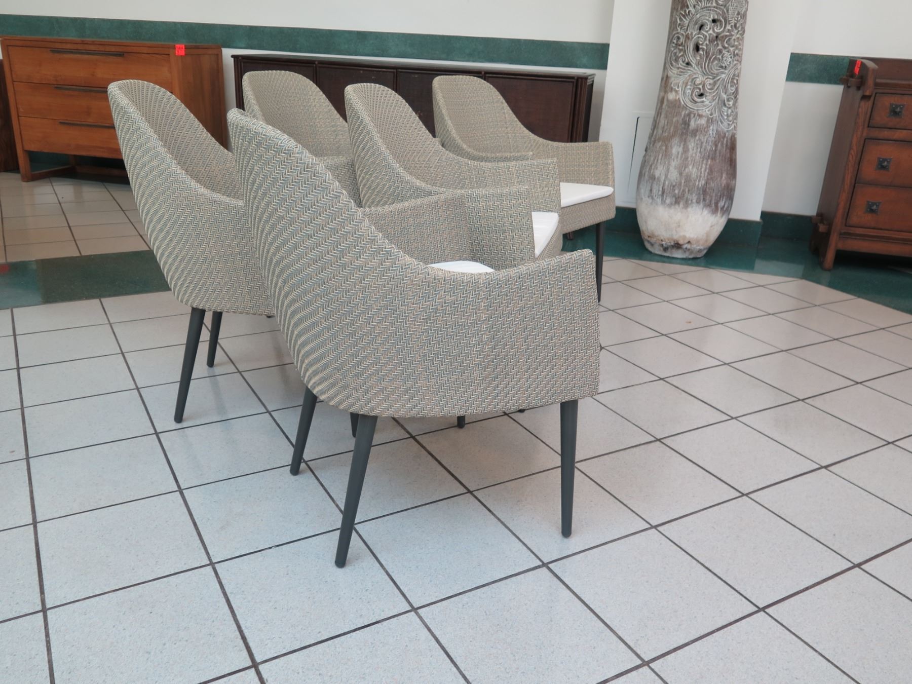 Set of 5 Modern Janus et Cie Woven Dining Chairs w/ Snap-In Cushions, 24" x 20" (34" Back Height)
