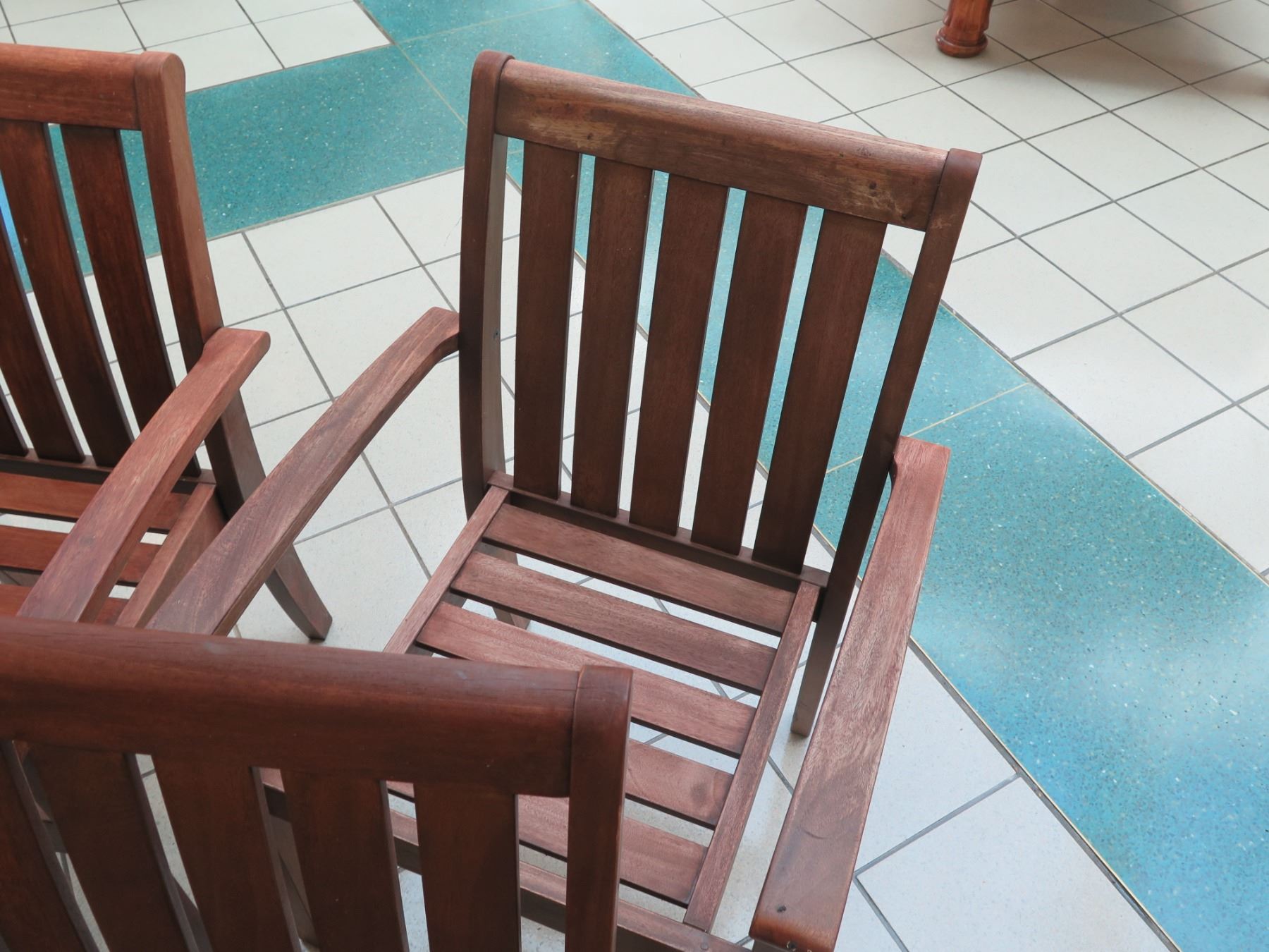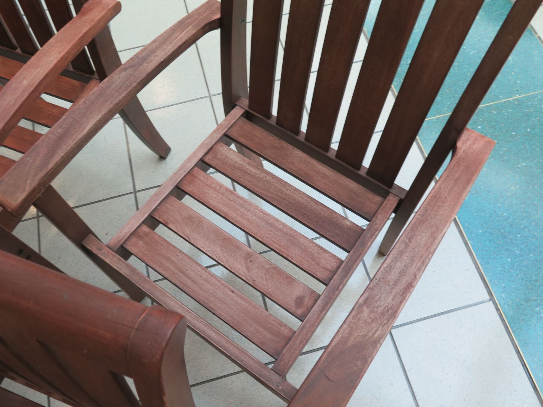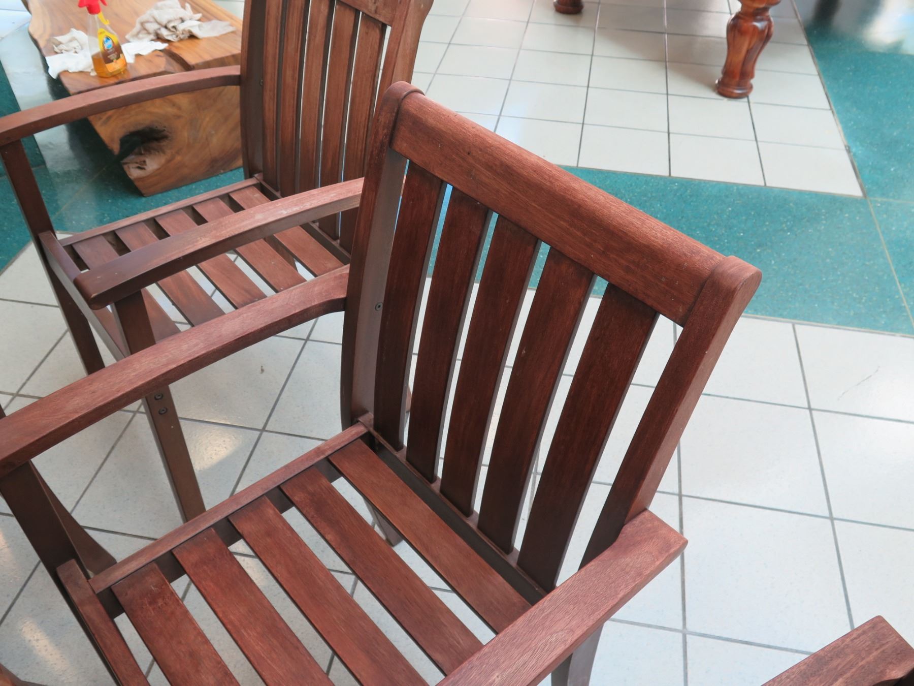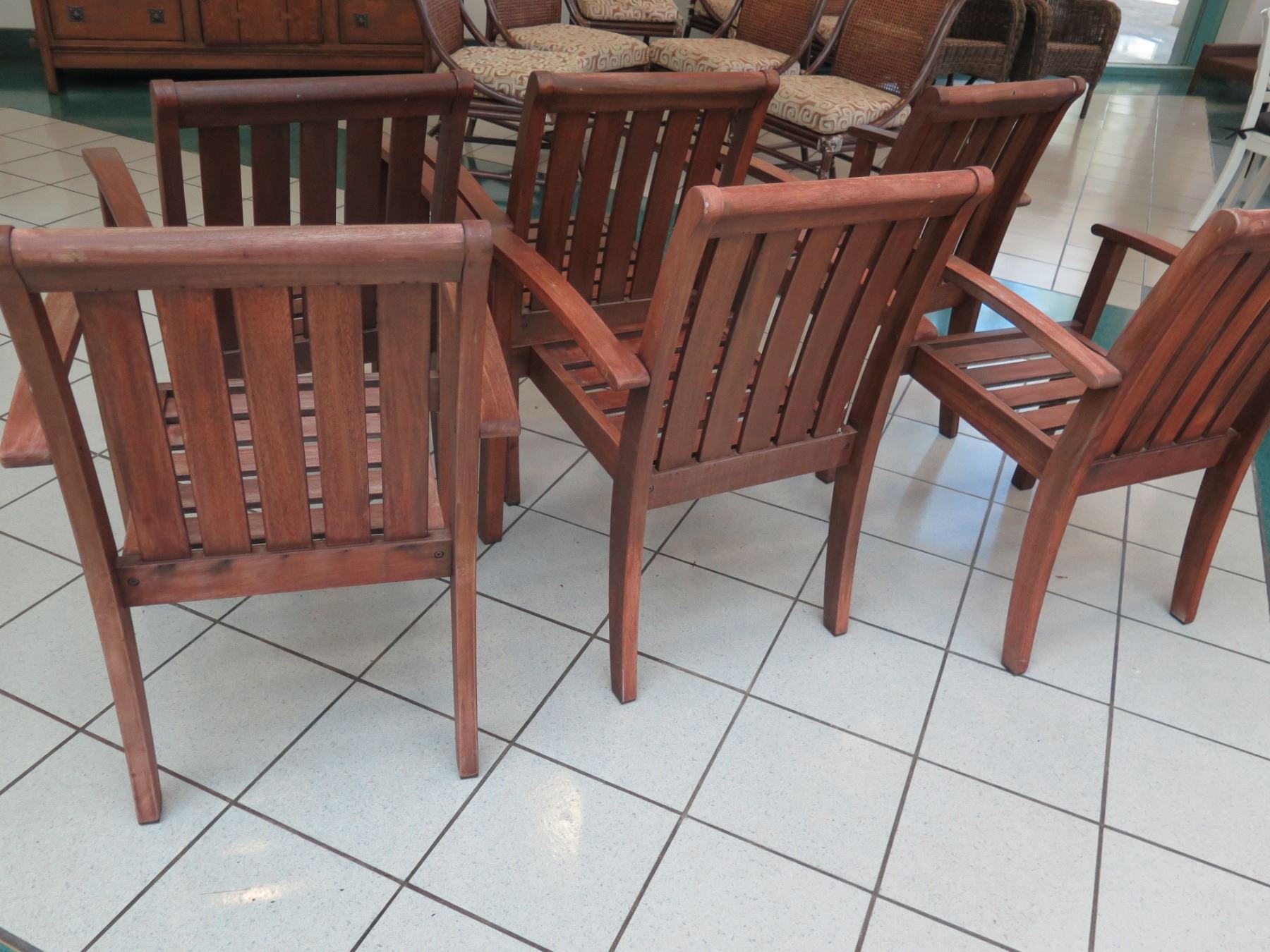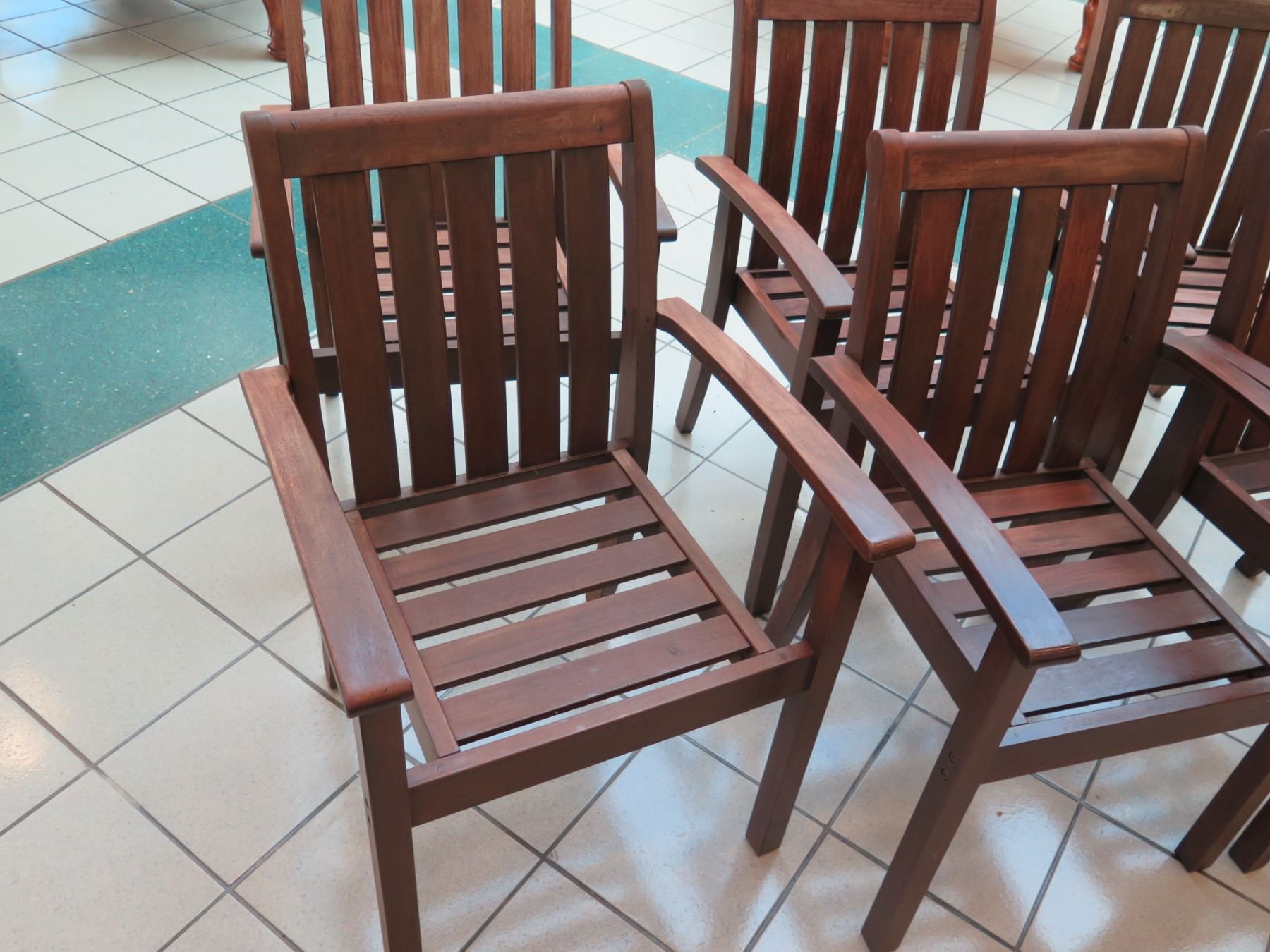 Set of 6 Pottery Barn Slatted Wooden Chairs 24" x 18" (36" Back Height)