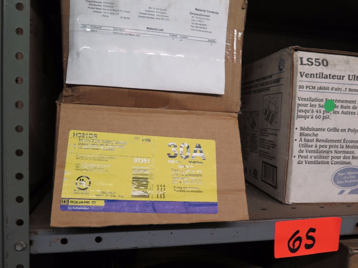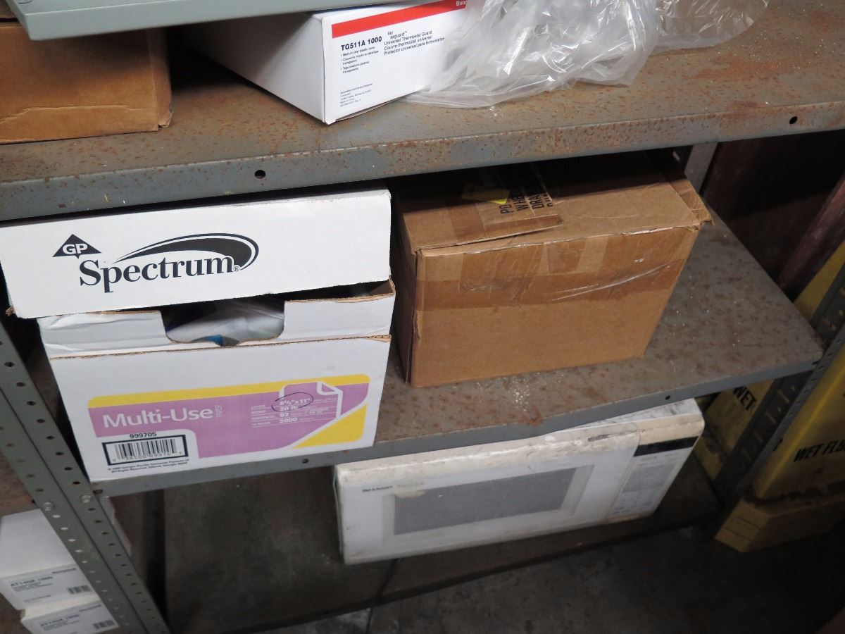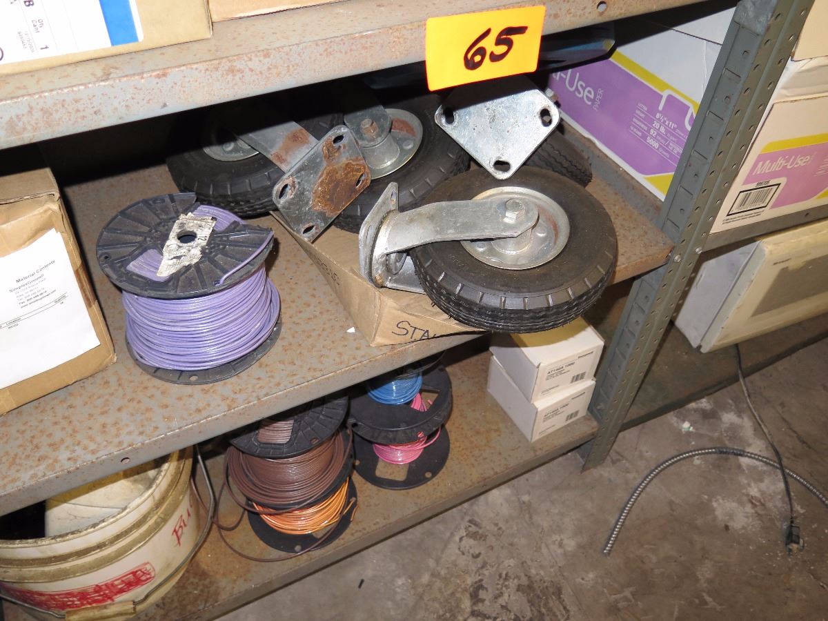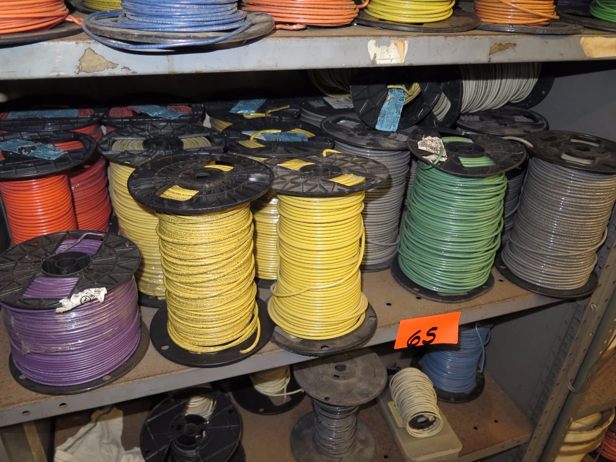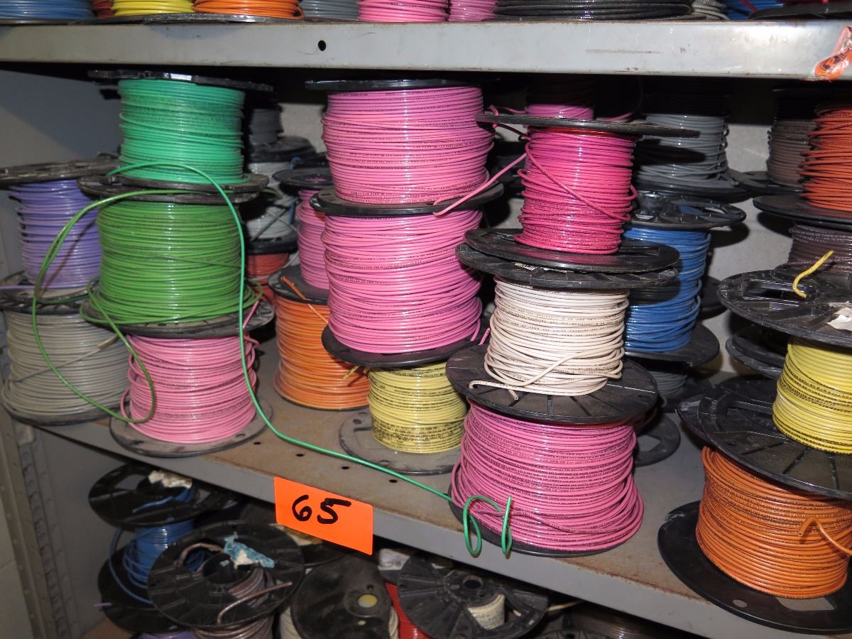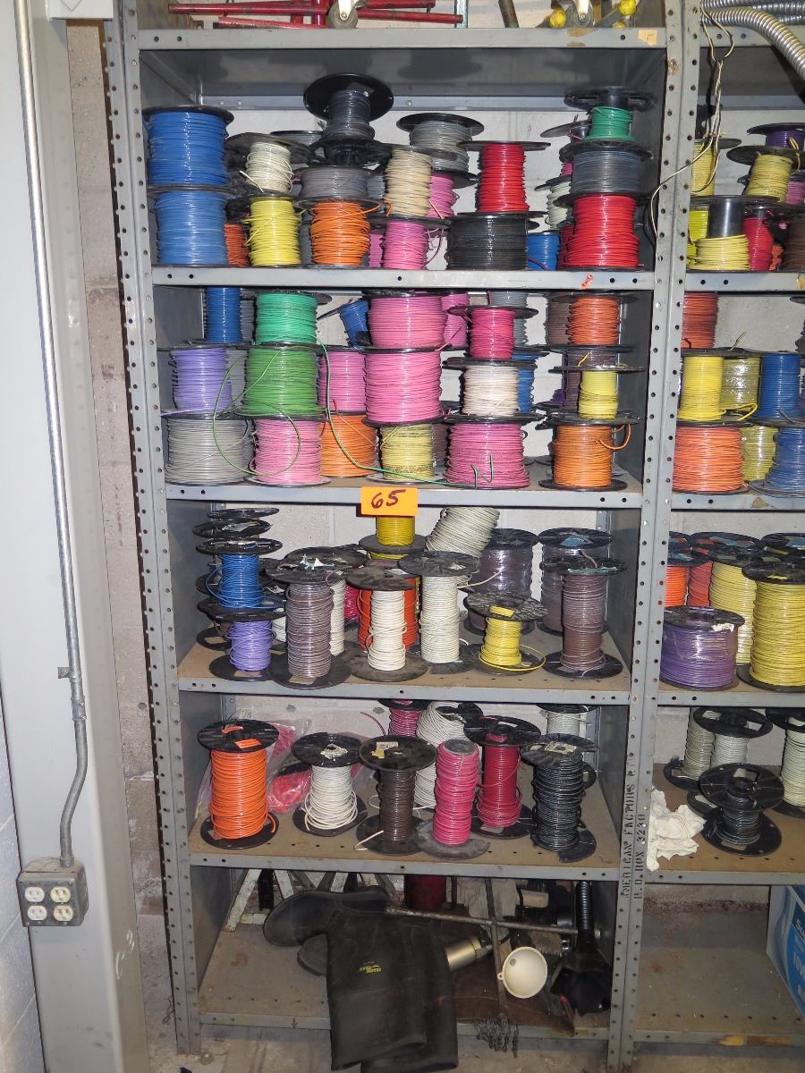 Shelves with Misc. Insulated Wiring, Safety Switches, Flex Tubing, Motor Oil, etc.