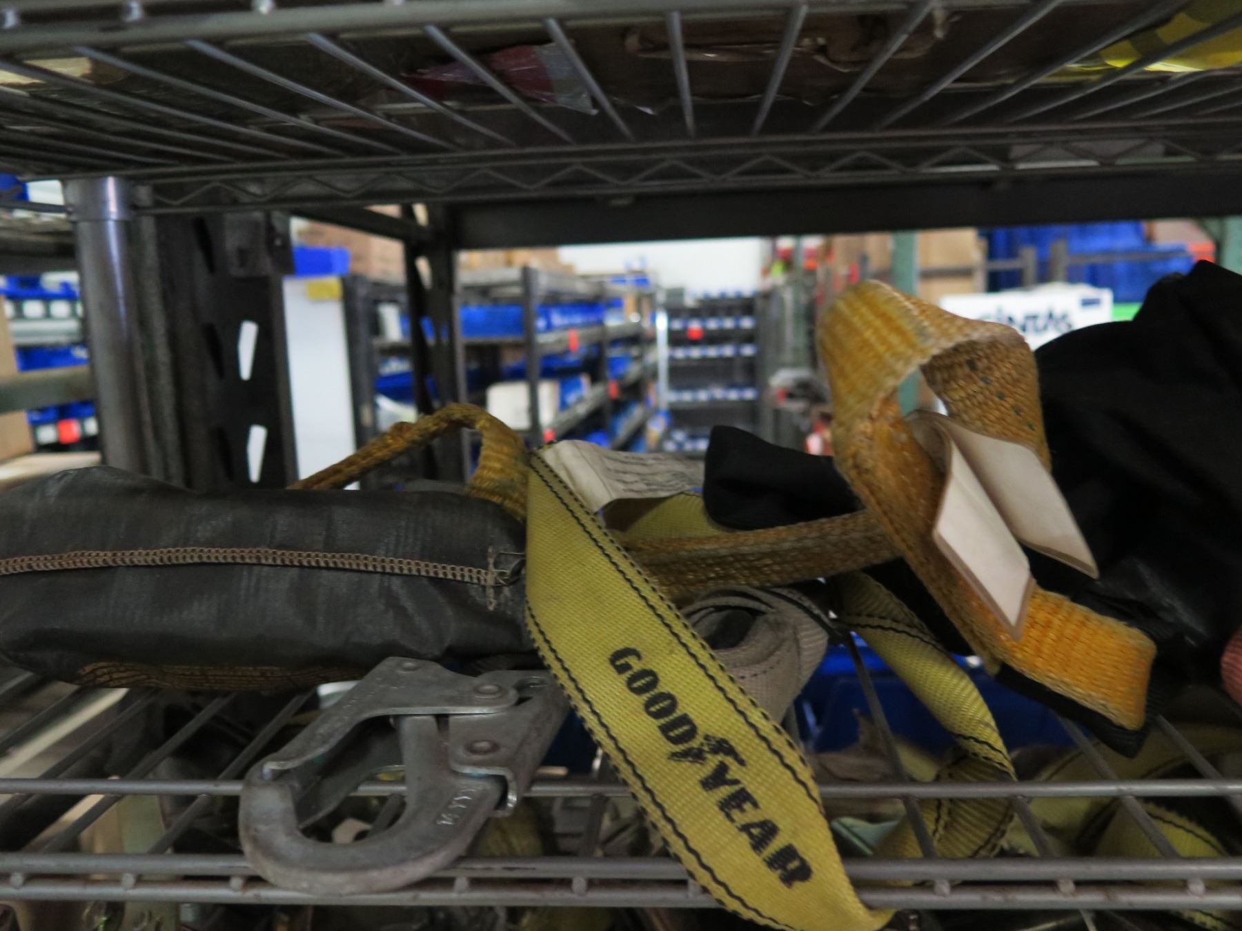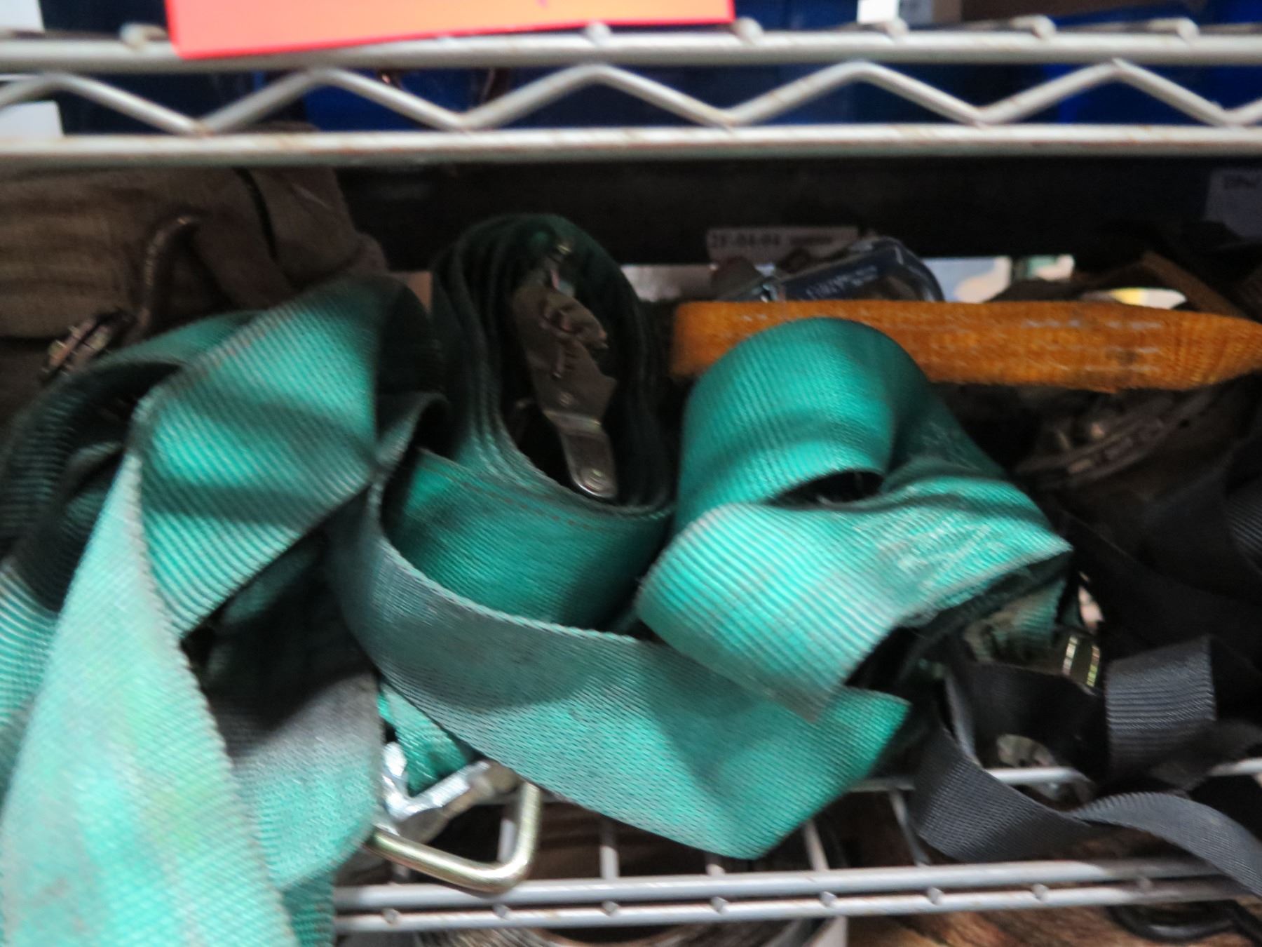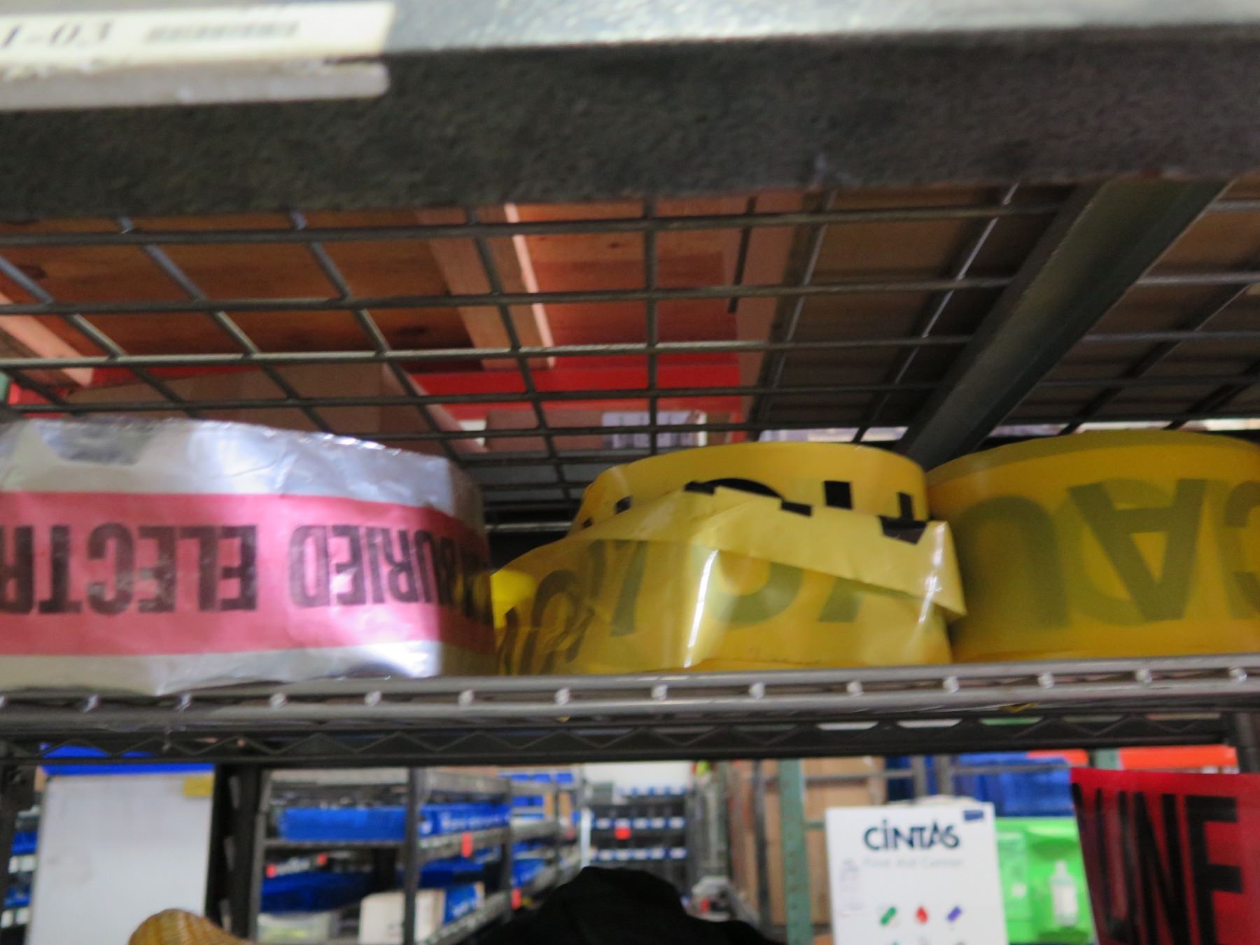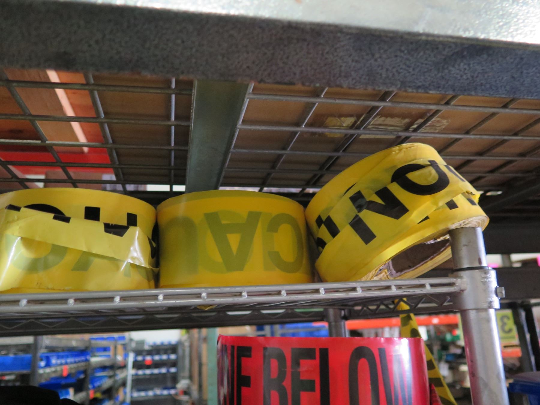 Shelving Unit and Contents: Ratchet Straps, Caution Tape, etc