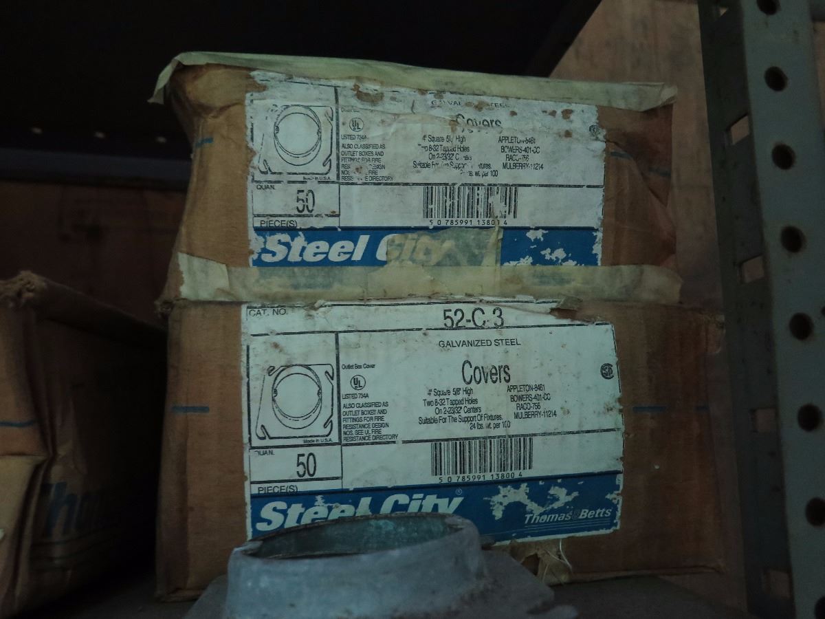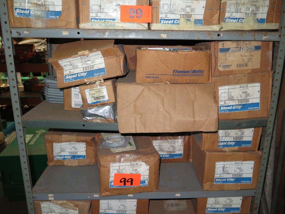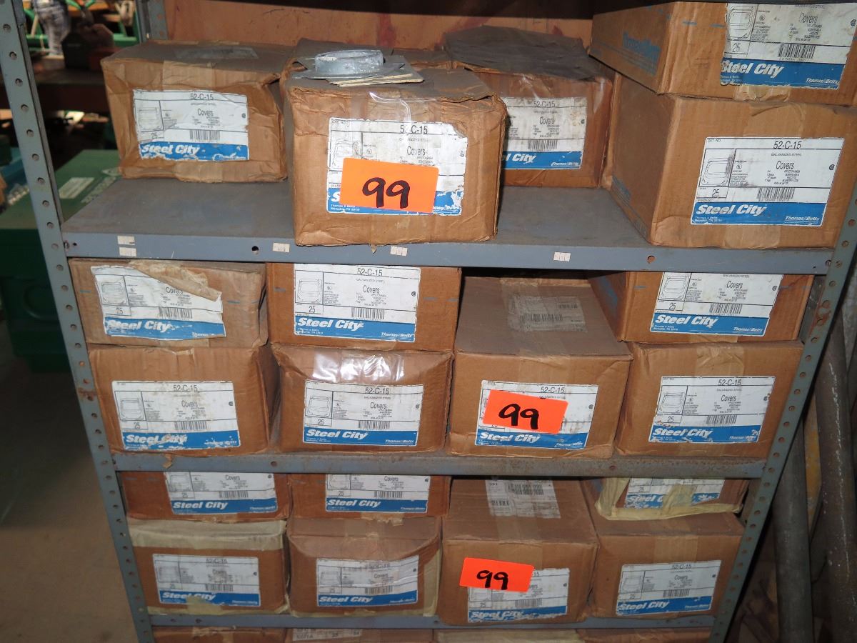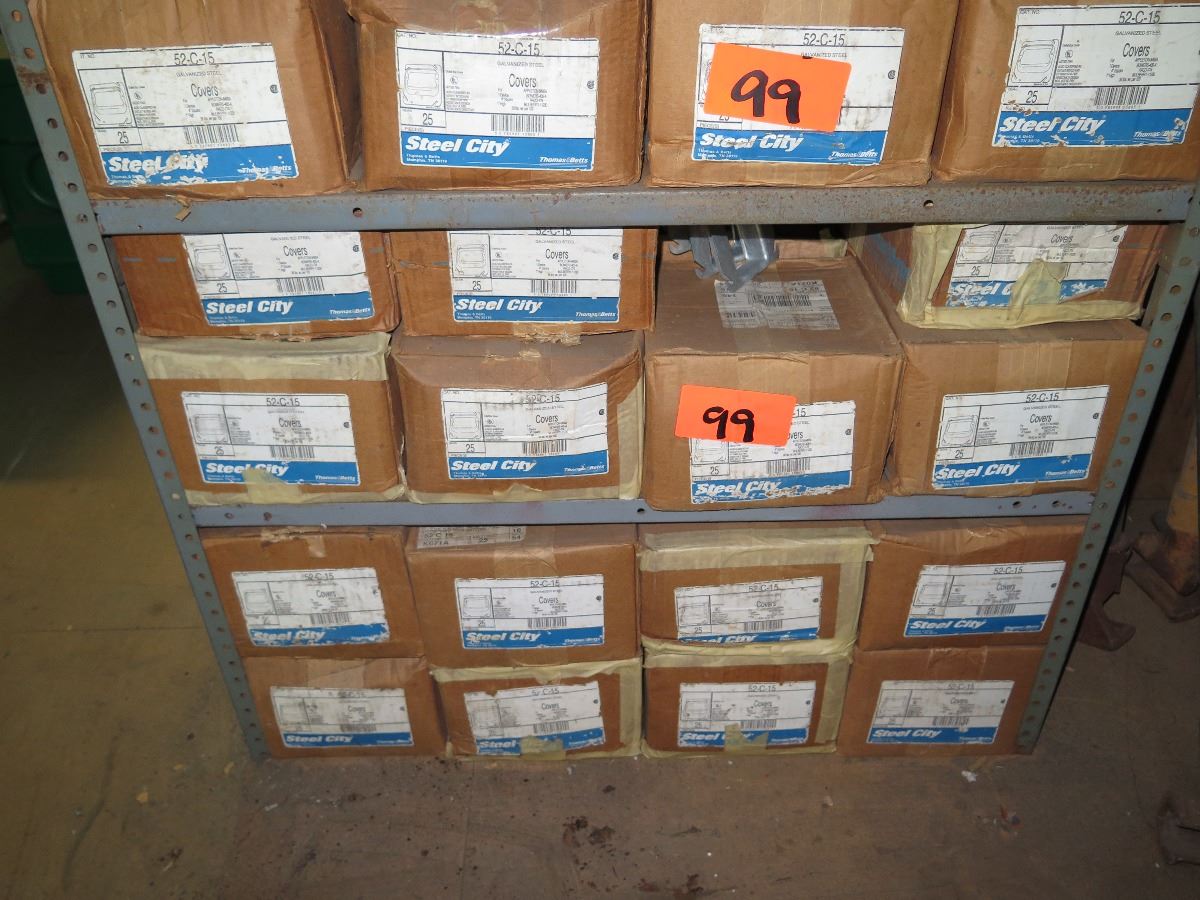 Shelving w/Misc. Boxes of Steel City 52-C-15 and 52-C3 Device Covers