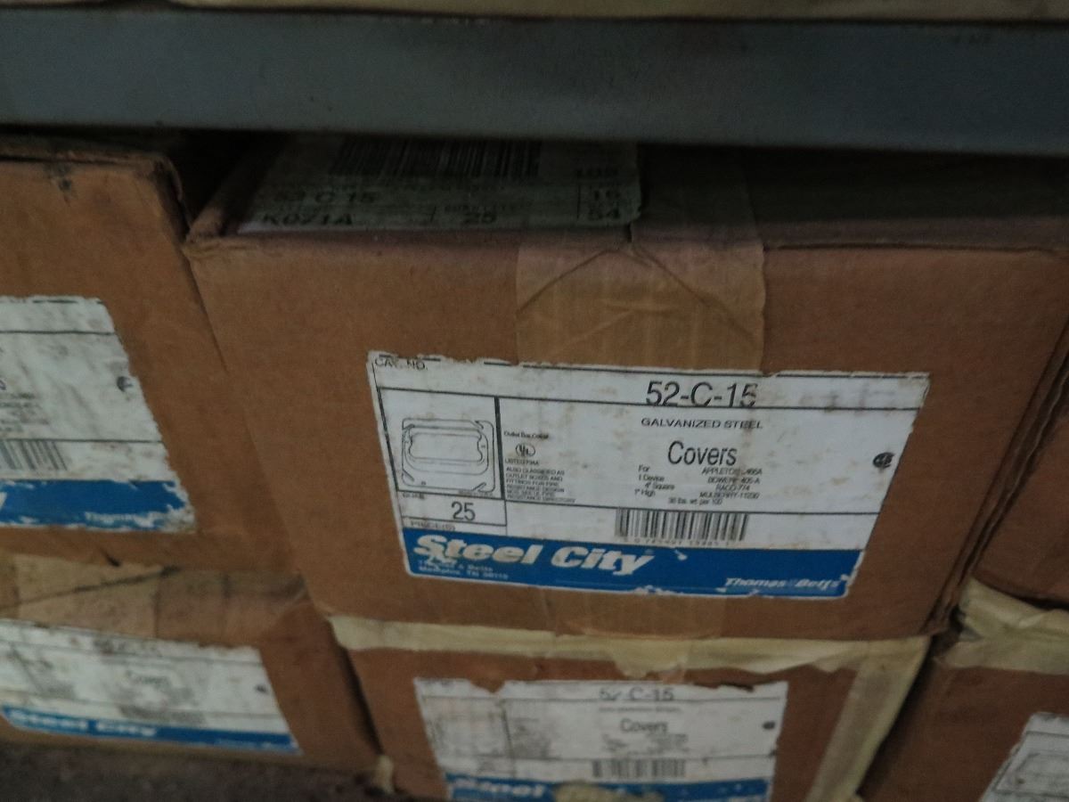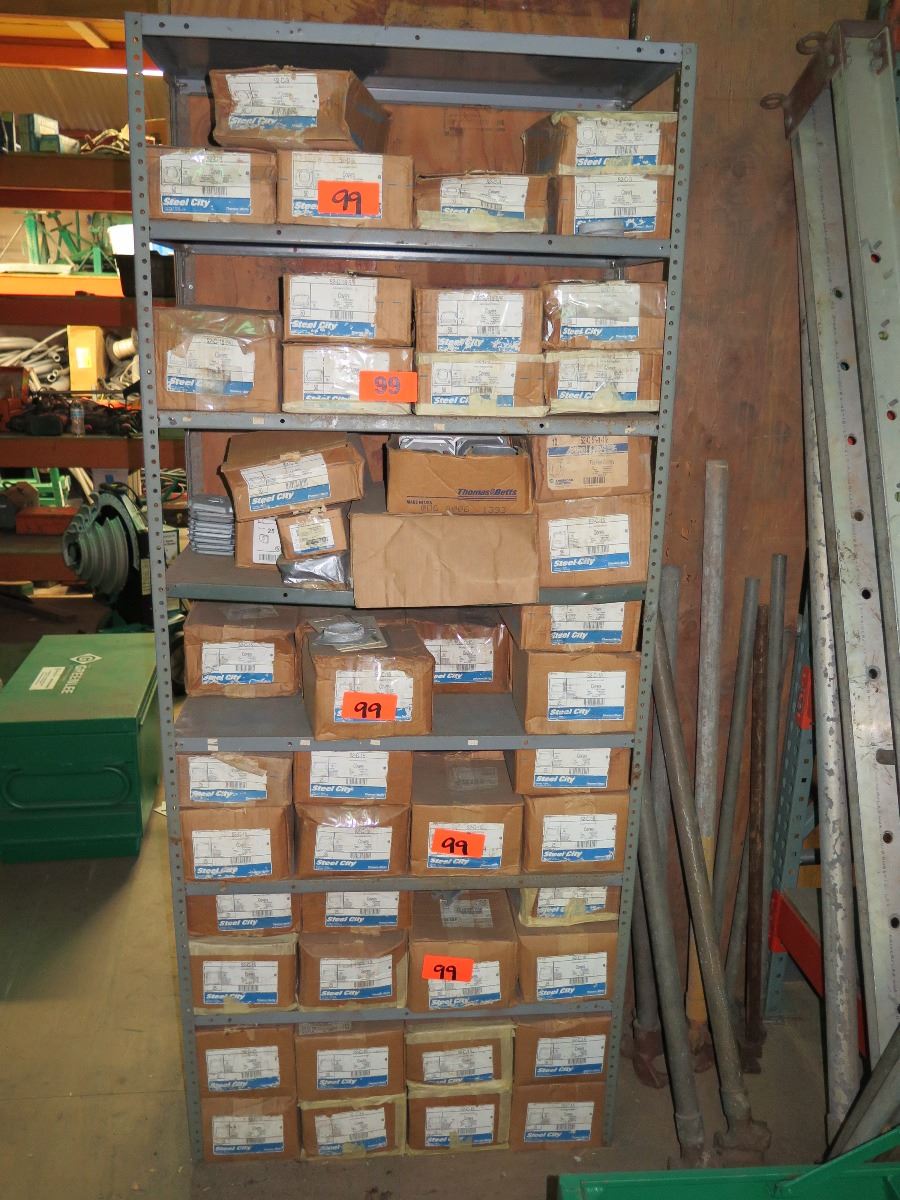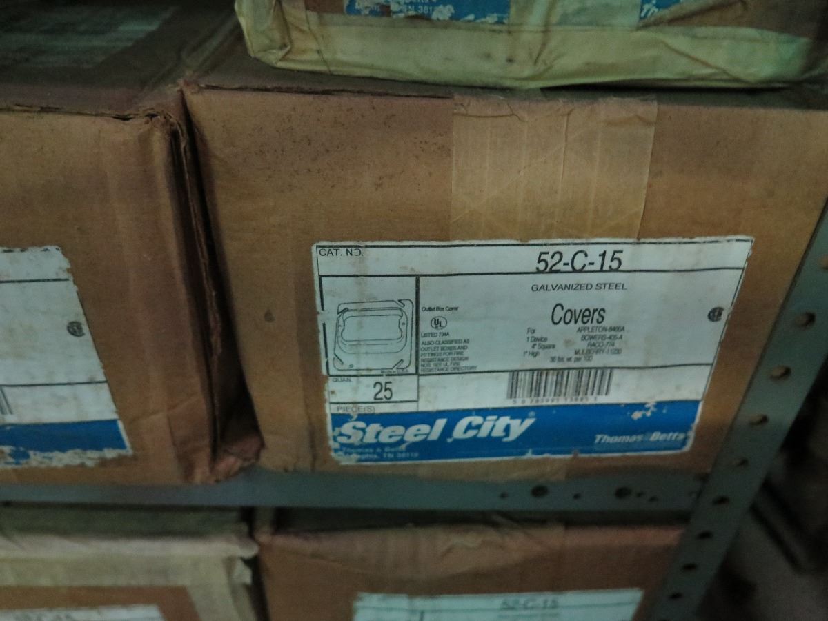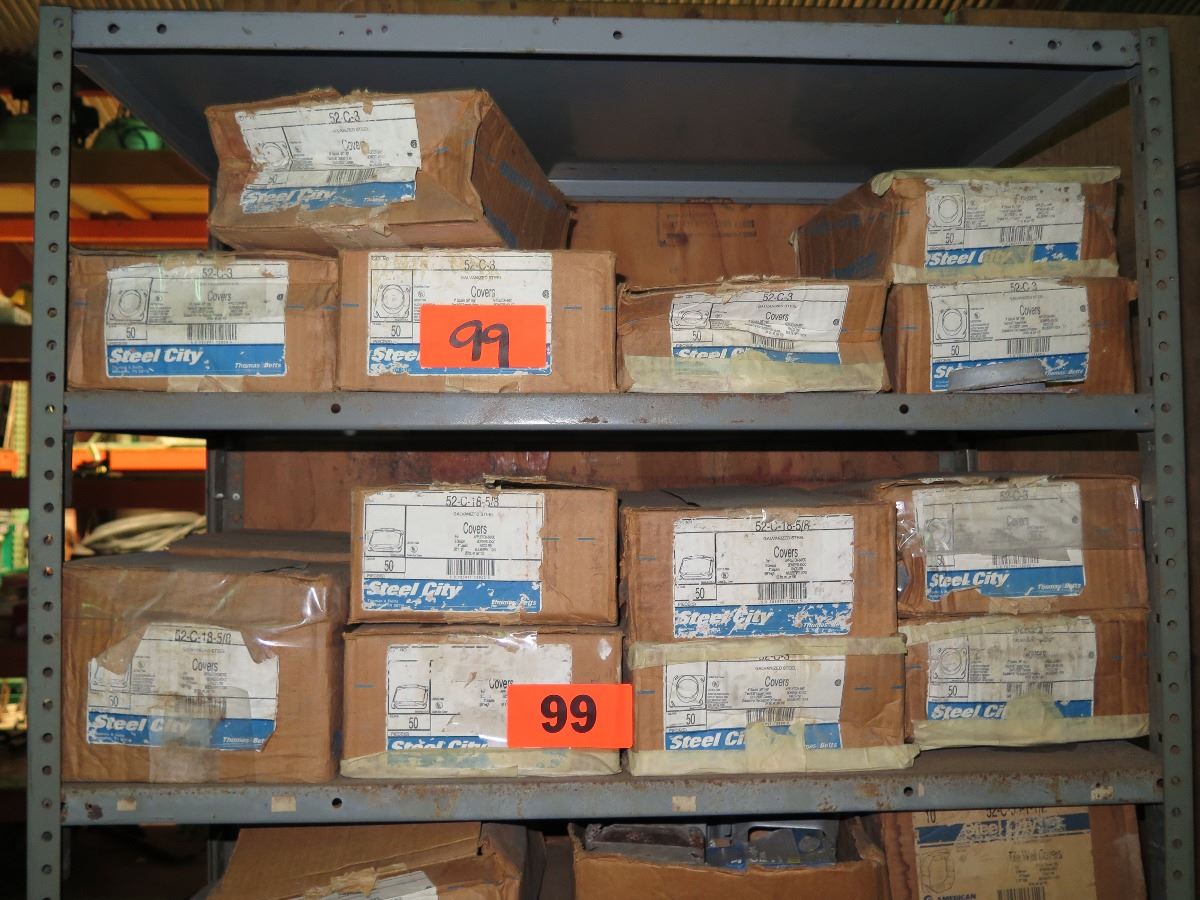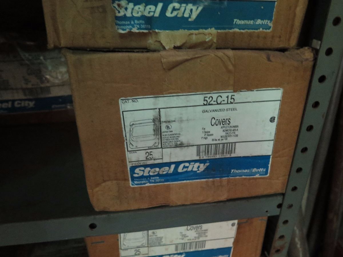 Shelving w/Misc. Boxes of Steel City 52-C-15 and 52-C3 Device Covers