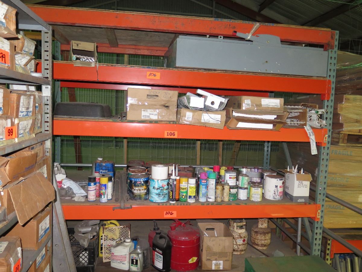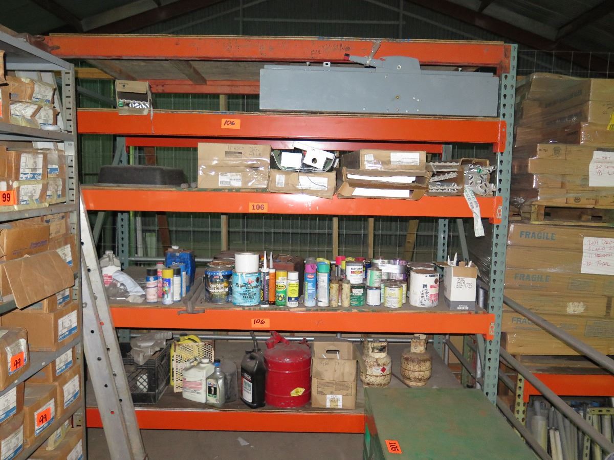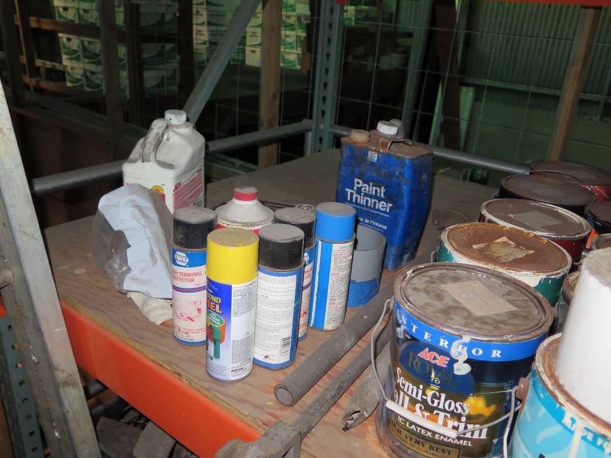Shelving w/Misc. Items (Paint, Anti- Rust, Sealants)