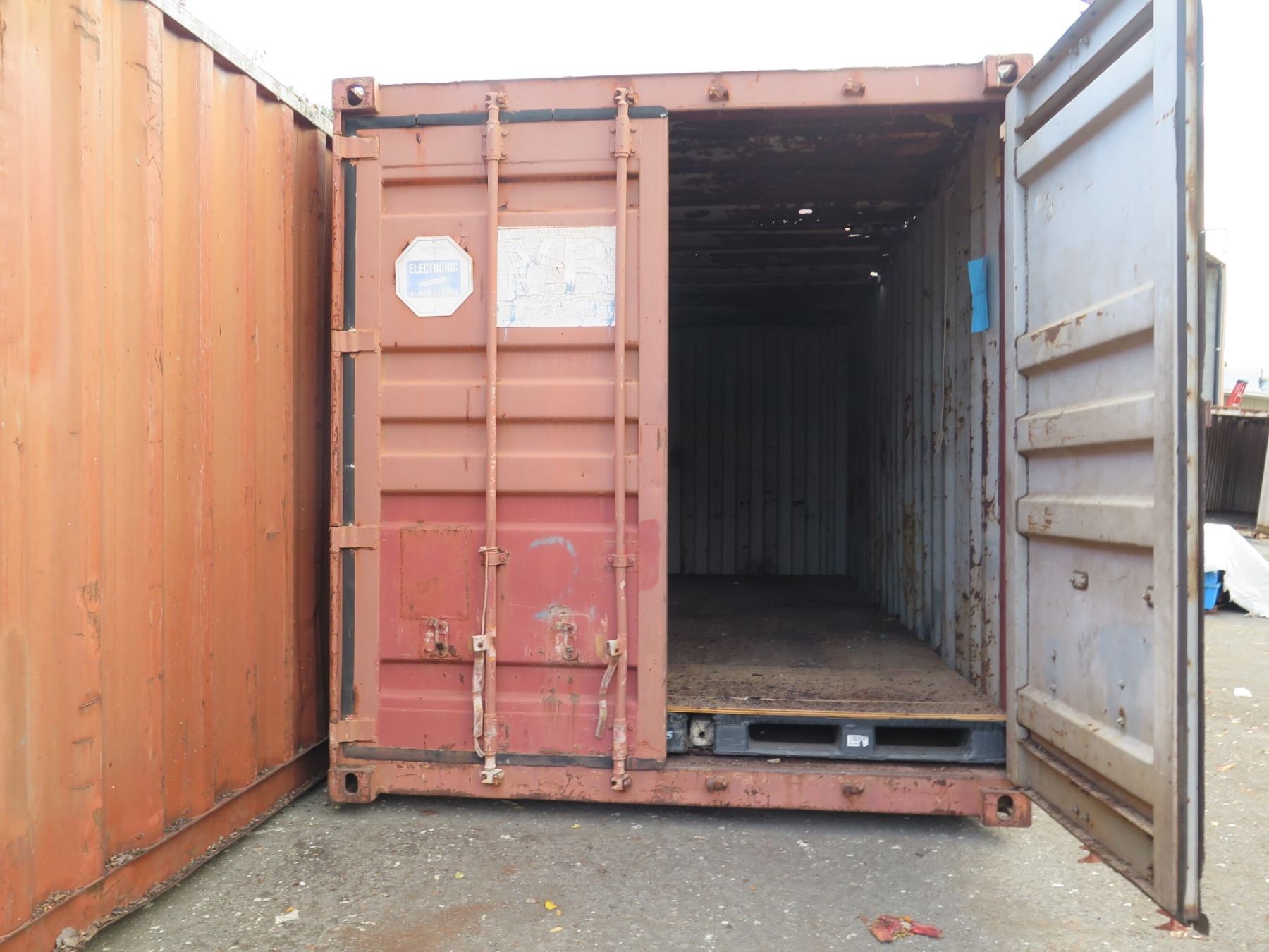 Shipping Container 20-Foot. All containers, including this one, would need to be picked up Monday or Tuesday (Oct. 12 or Oct. 13).