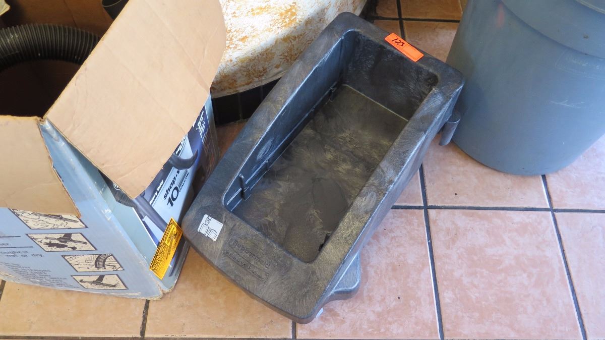Shop Vac with Attachments, Rubbermaid Utility Bin Mobile Base (w/Wheels), Round Plastic Utlity Bin