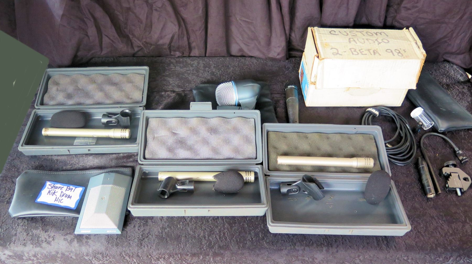 Shure Drum Mic Kit: B52 kik, 1-B91 Kik, 4 – Beta 98 for Toms, 3 – SM81 cond. and 1 SM57.