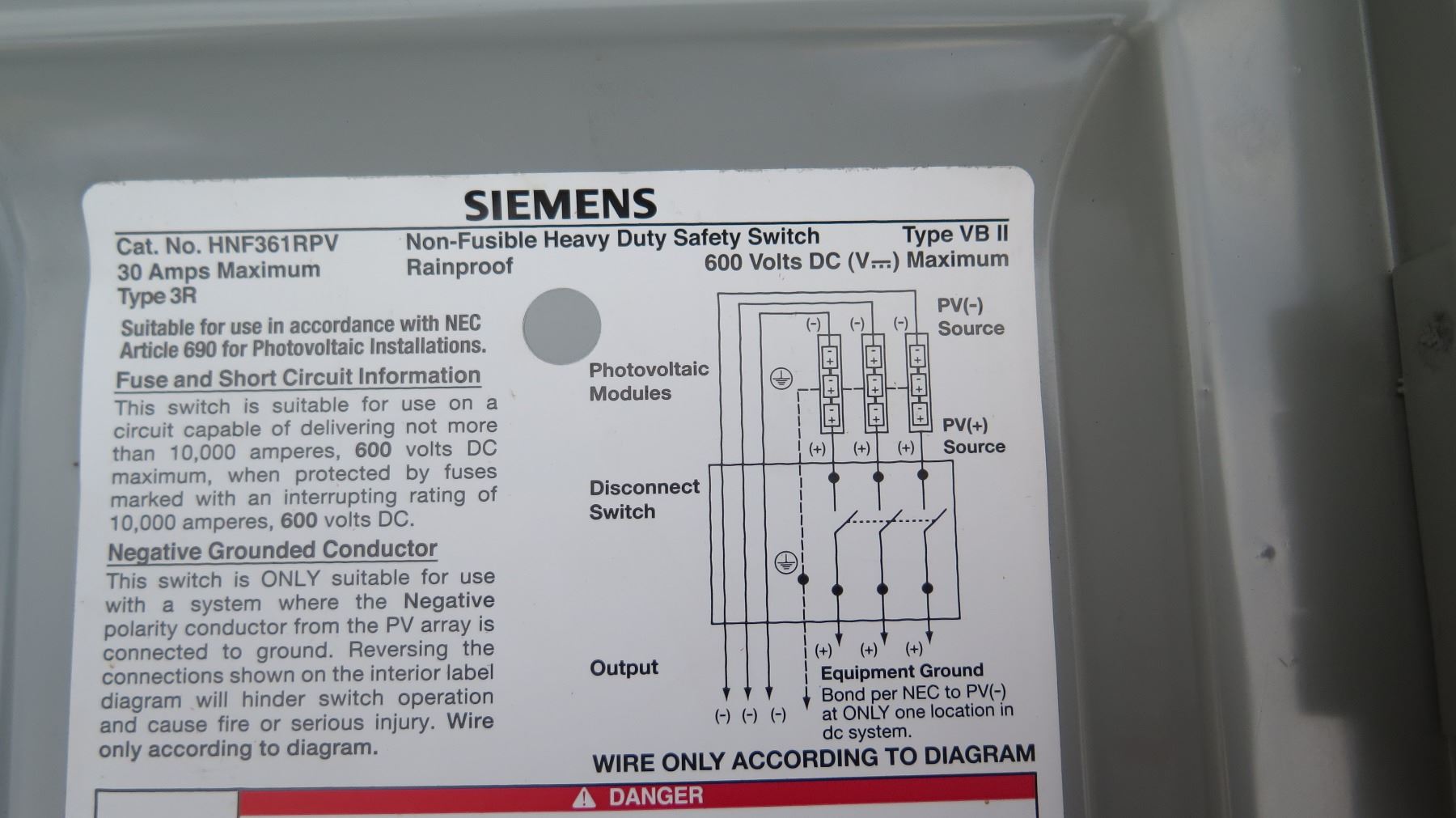 Siemens Photovoltaic PV Disconnect 30A 600VDC 2PC