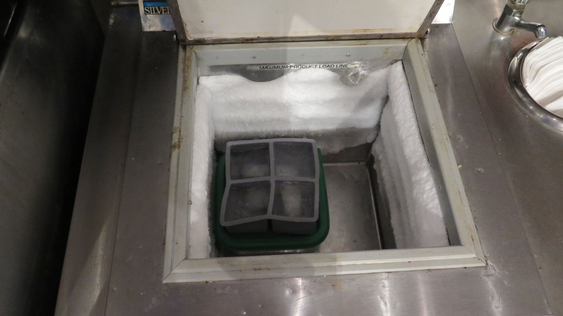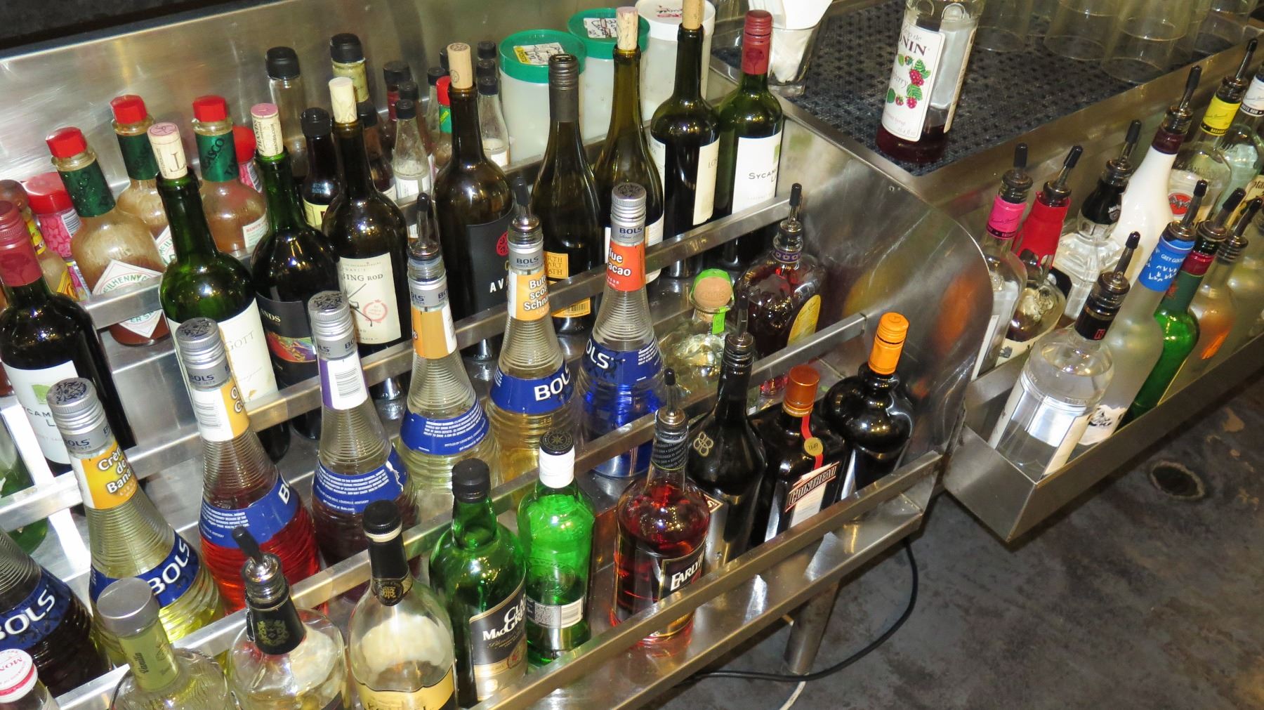 Silver King Chest Freezer, National Bar Systems Multi-Tiered Bottle Stands