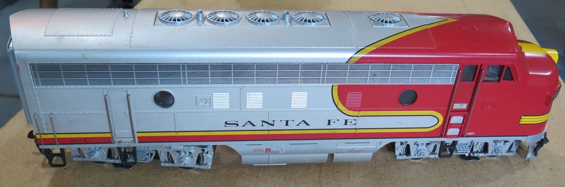 Silver & Red Locomotive Electric Train Car, Santa Fe Railroad