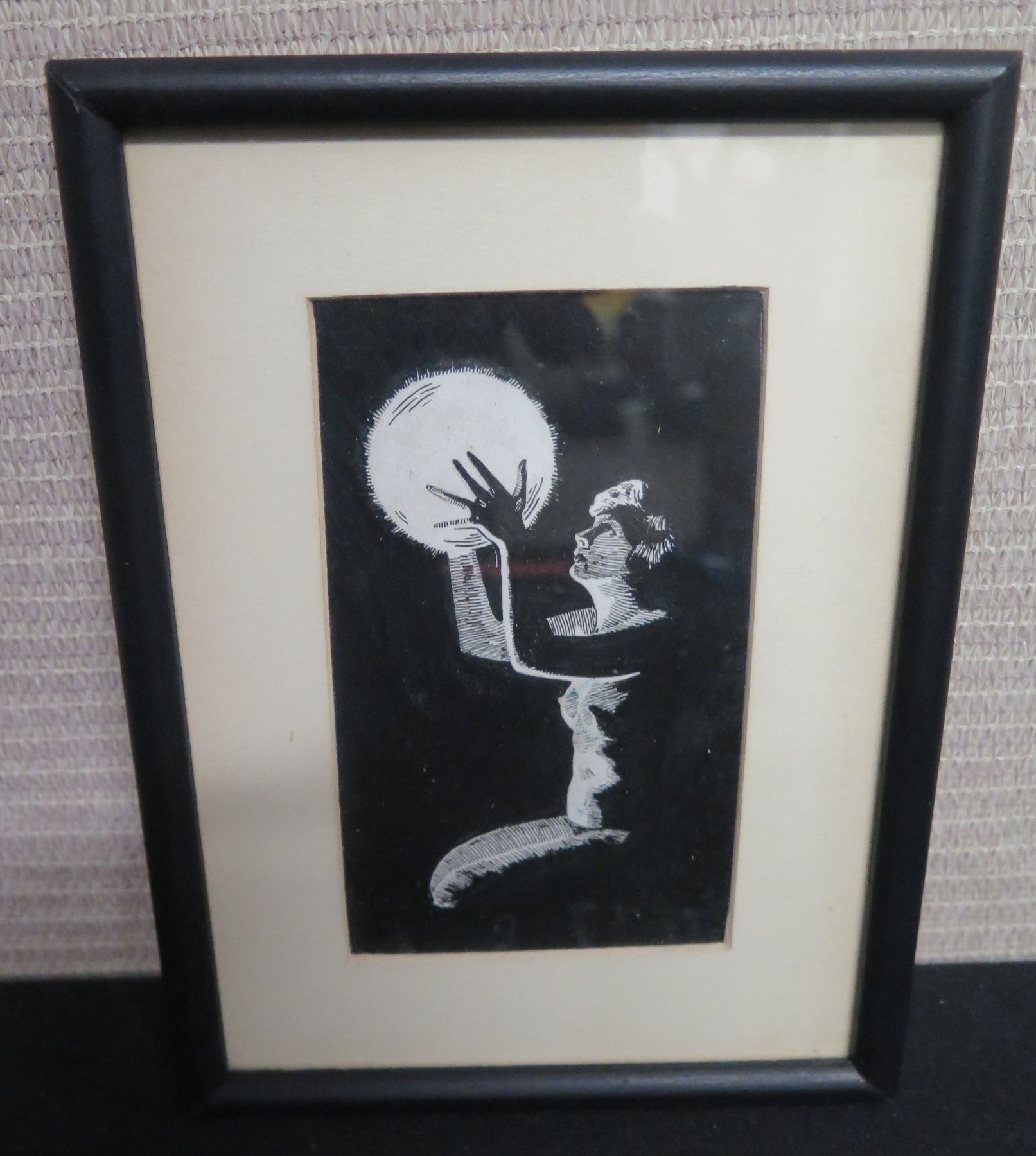 Sketch of Woman Holding Moon, Framed & Matted 6"x8"