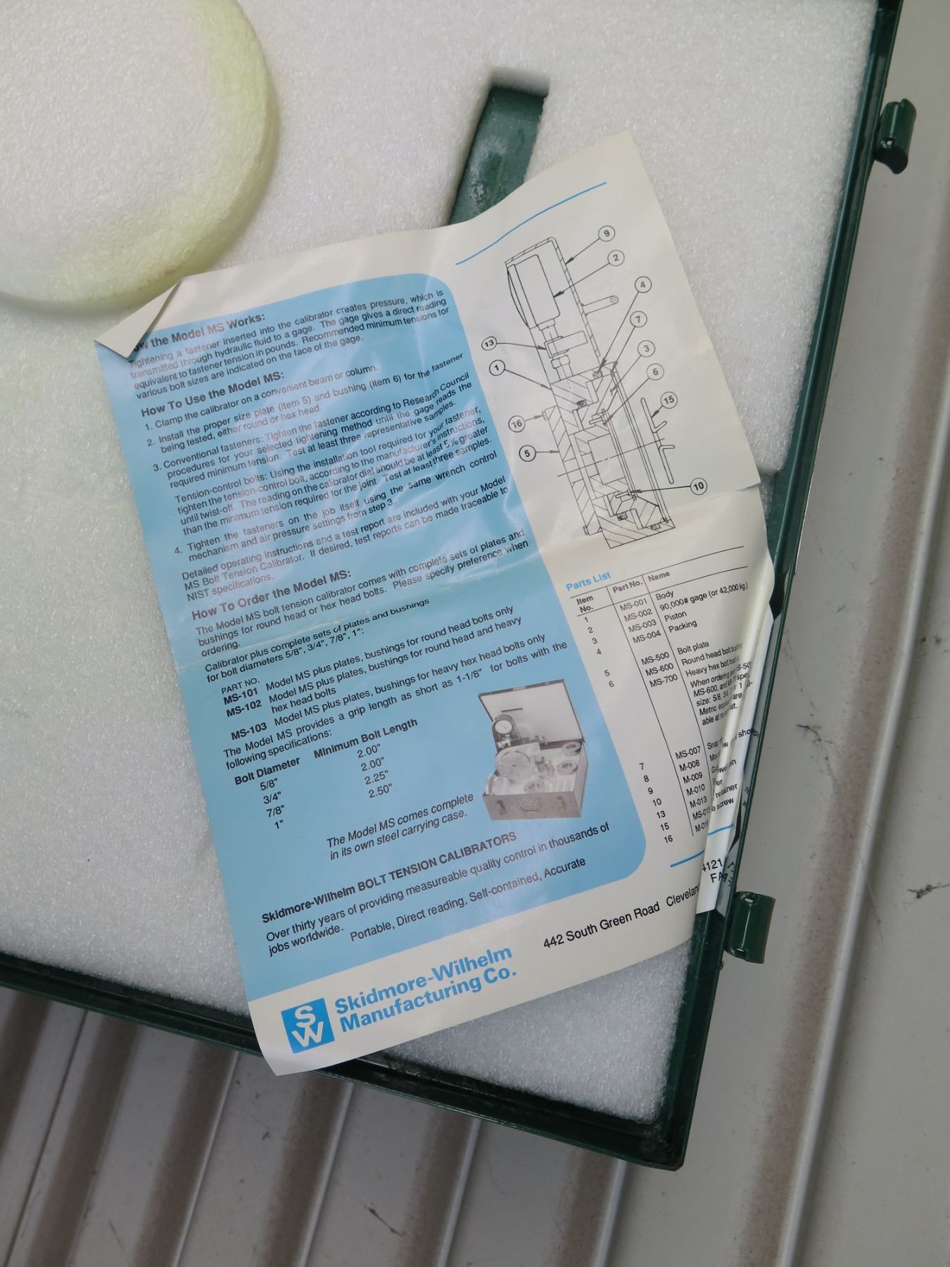 Skidmore Wilhelm MS Bolt Tension Calibrators in Hard Case