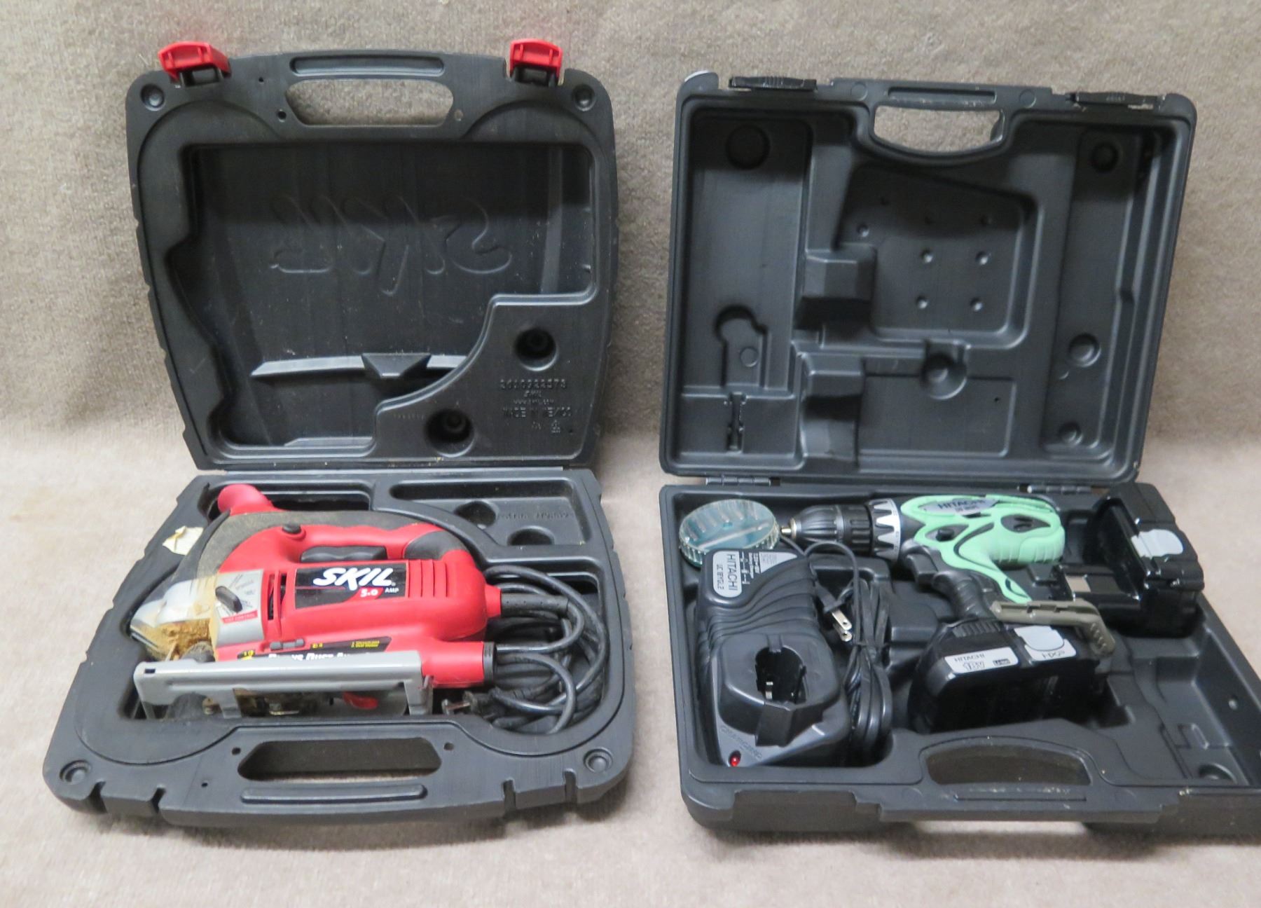 Skil 4680 Jigsaw Kit & Hitachi DS18DFL Driver Drill in Hard Cases