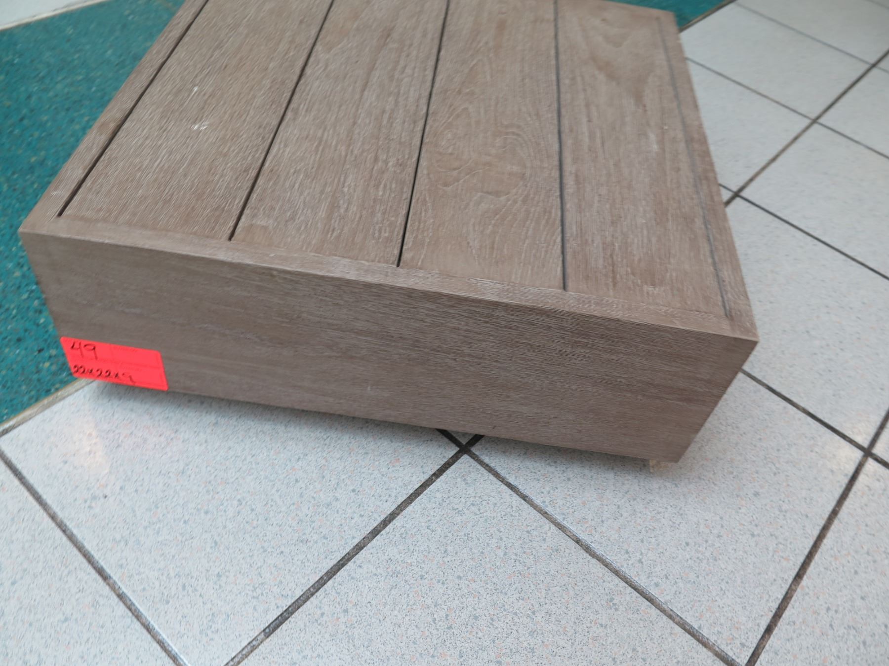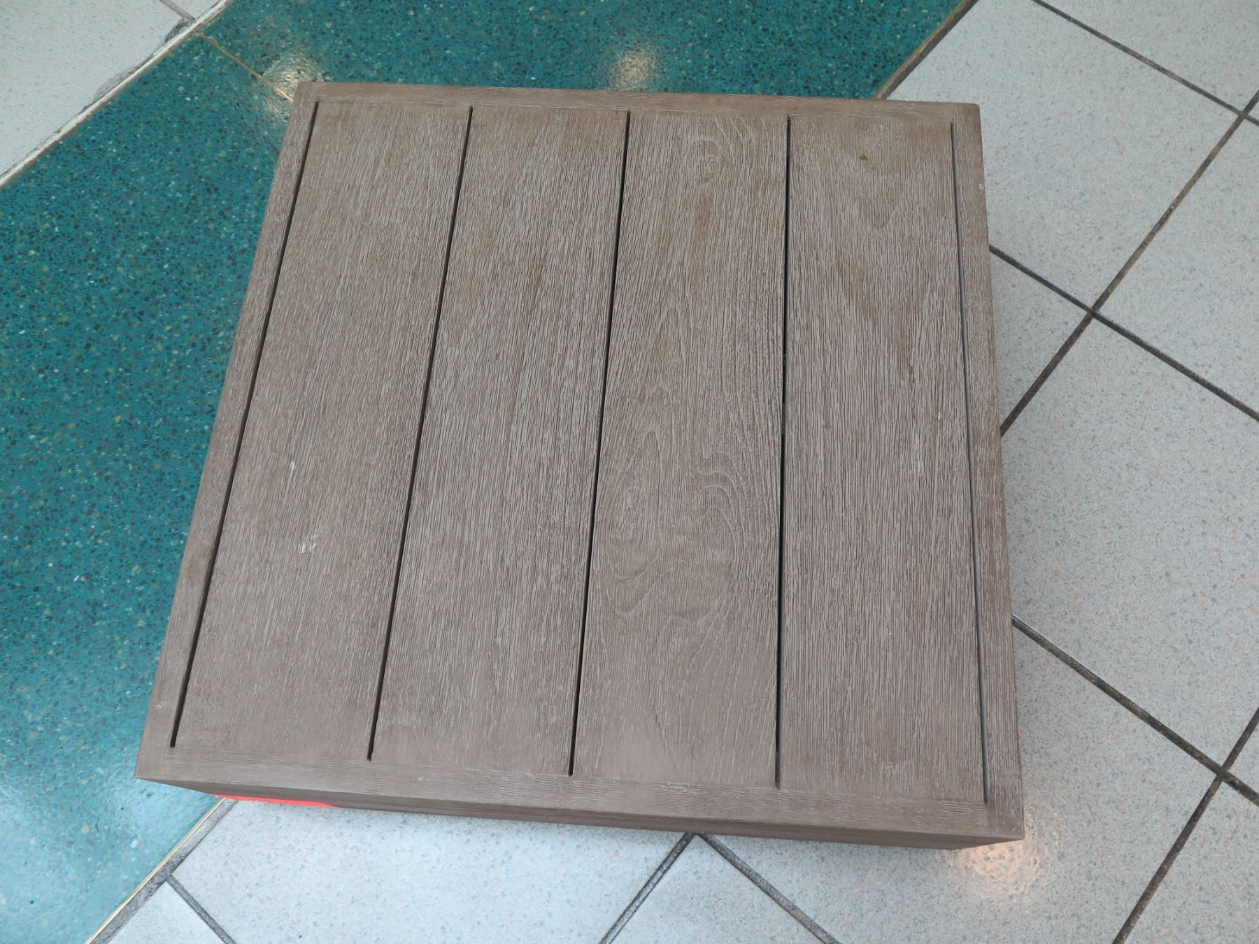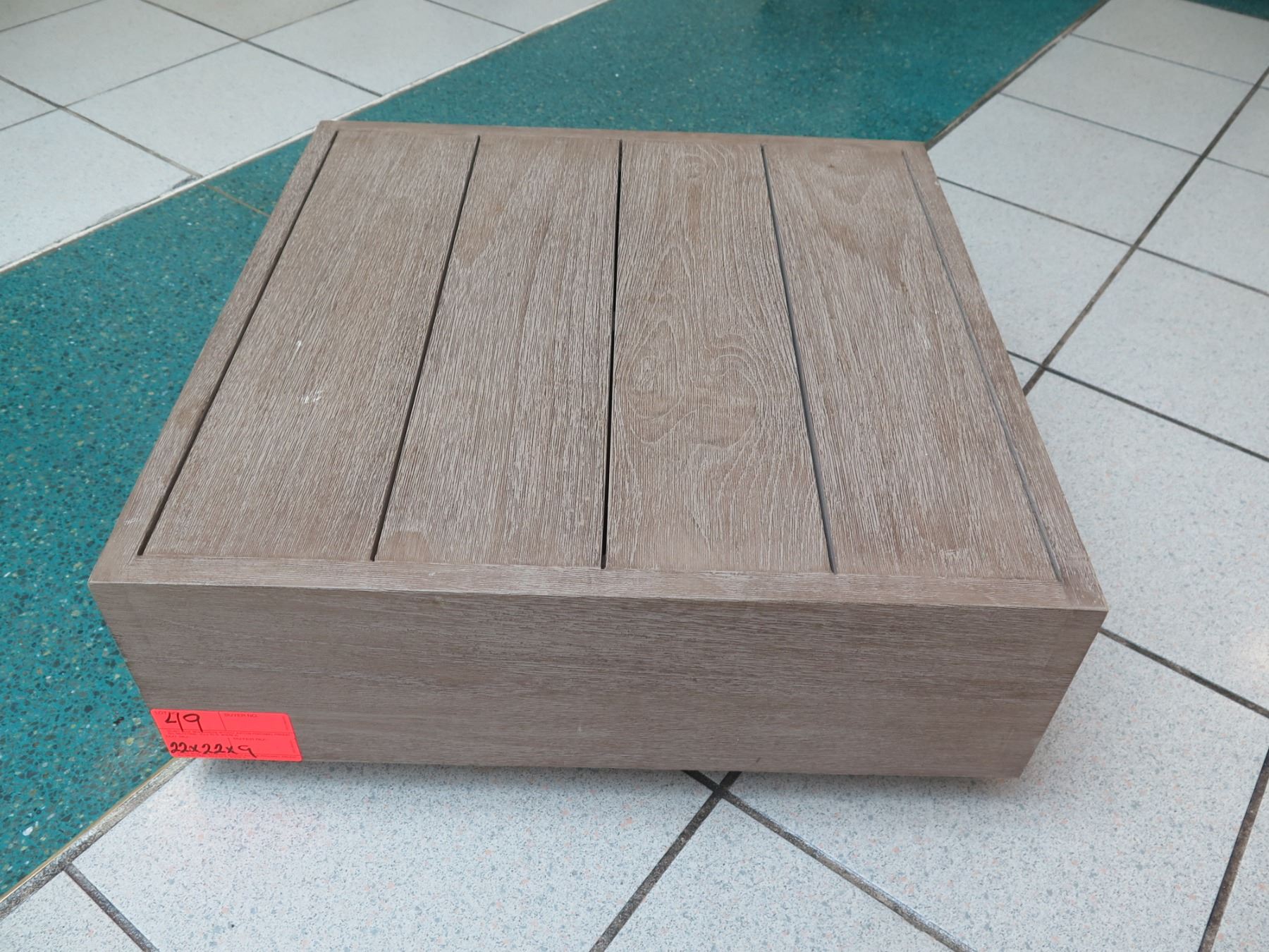 Slatted Platform Stand 22" x 22" x 9" H. Can be an ottoman if you add a cushion on top.
