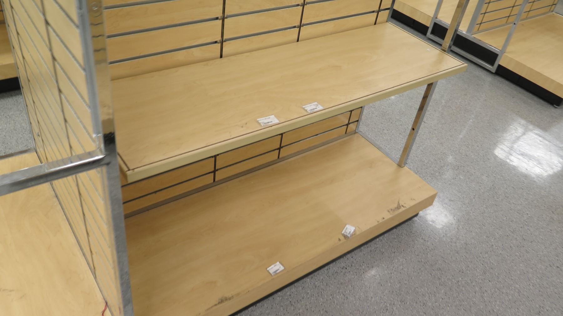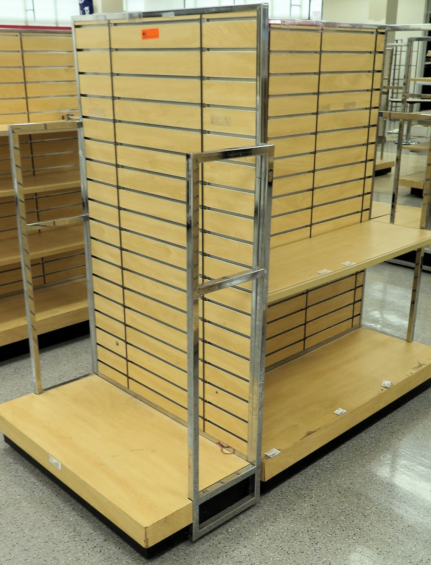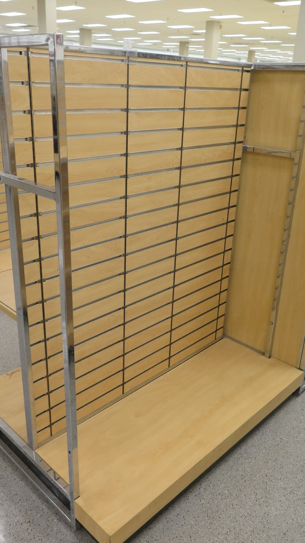 Slatwall Panel Wood & Chrome Adjustable Display Shelf Rack 71"L x 38.5"D x 62.5"H