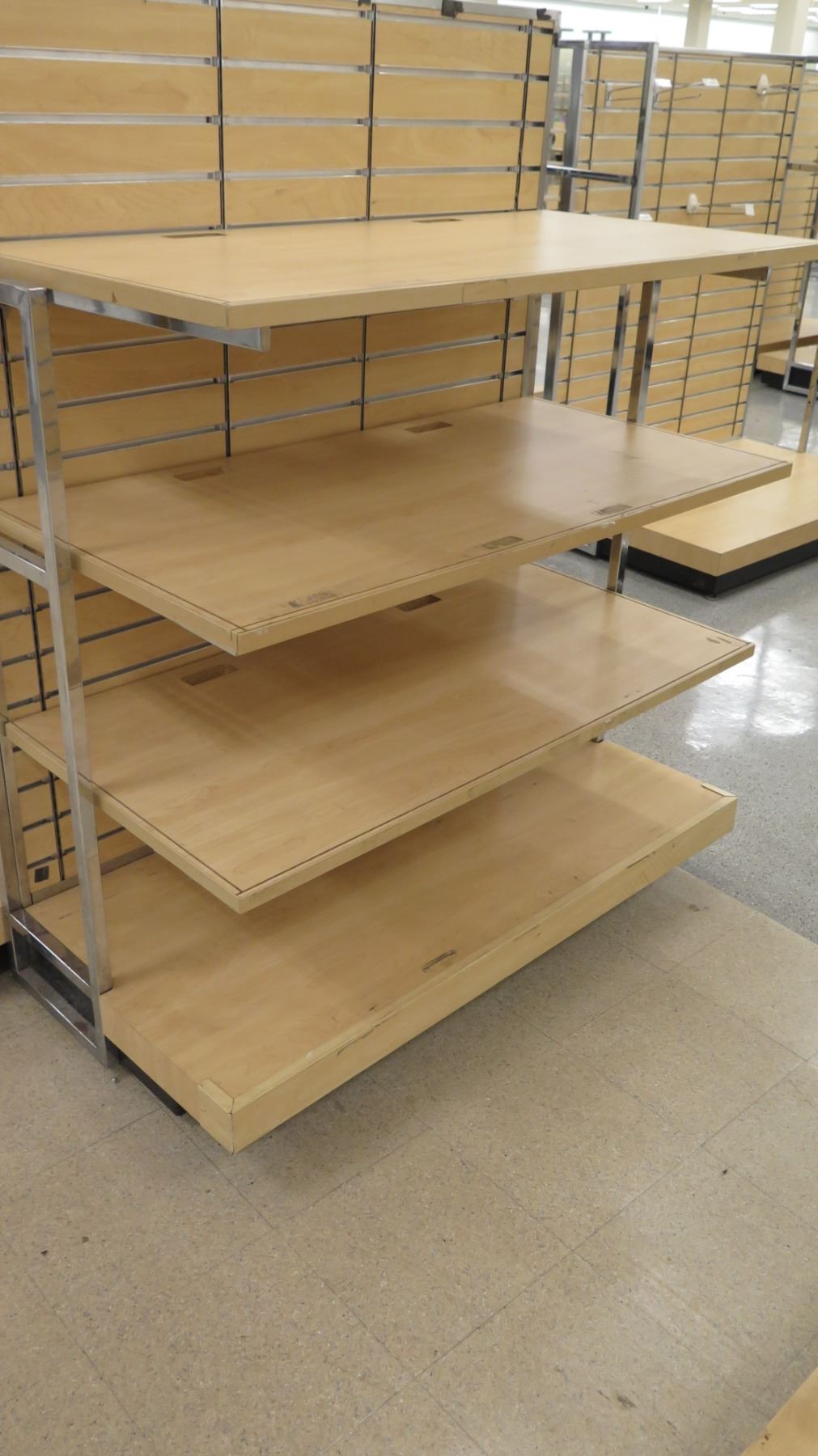 Slatwall Panel Wood & Chrome Adjustable Display Shelf Rack 77"L x 58"D x 62.5"H