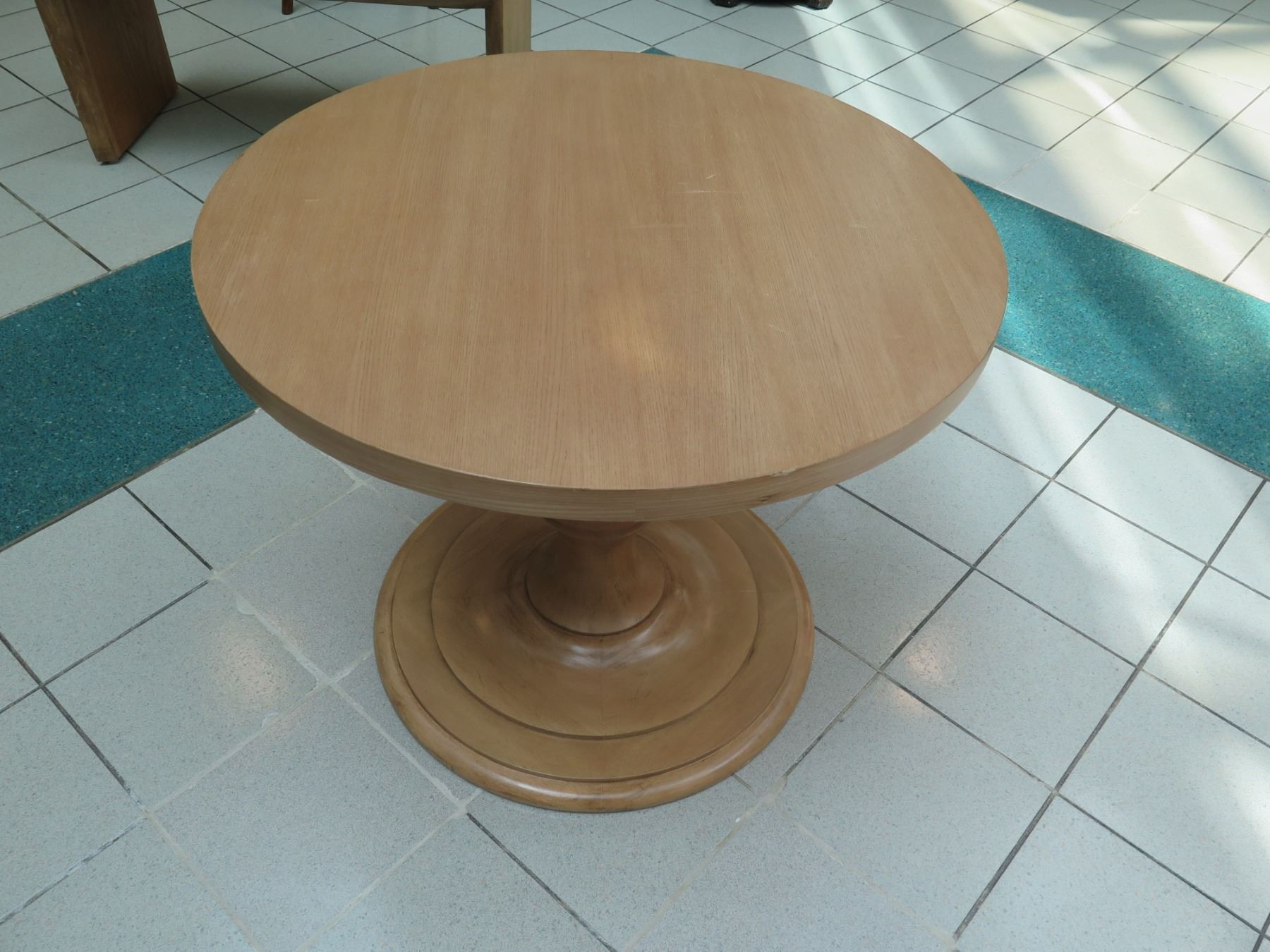 Small Wooden Dining Table w/ Pedestal Base 36" Dia, 29"H